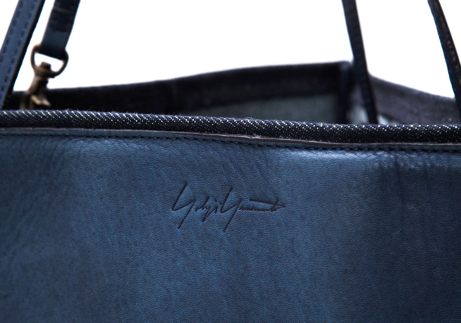 Yohji yamamoto discord Denim Switching Fold Leather Bag Indigo