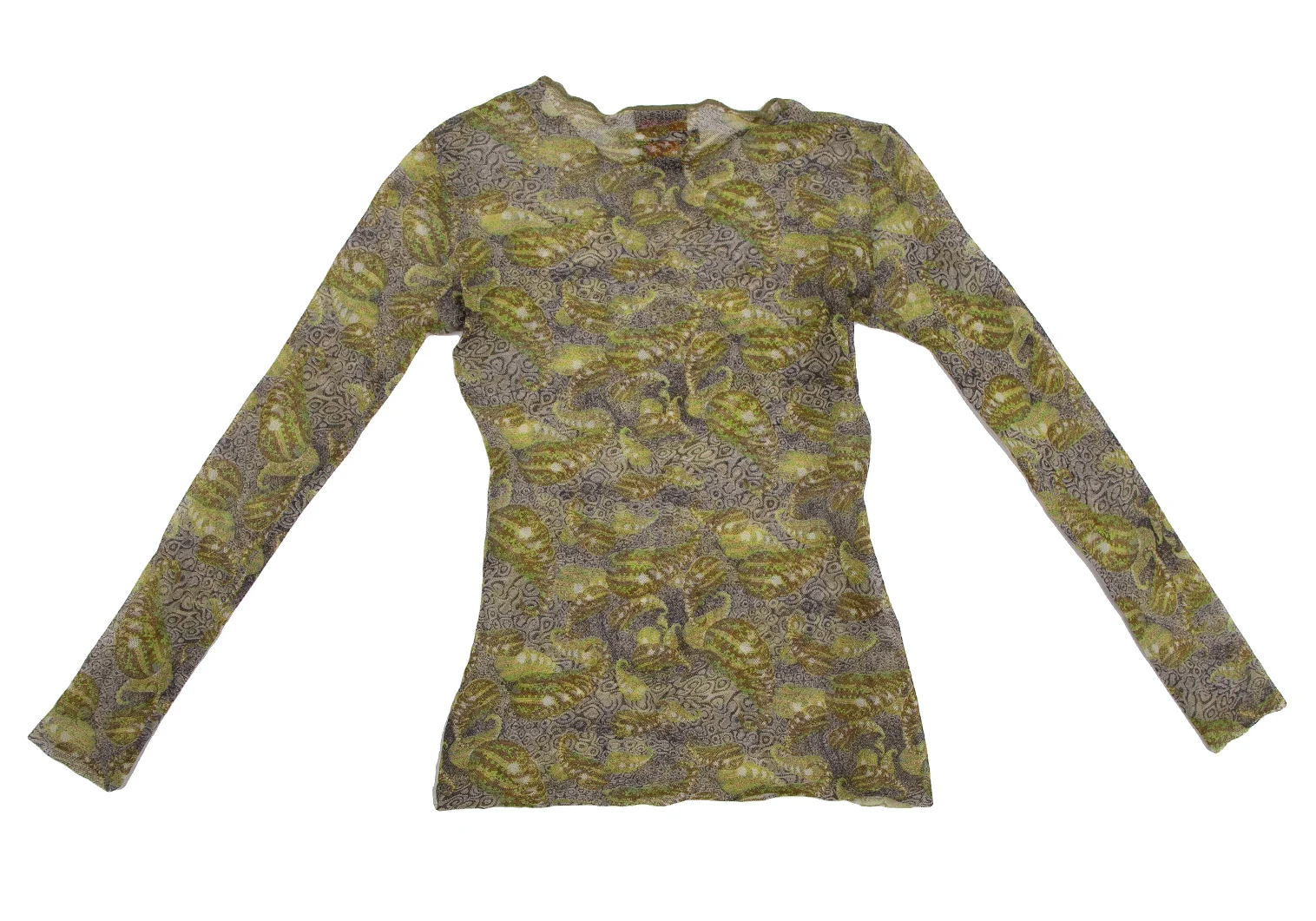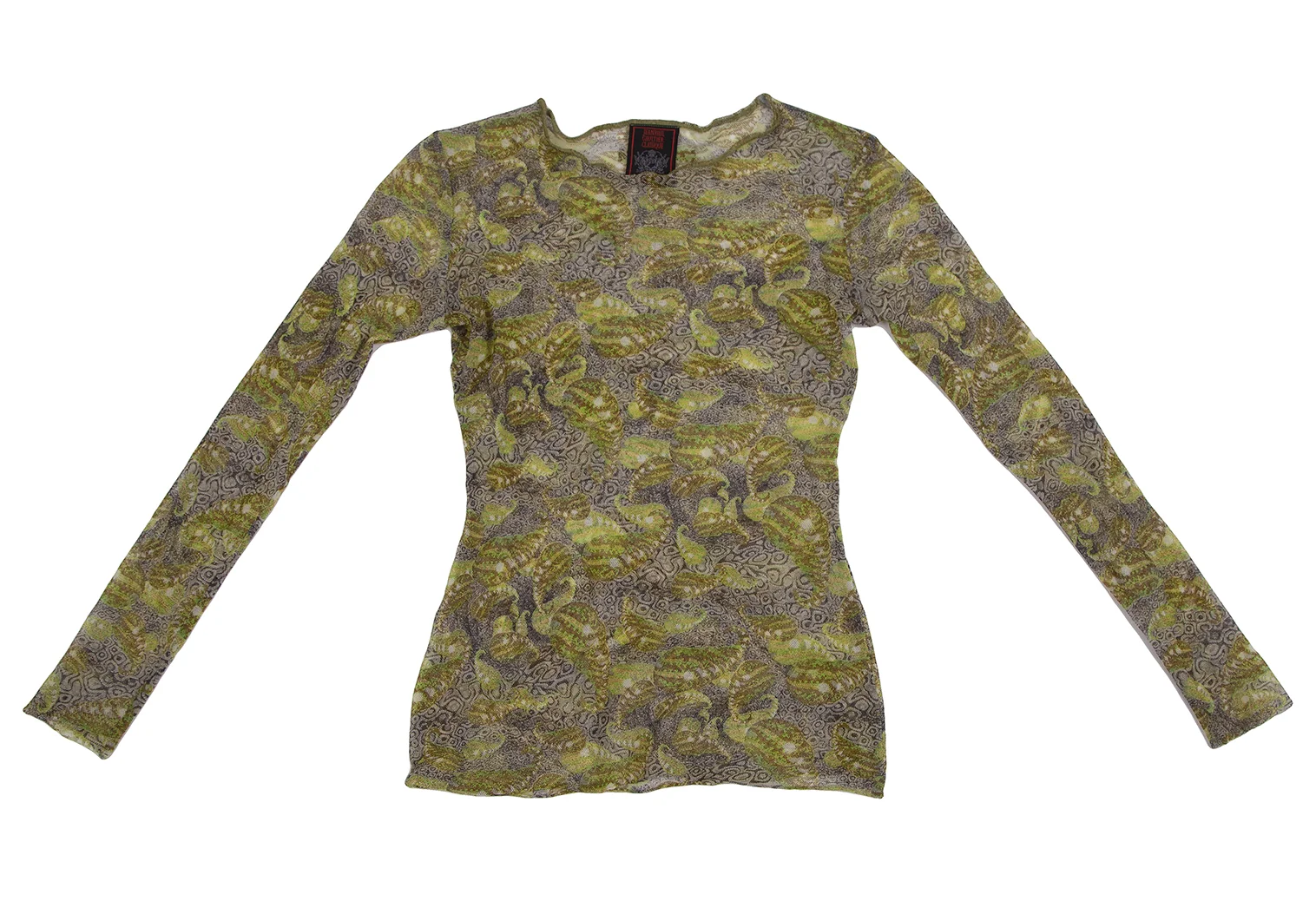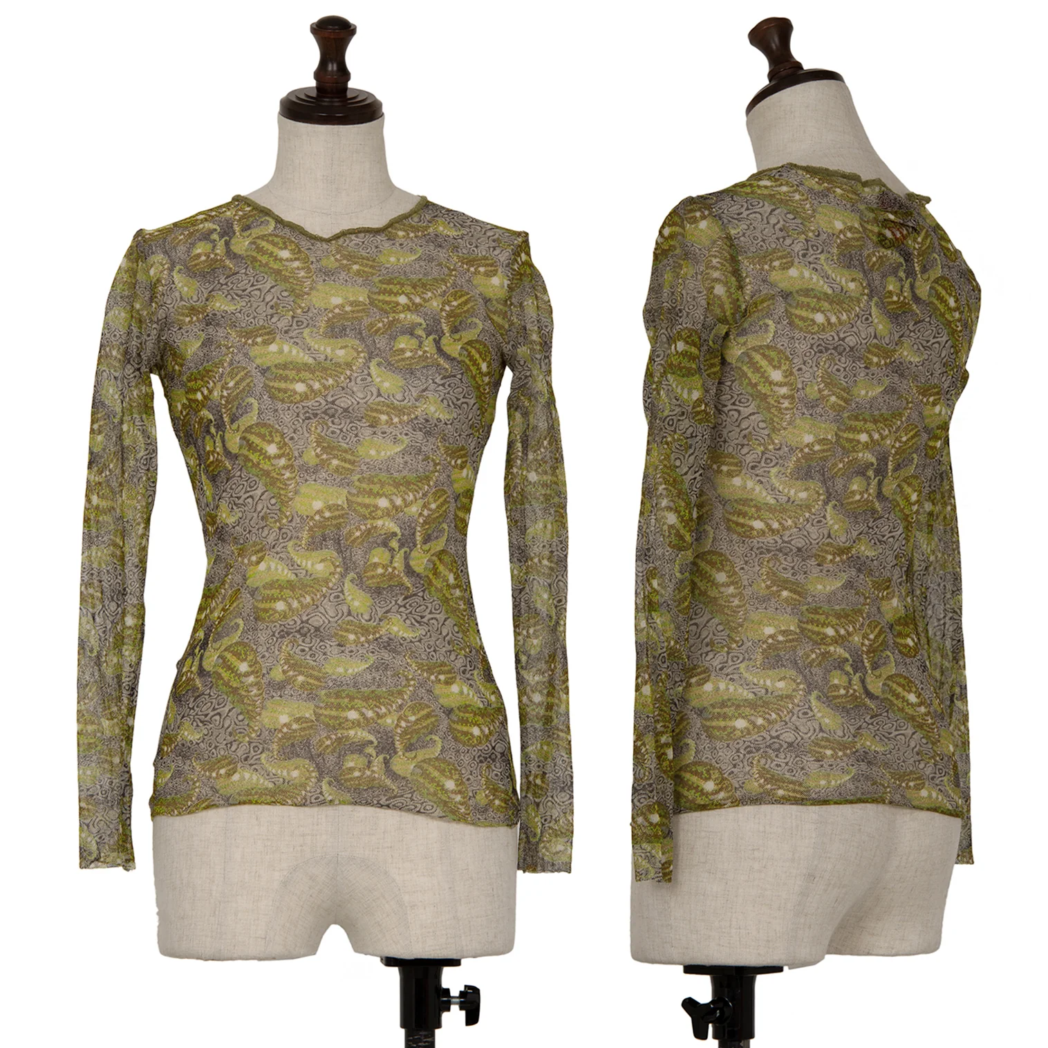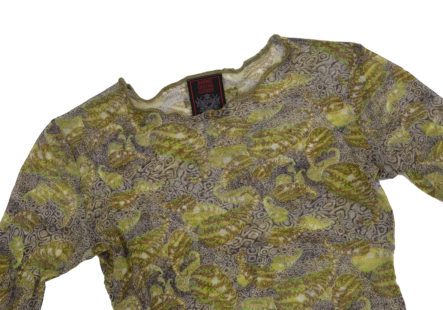 Jean-Paul GAULTIER CLASSIQUE Graphic Printed Mesh T Shirt Yellow,Grey 40