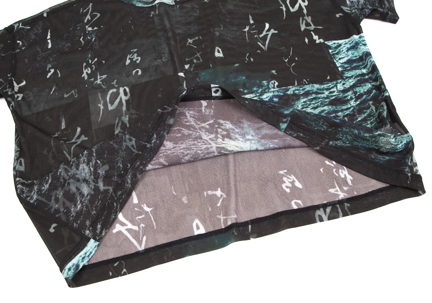 Y's Mariko Kinoshita Graphic Printed Tulle T Shirt Black 2