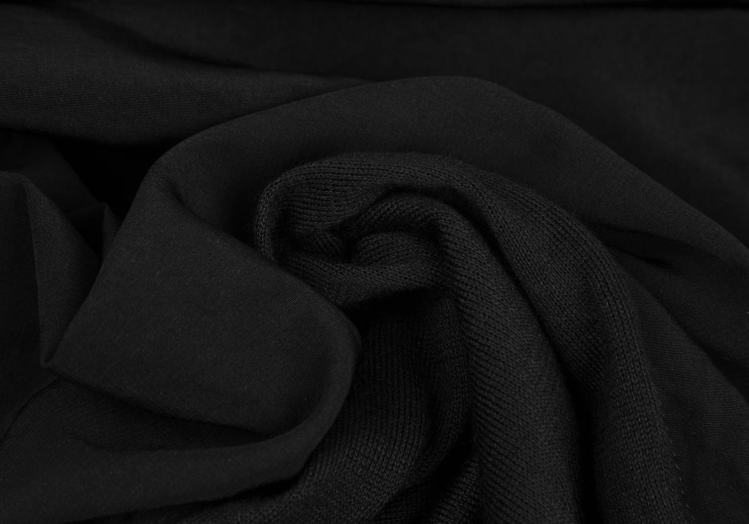 50% Rayon 50% Wool Another 57% Triacetate 43% Polyester |
