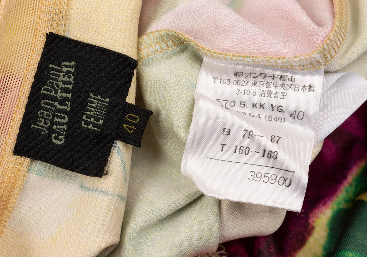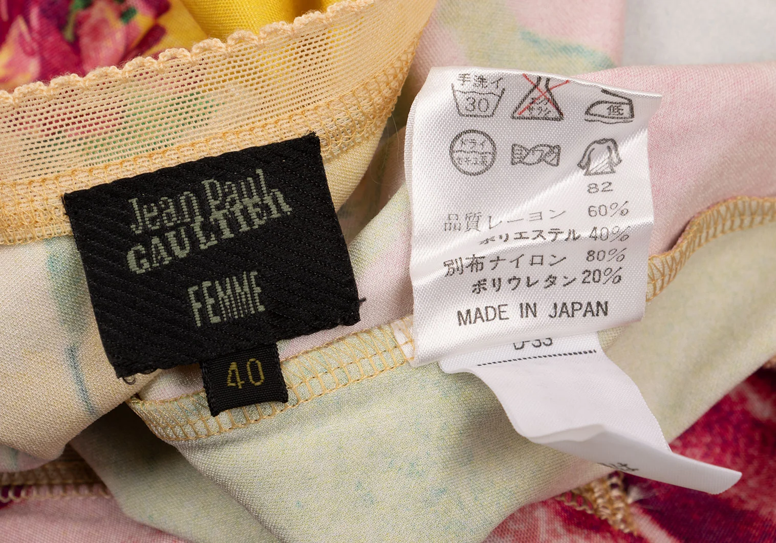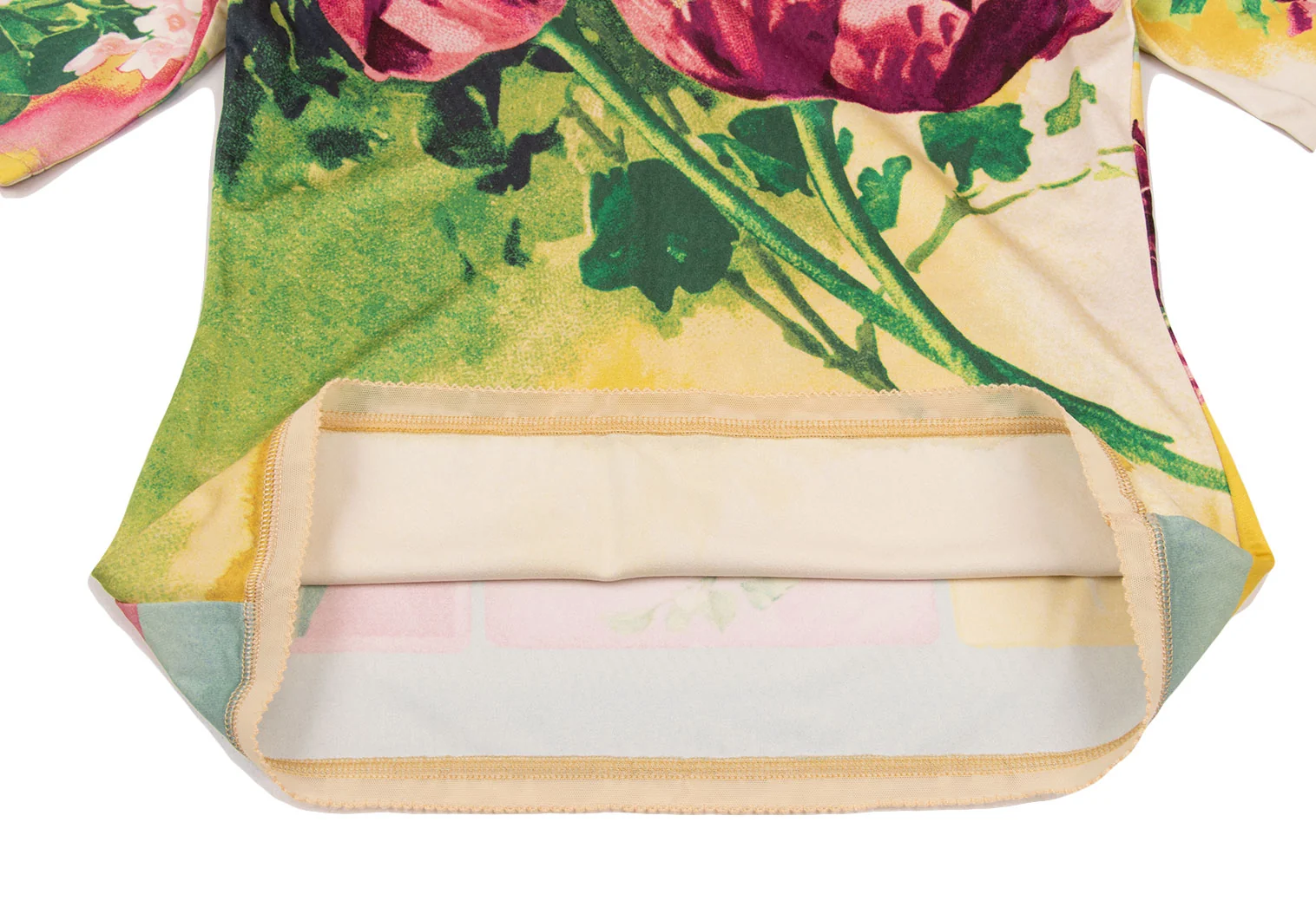 Jean Paul GAULTIER FEMME Lace Switching Floral Printed T Shirt Yellow,Multi-Color 40
