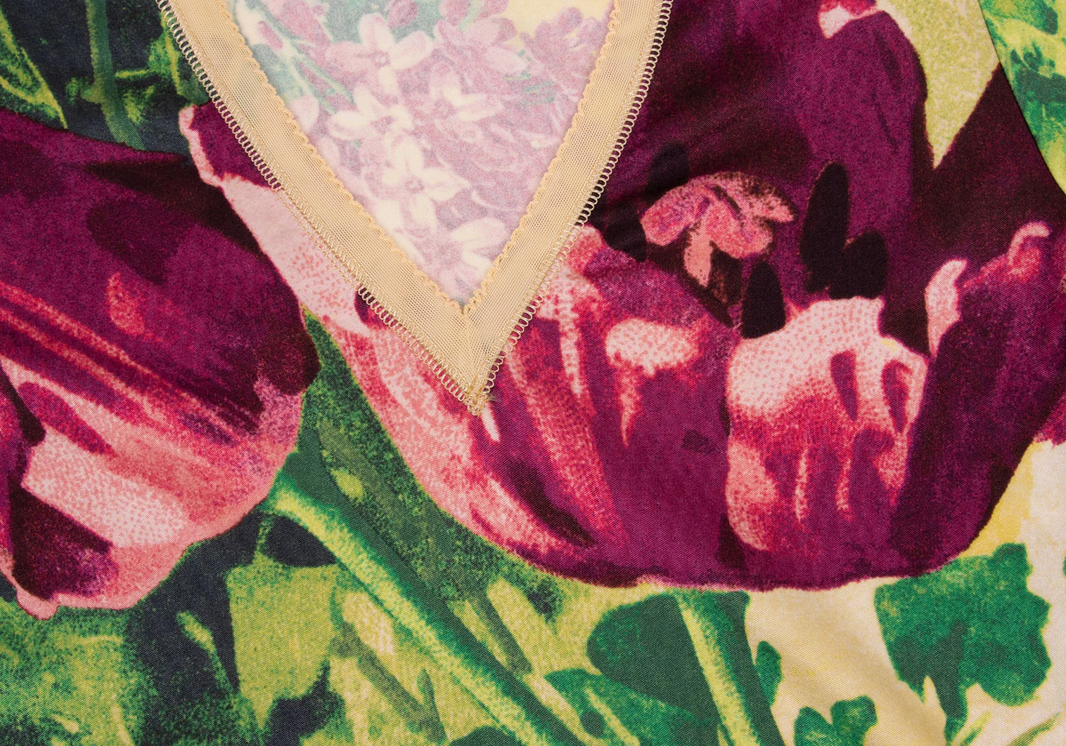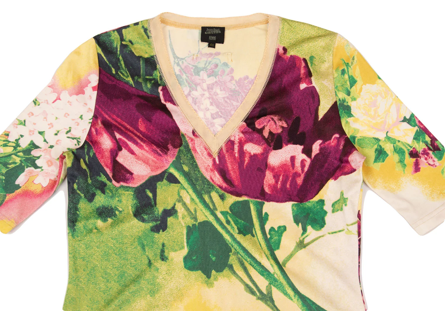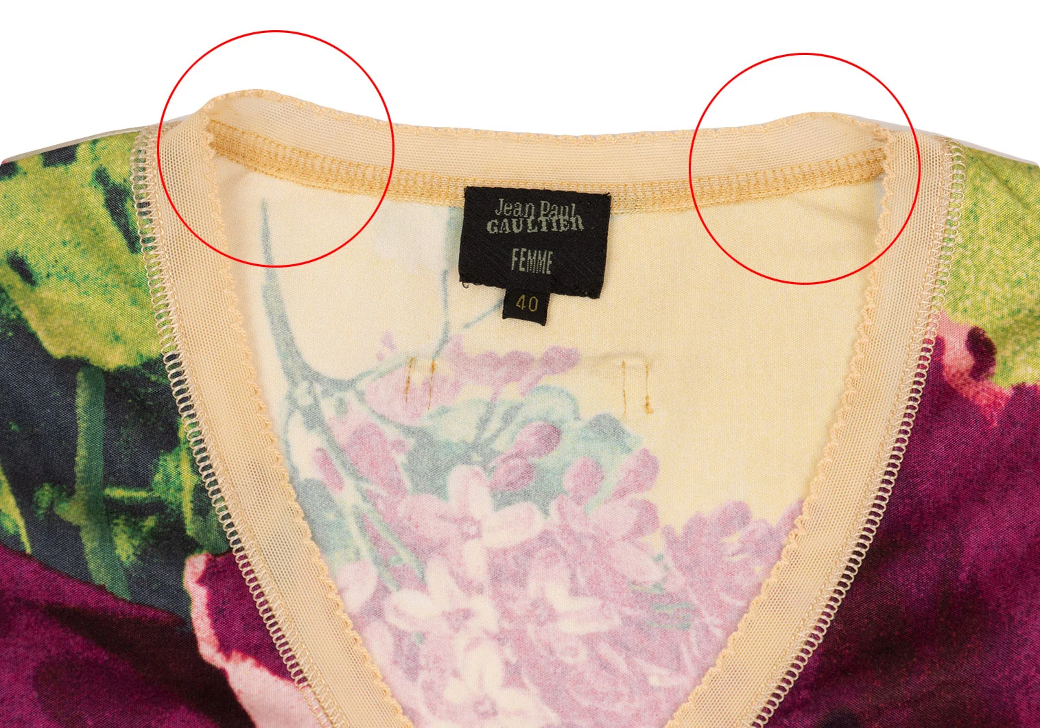 Jean Paul GAULTIER FEMME Lace Switching Floral Printed T Shirt Yellow,Multi-Color 40