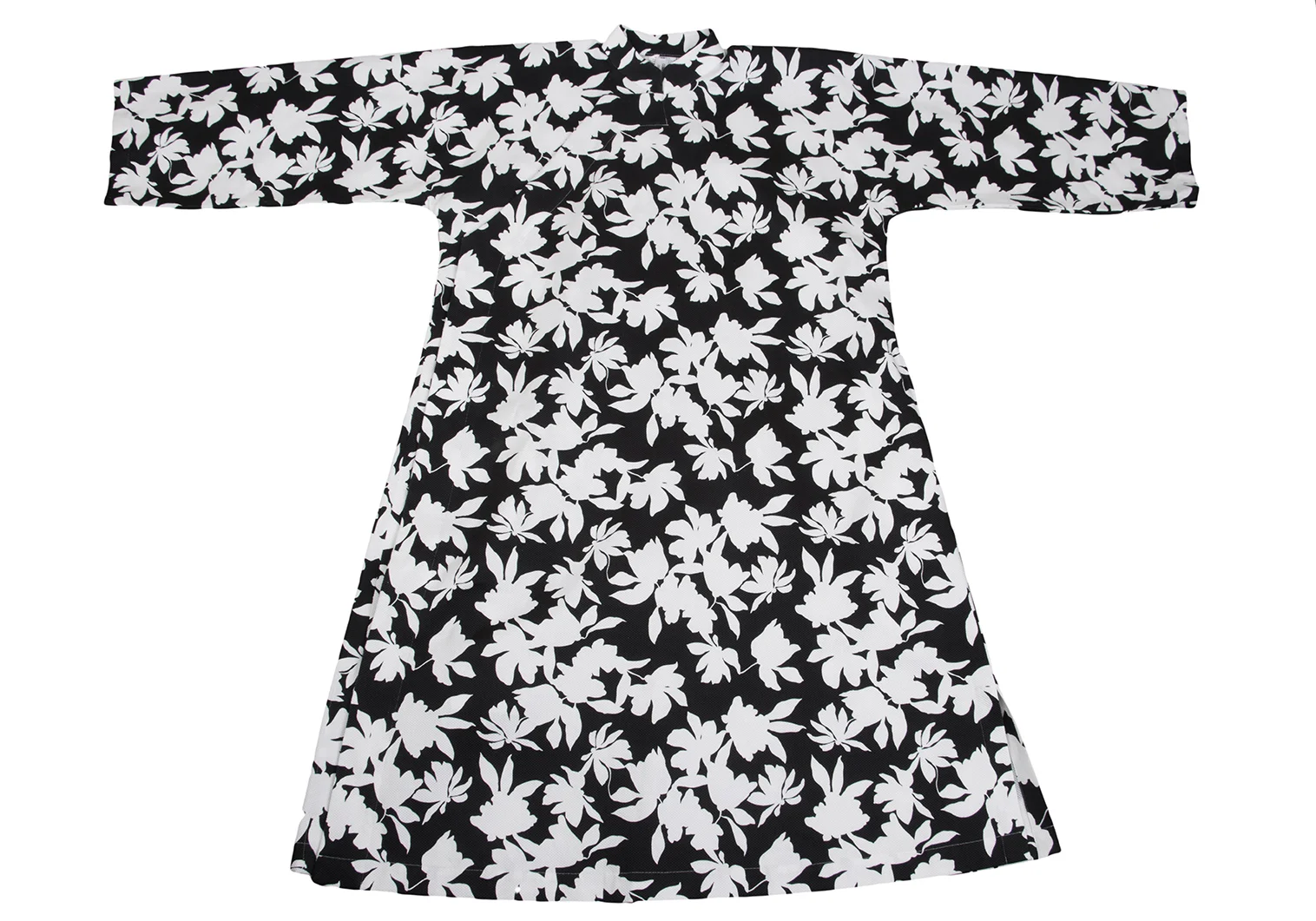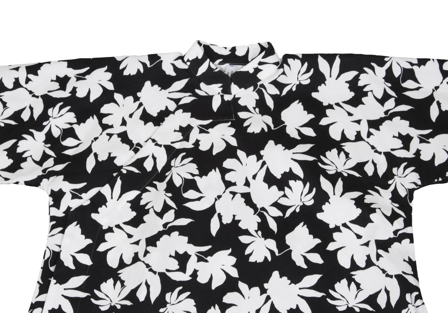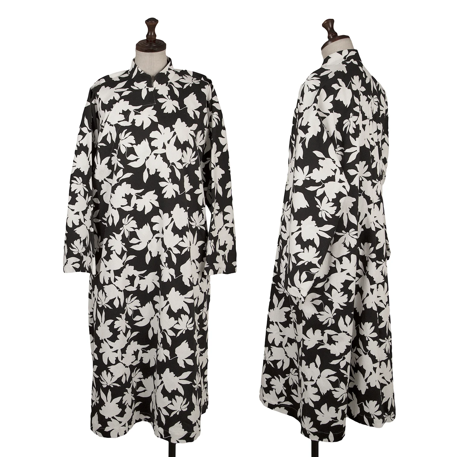 COMME des GARCONS Monochrome Floral Print Snap Button Chinese Dress White,Black XS