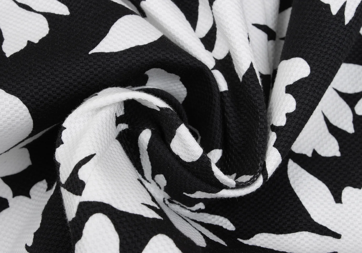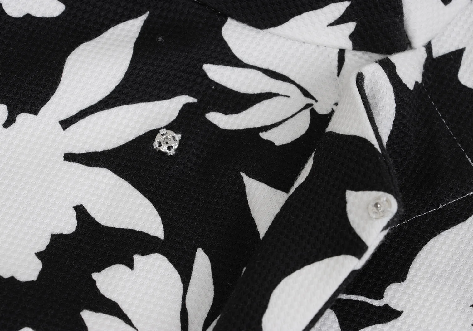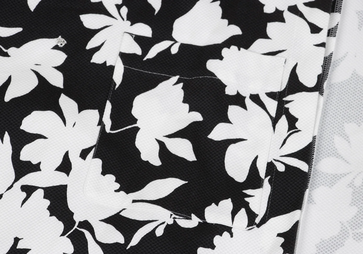 COMME des GARCONS Monochrome Floral Print Snap Button Chinese Dress White,Black XS