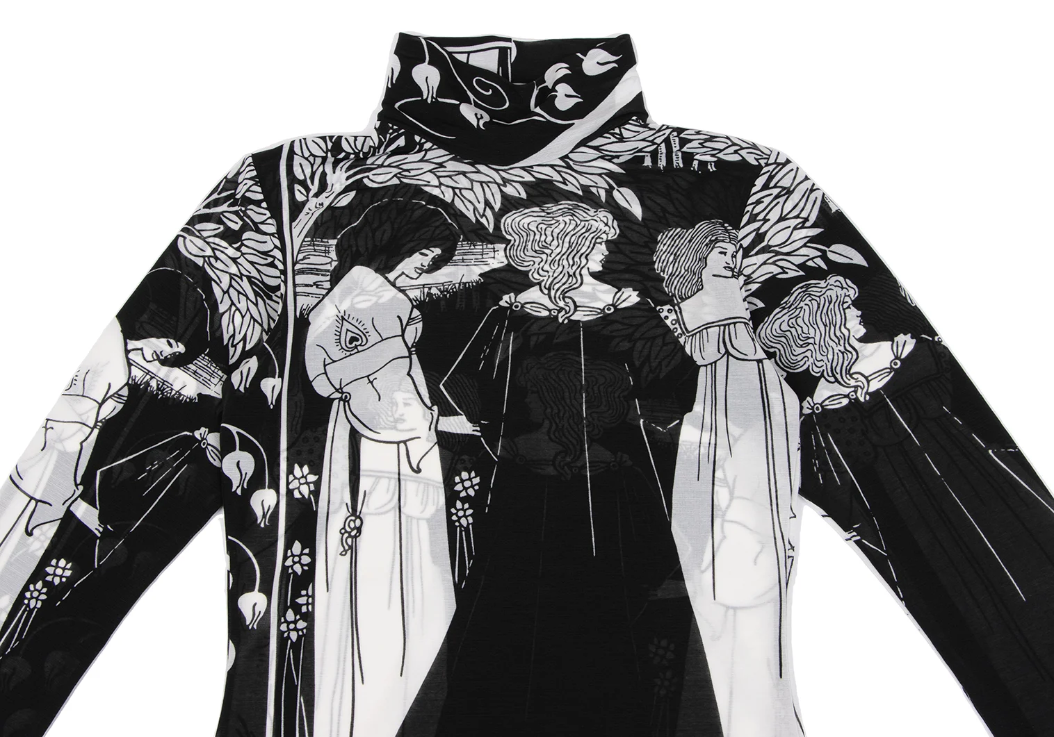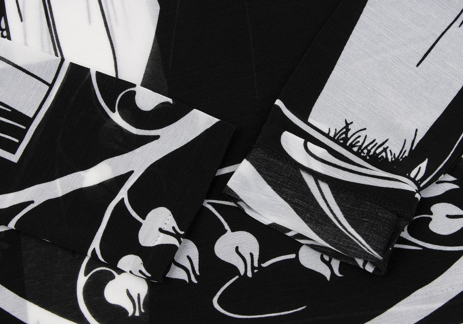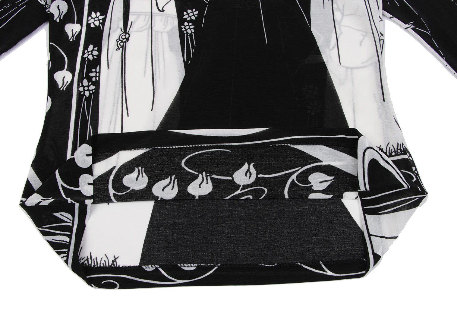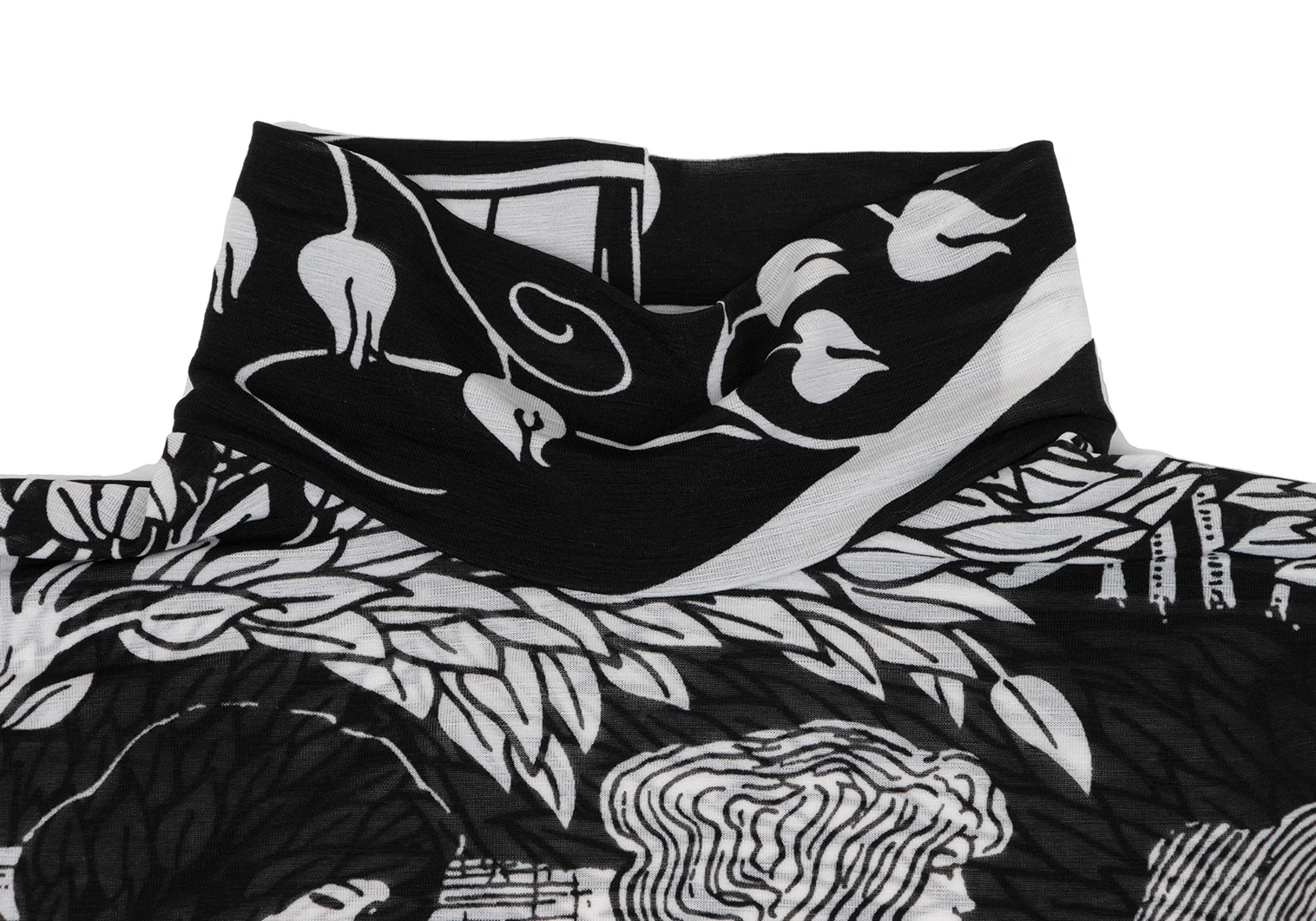 Yohji Yamamoto FEMME Monochrome Graphic Print See-through High-neck Top Black,White 3