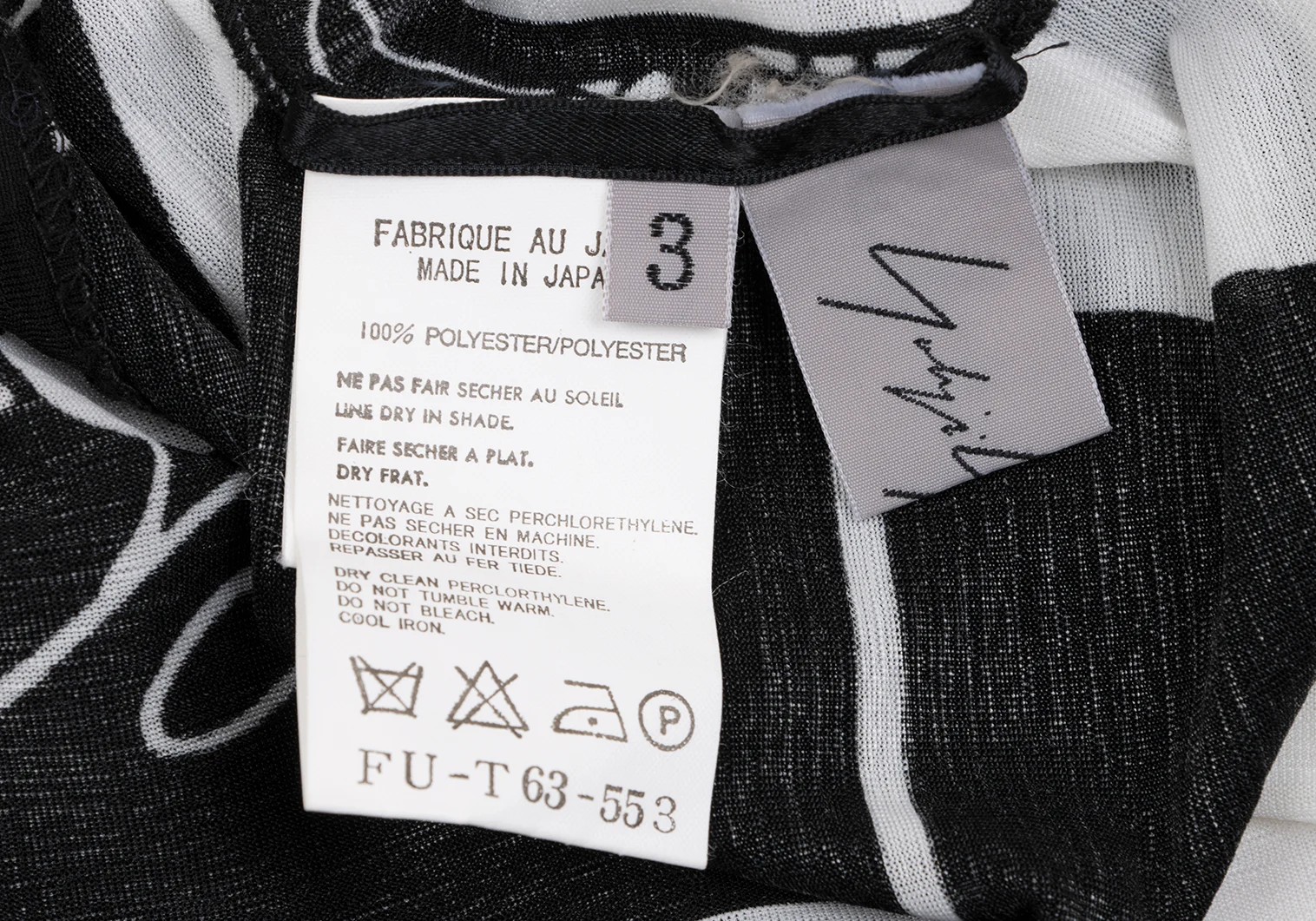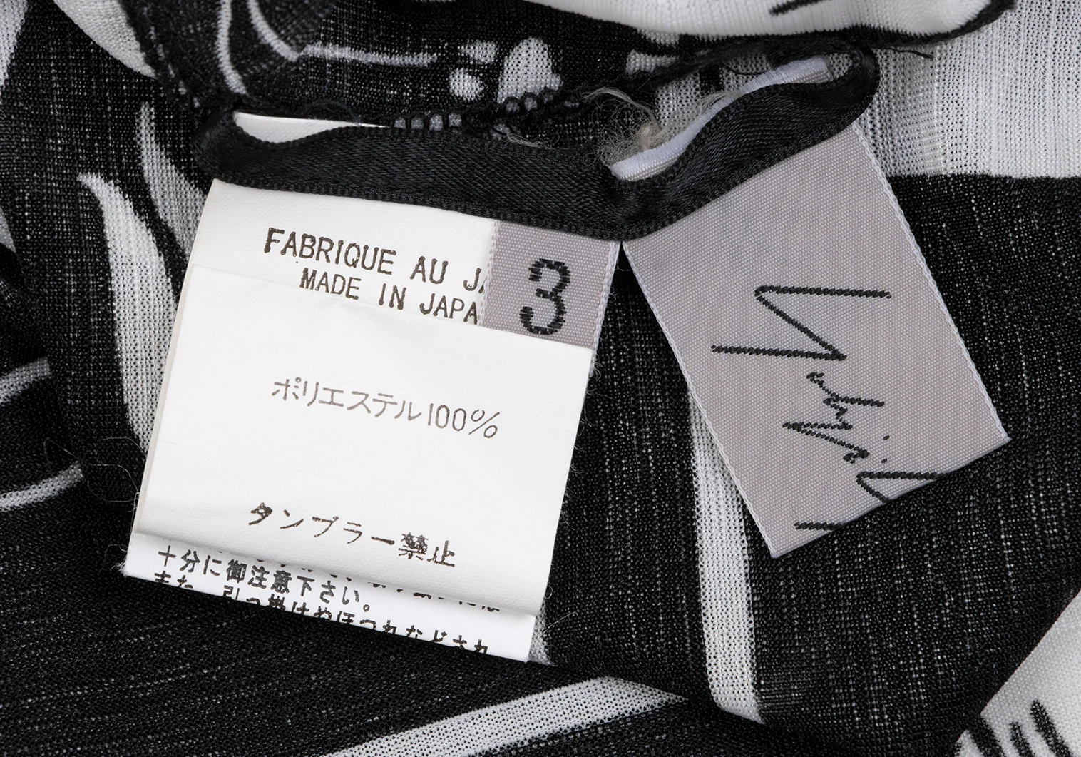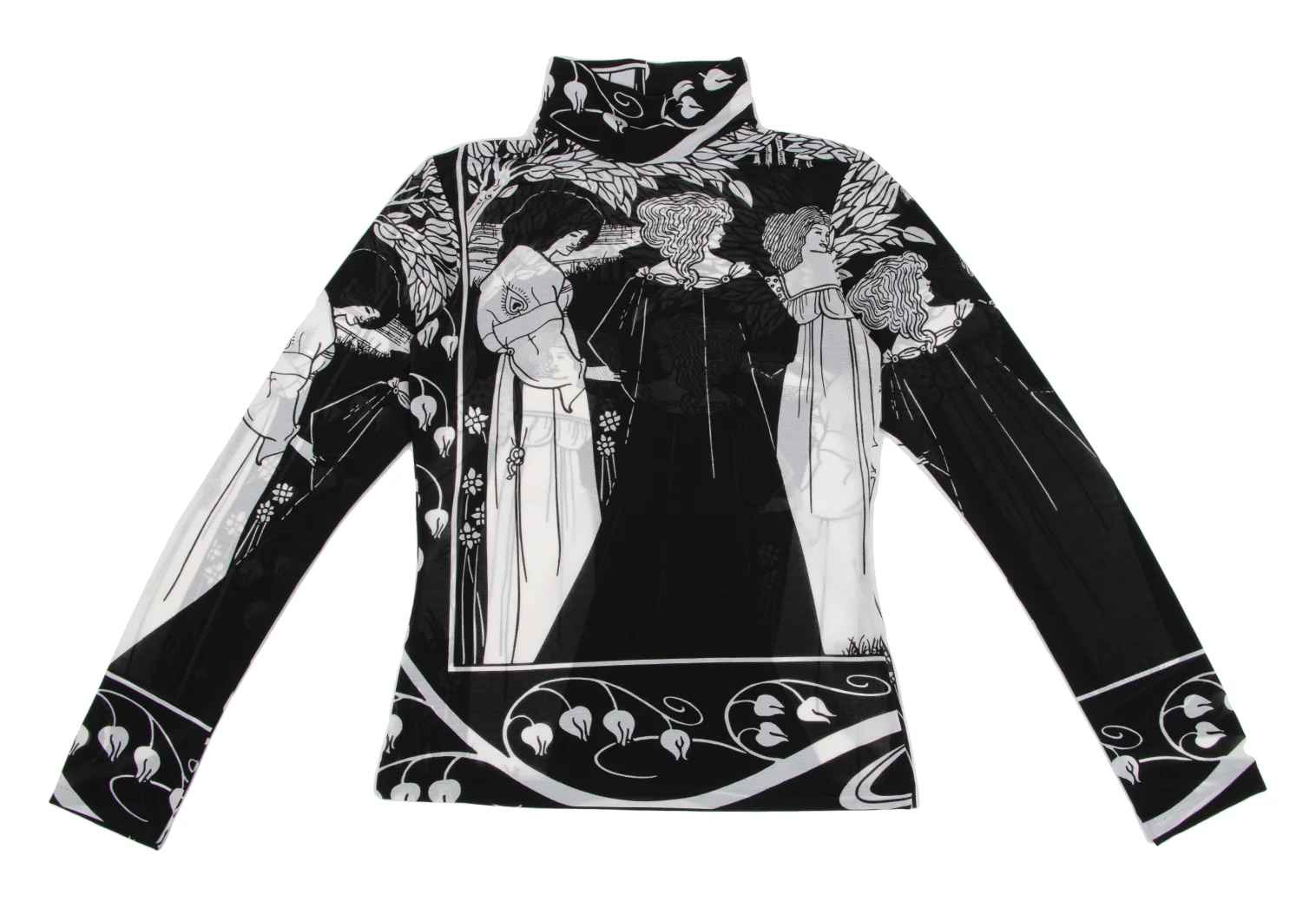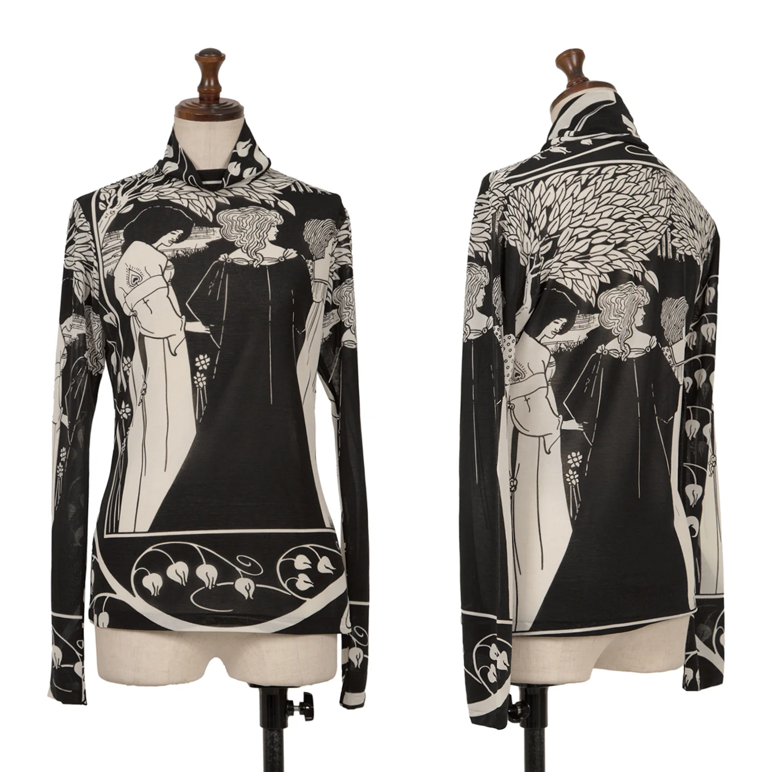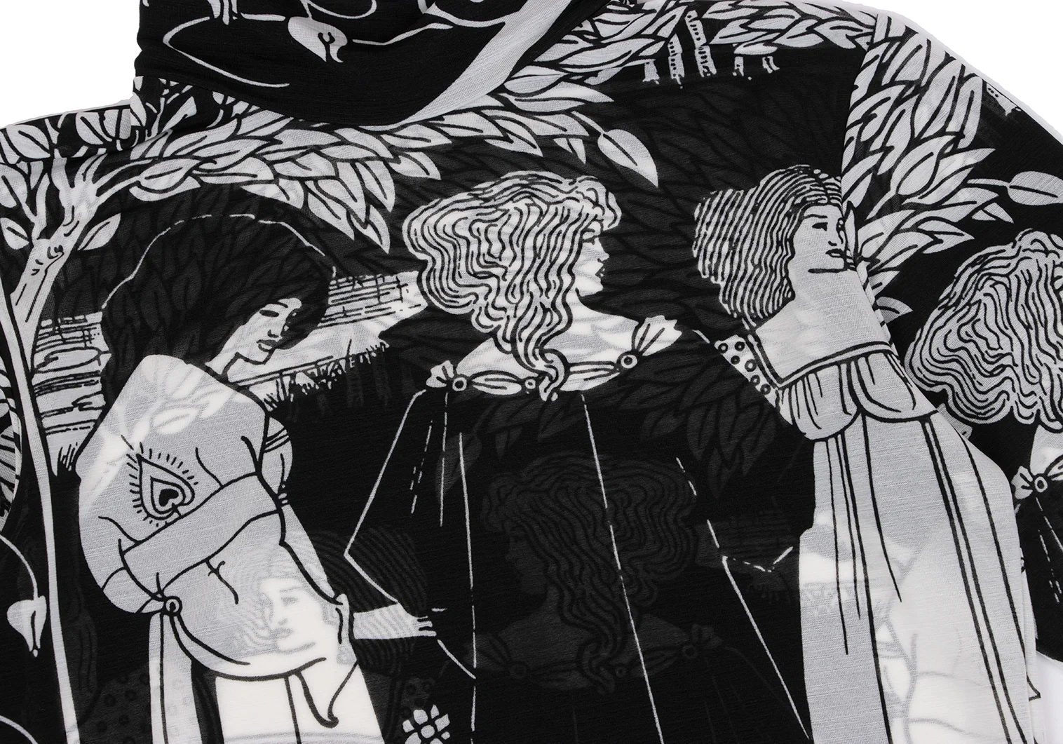 Yohji Yamamoto FEMME Monochrome Graphic Print See-through High-neck Top Black,White 3
