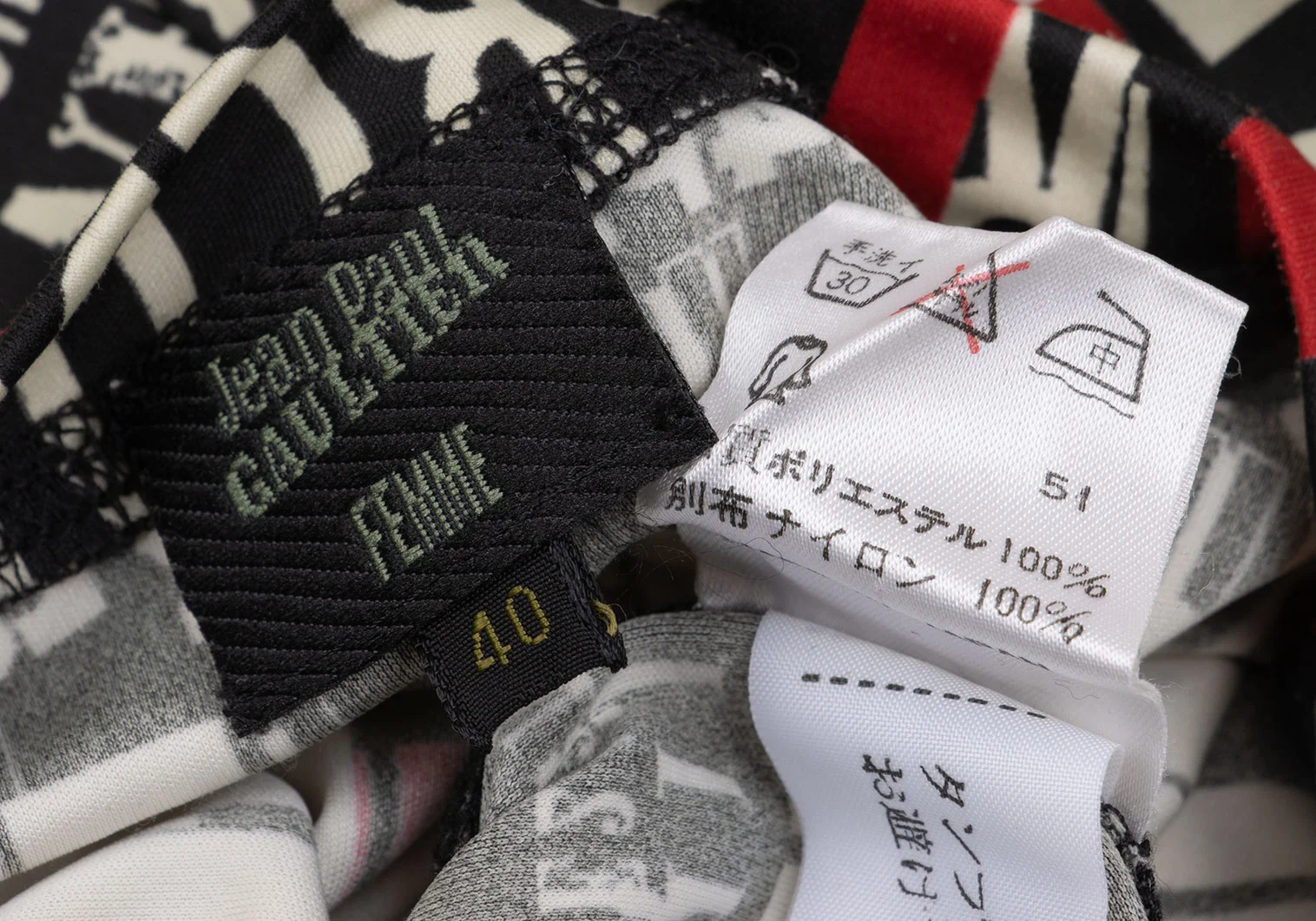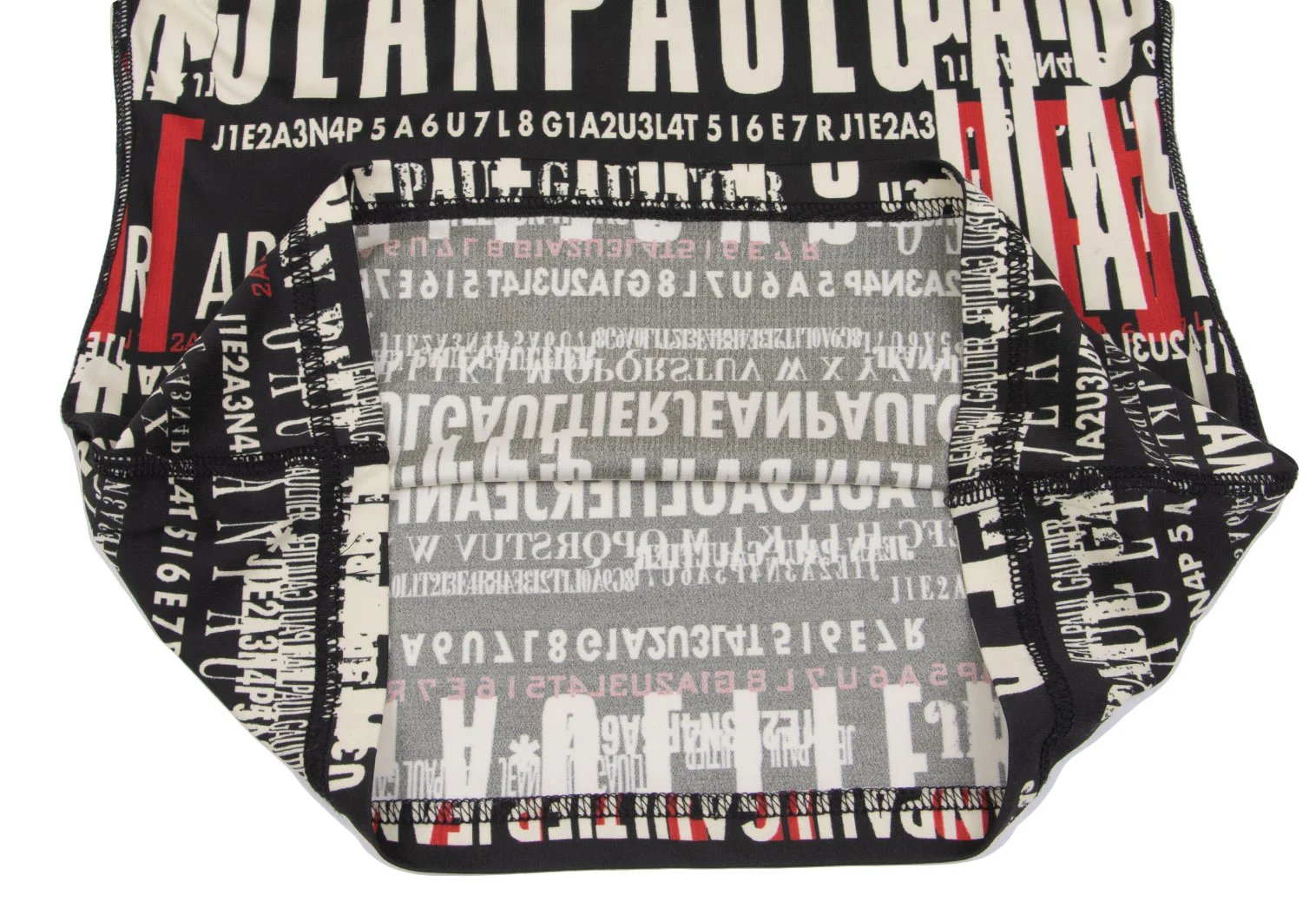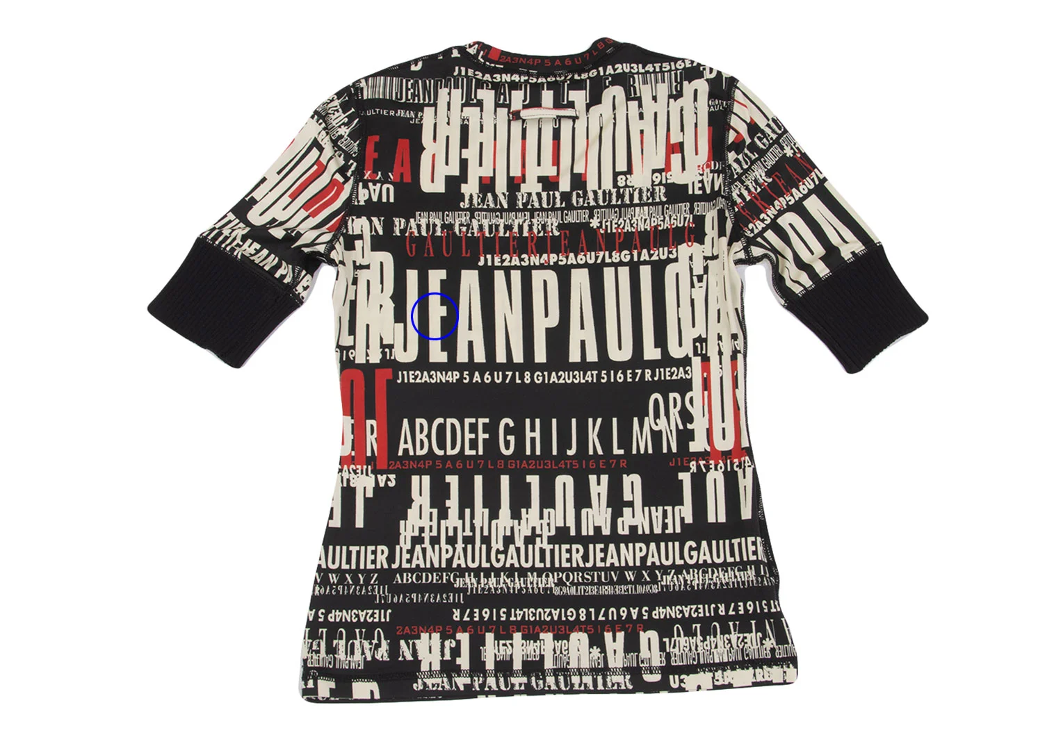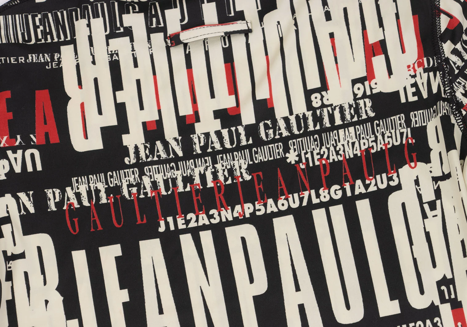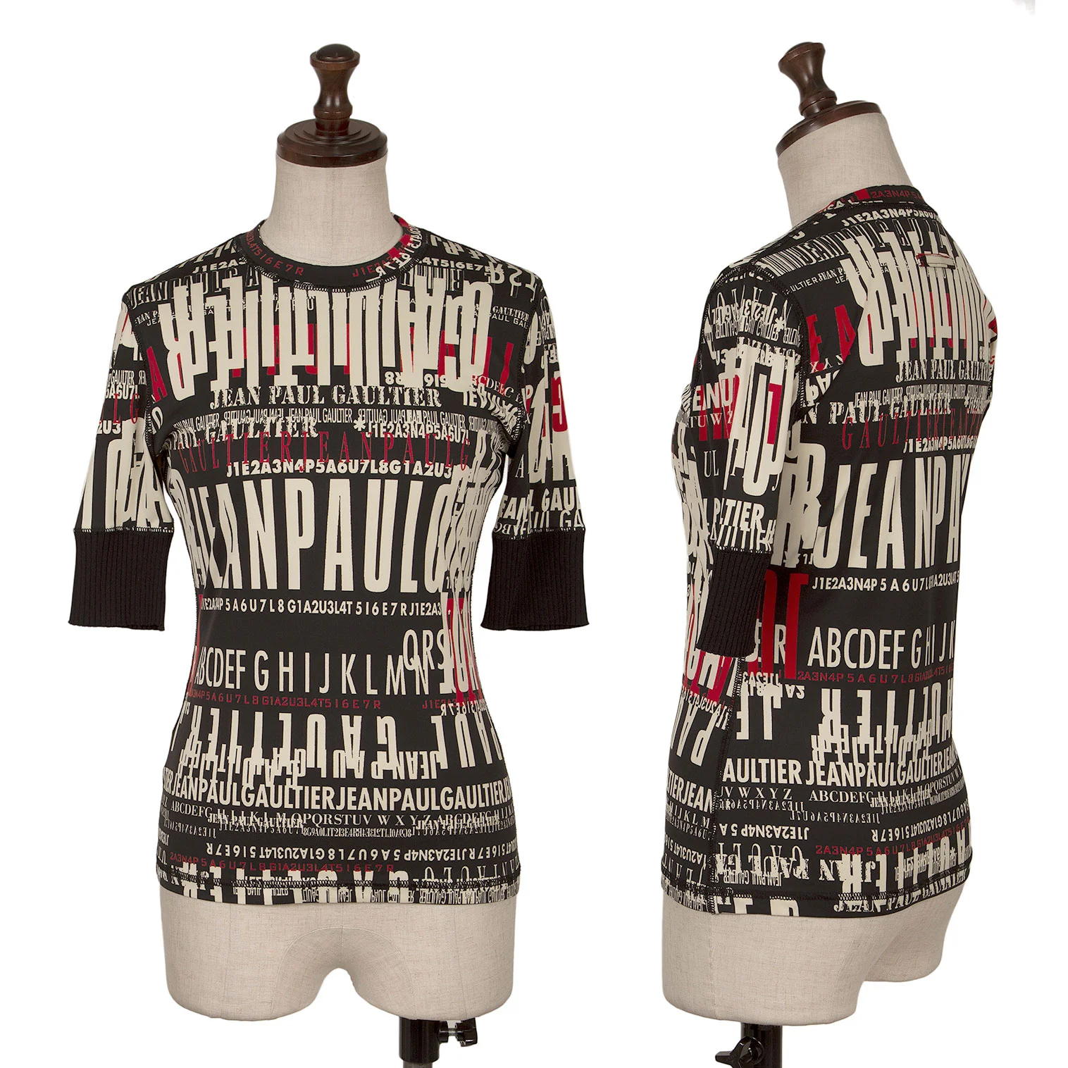 Jean Paul GAULTIER FEMME Typography Printed Ribbed Sleeve T-shirt Black,Ivory,Red 40
