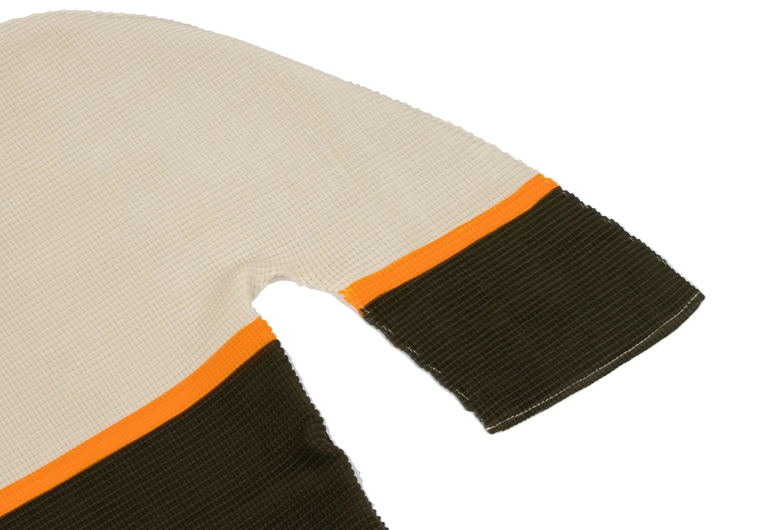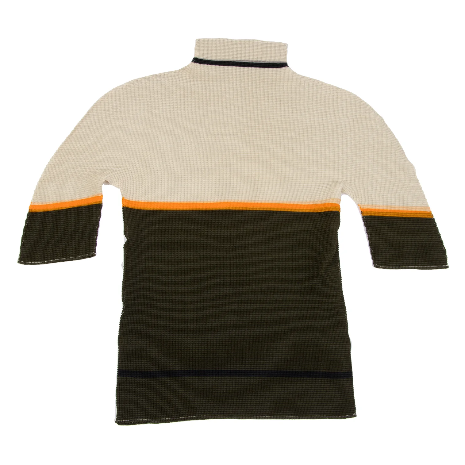 ISSEY MIYAKE me Color Switching Stretch Pleated High Neck T-shirt Beige,Khaki Free