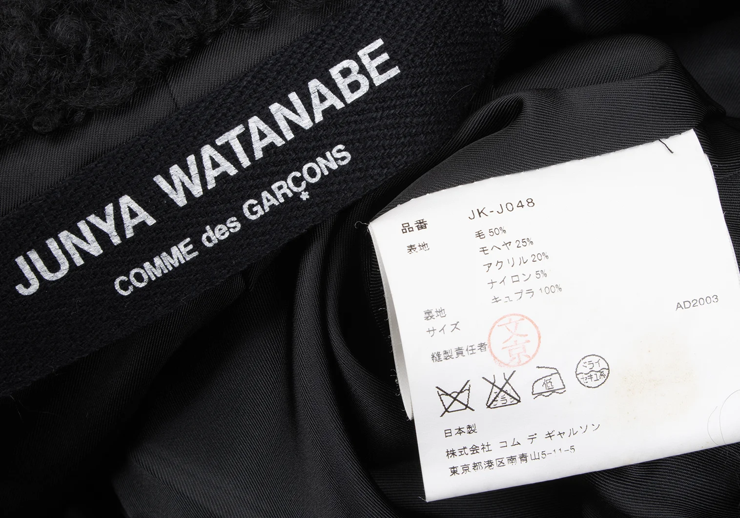 50% Wool 25% Mohair 20% Acrylic 5% Nylon Lining 100% Cupro |