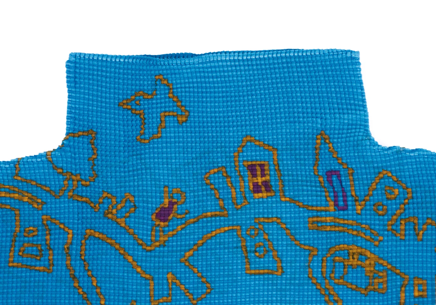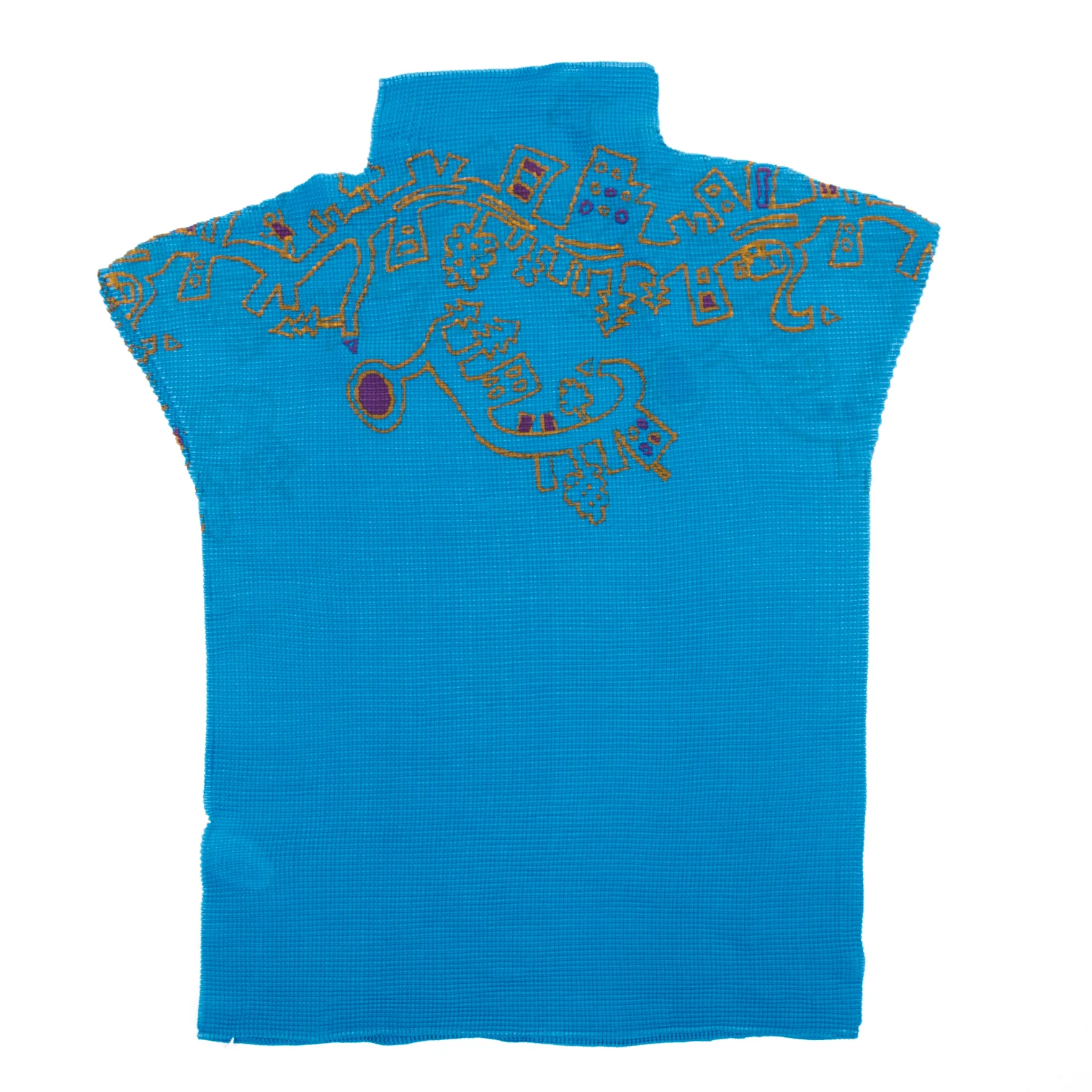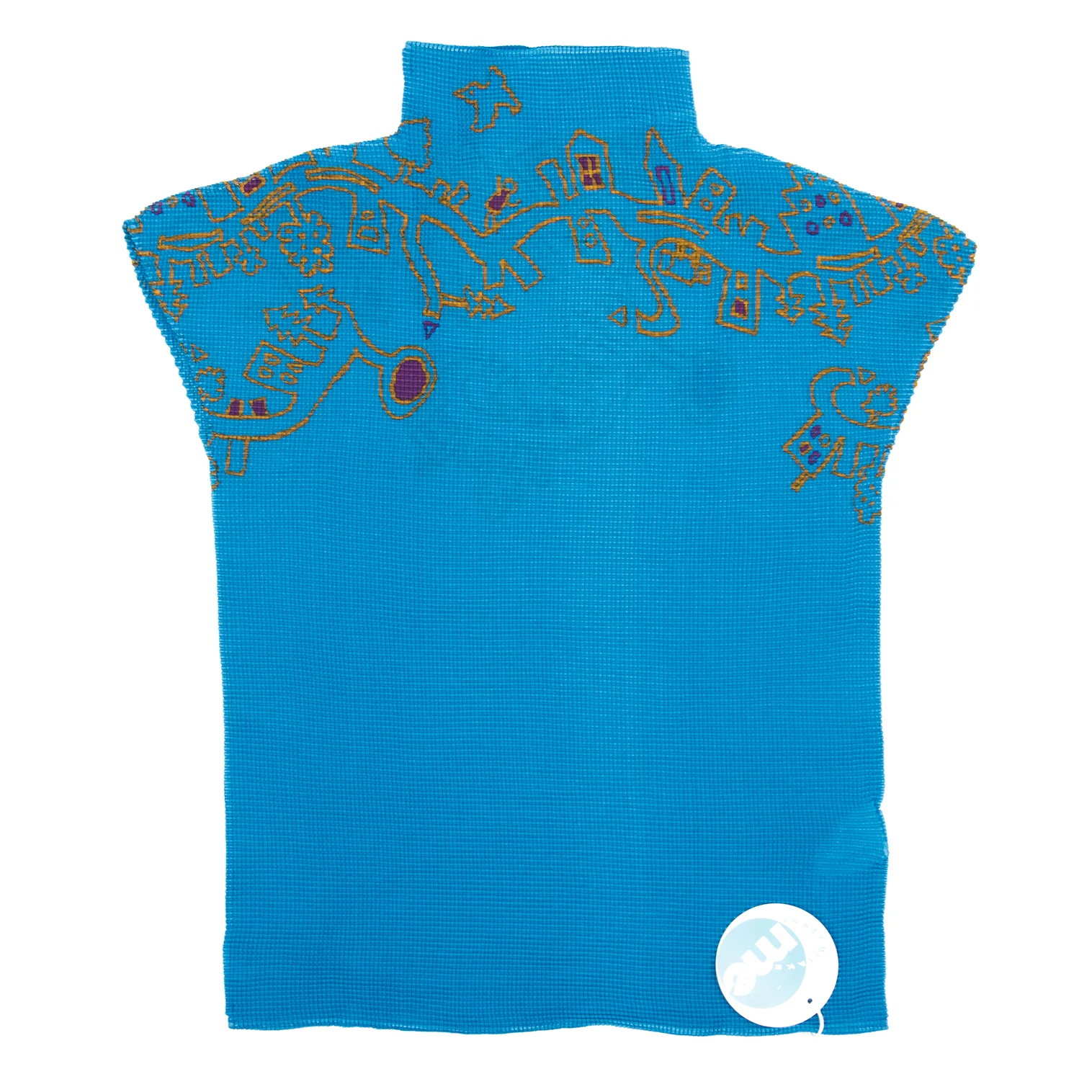 ISSEY MIYAKE me Graffiti Printed Stretch Pleats High Neck T-shirt Sky blue,Orange Free