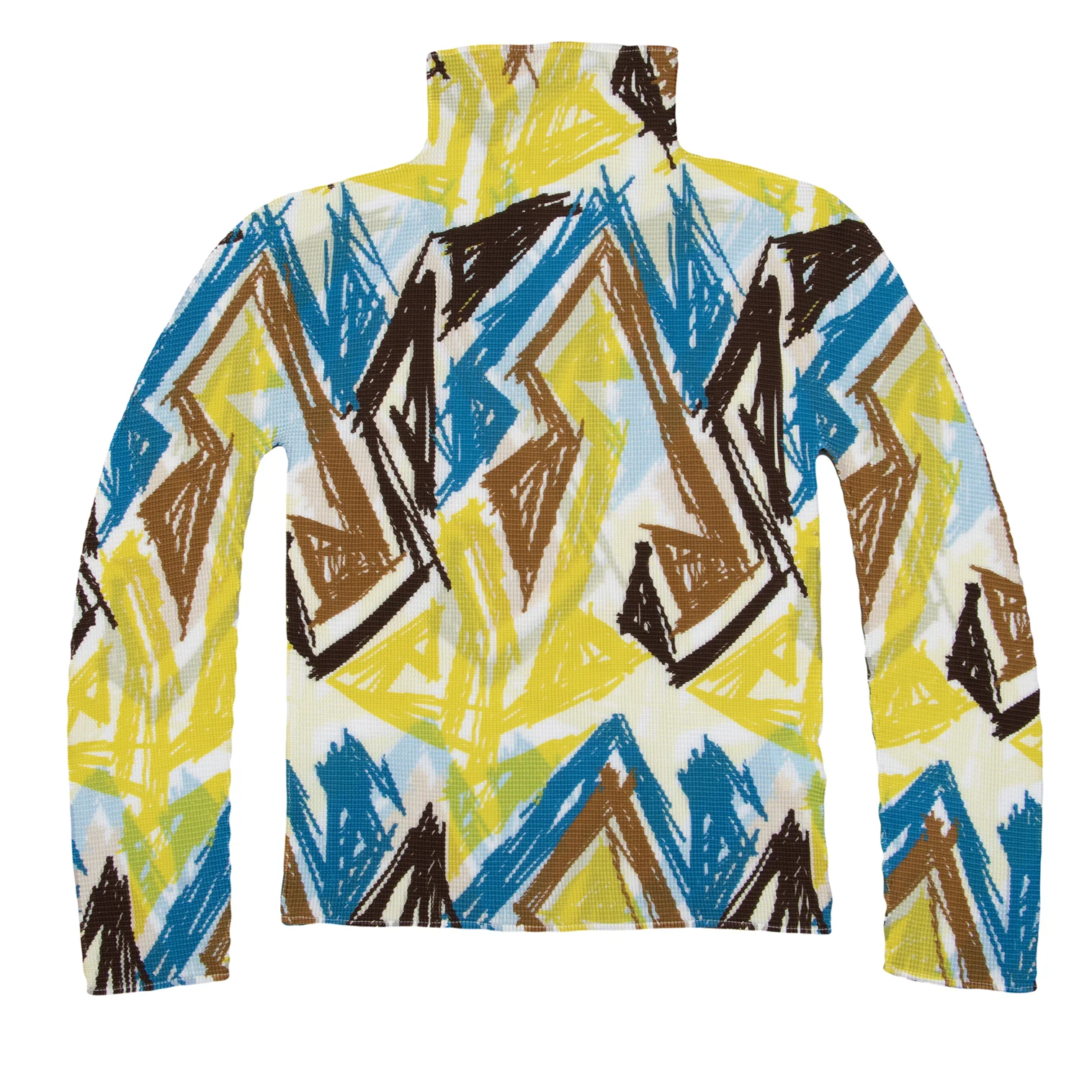 ISSEY MIYAKE me Graffiti Printed Stretch Pleats High Neck T-shirt Yellow,Blue,Brown Free