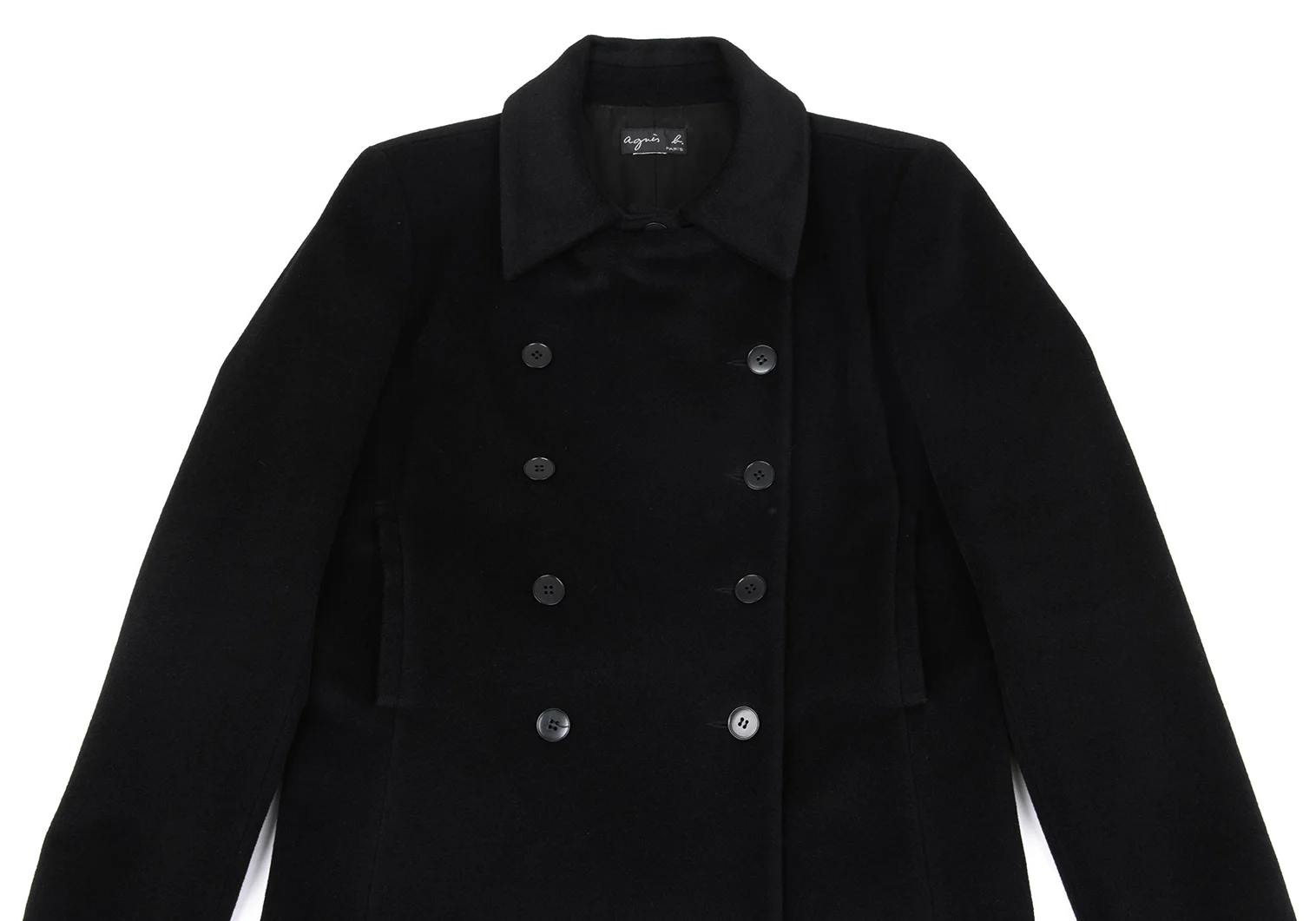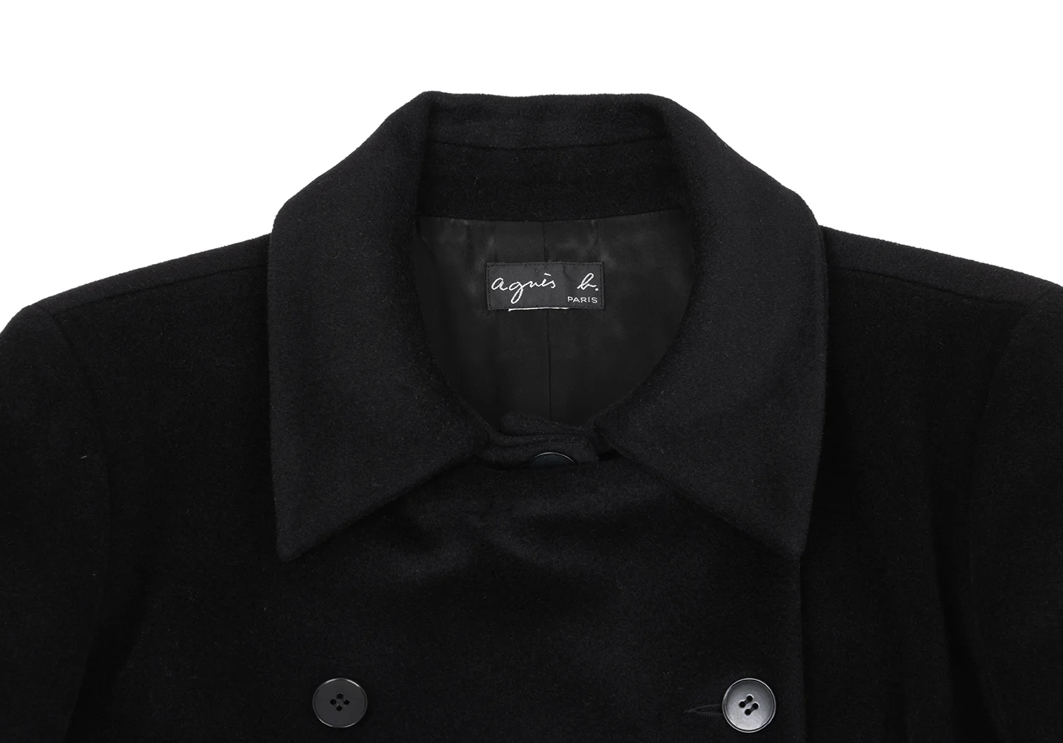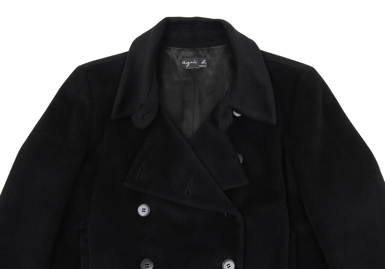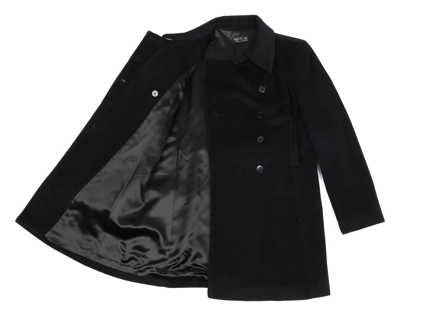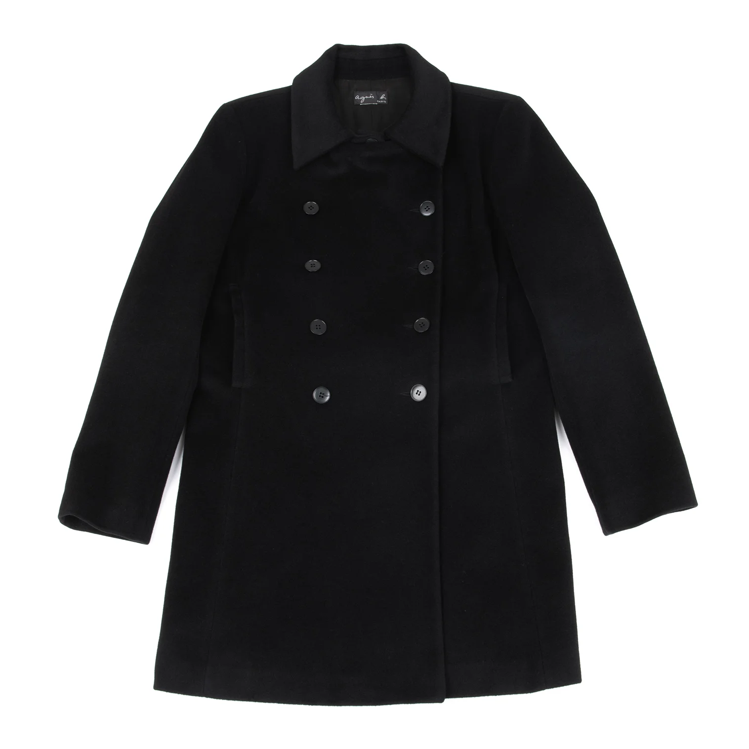 agnes b. Wool Angola Double Breasted Coat Black S-M