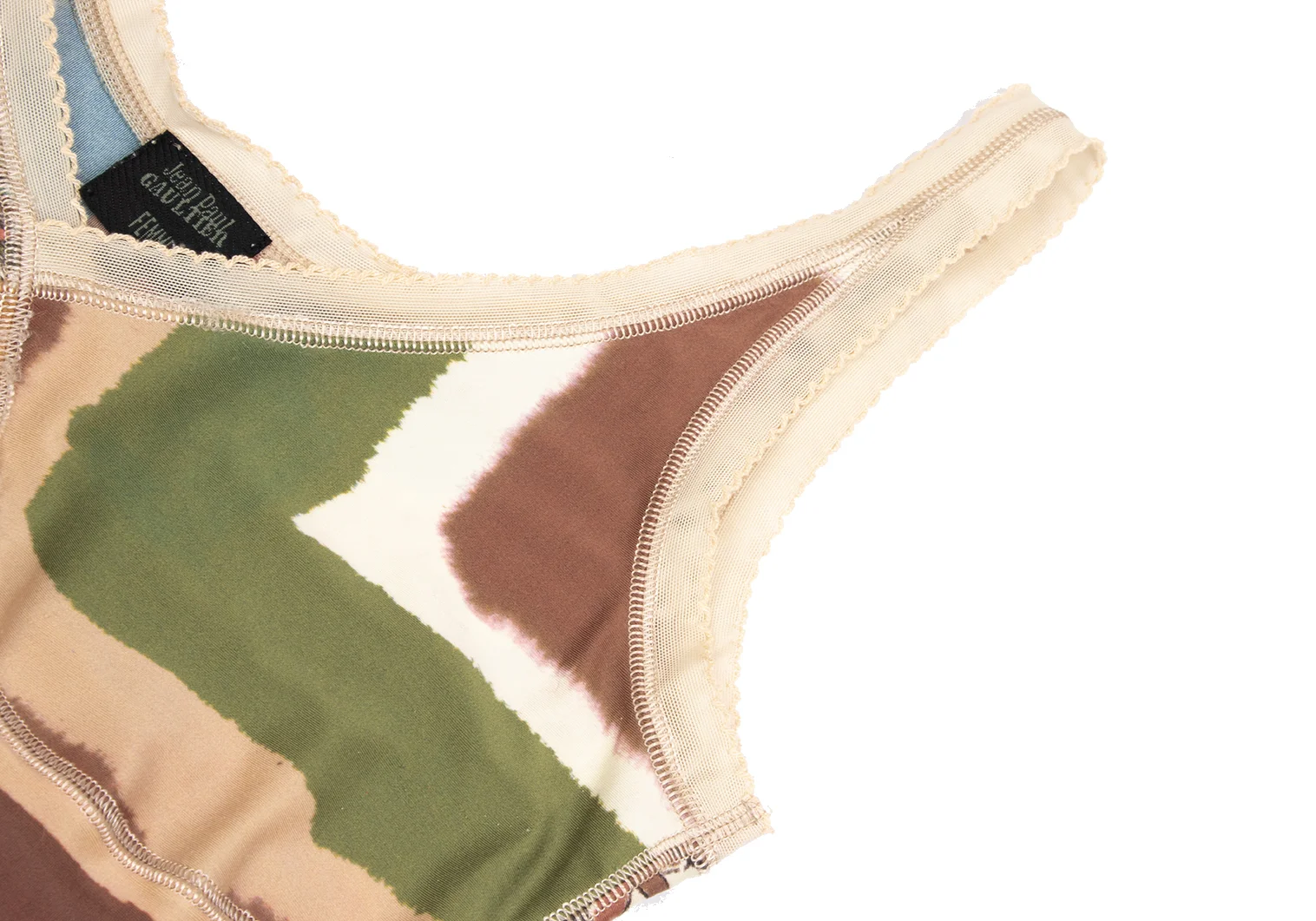 Jean Paul GAULTIER FEMME Multi Graphic Print Stretch Sleeveless Dress Beige,Multi-Color 40
