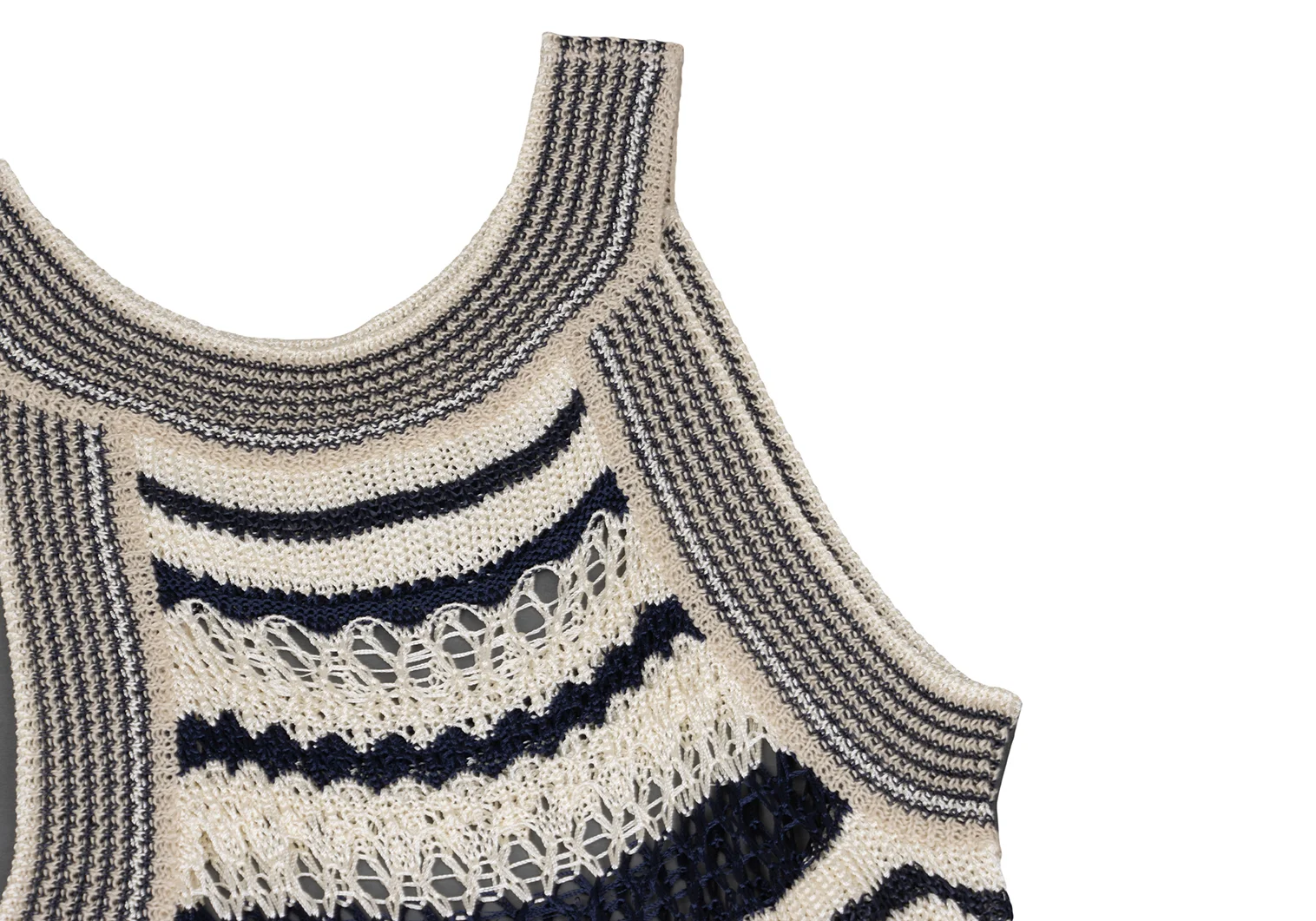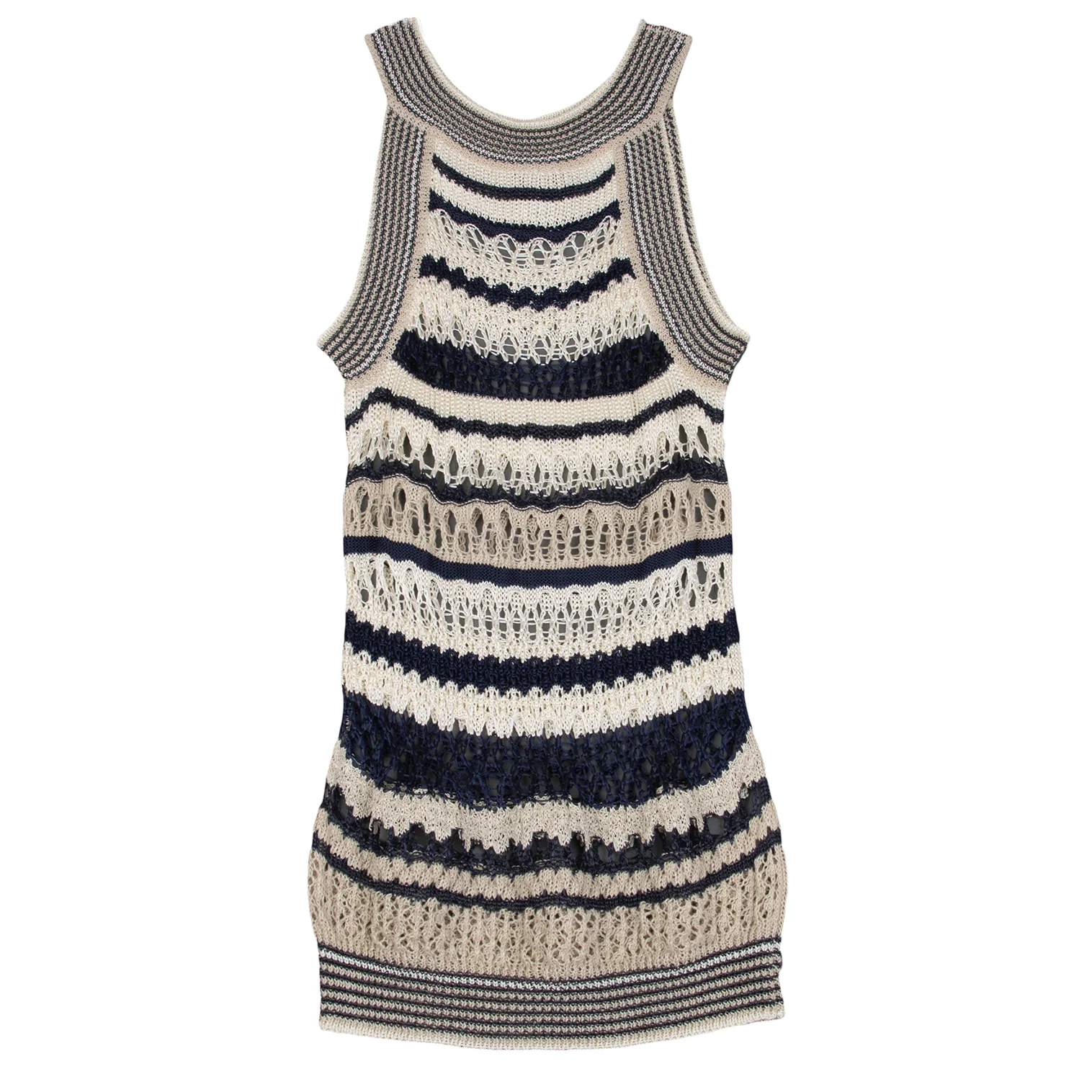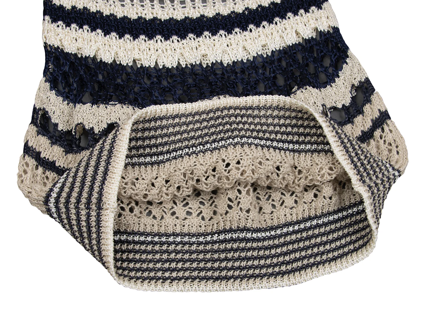 Jean Paul GAULTIER MAILLE FEMME Rayon Linen Openwork Sleeveless Knit Tunic Ivory,Navy S
