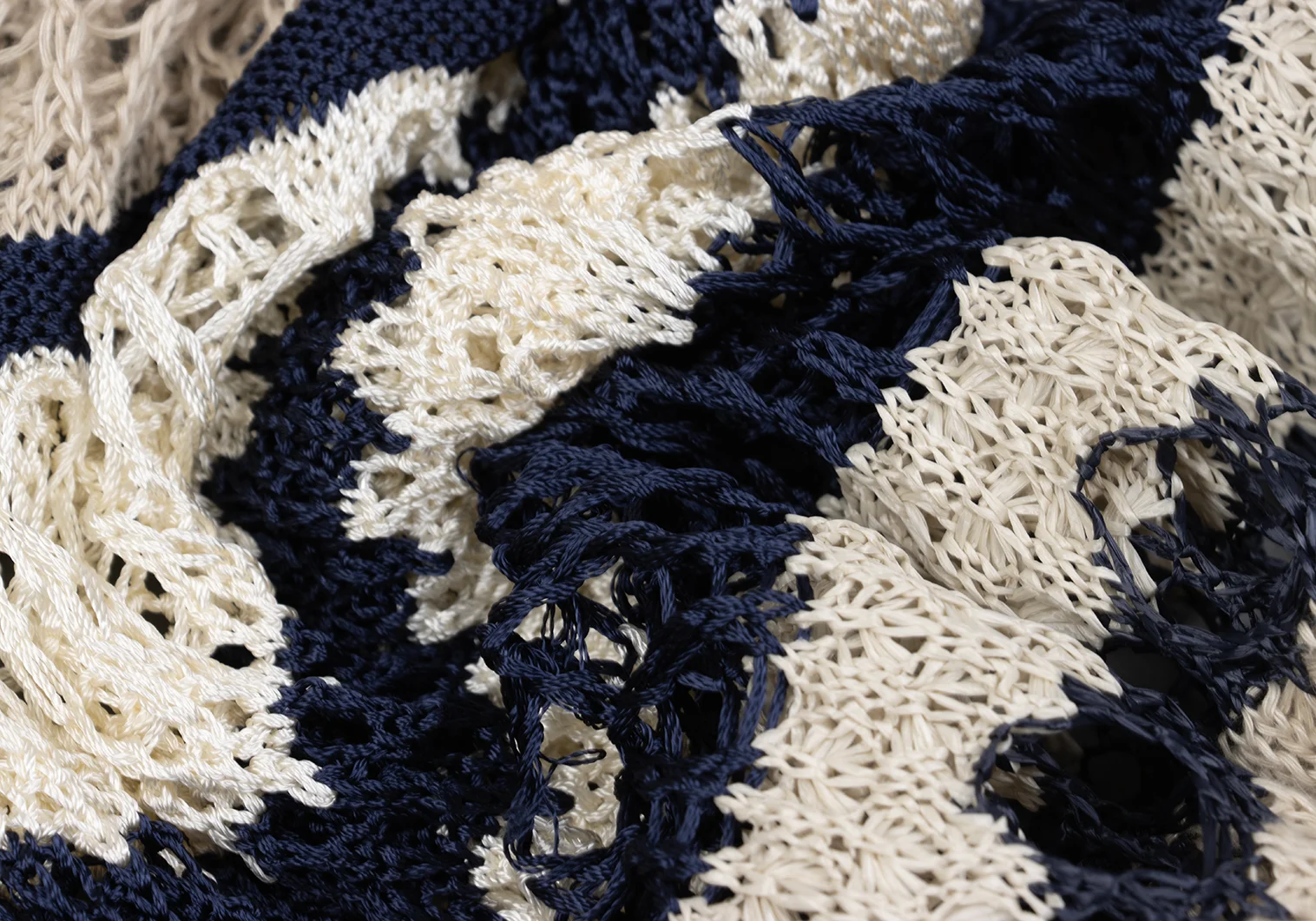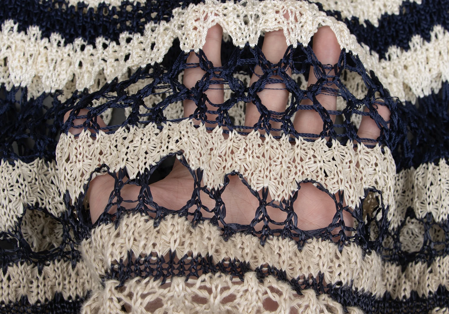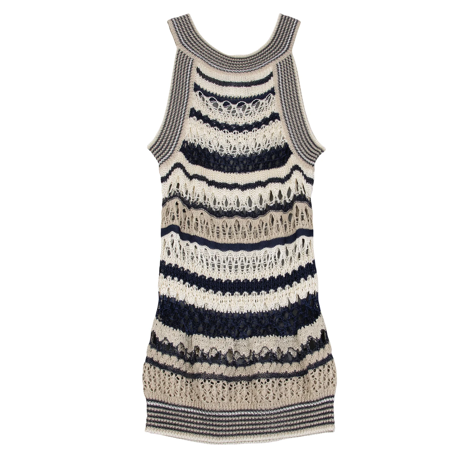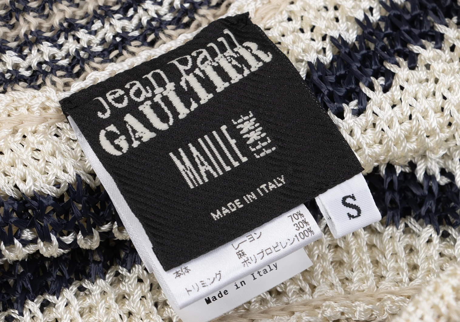 Jean Paul GAULTIER MAILLE FEMME Rayon Linen Openwork Sleeveless Knit Tunic Ivory,Navy S