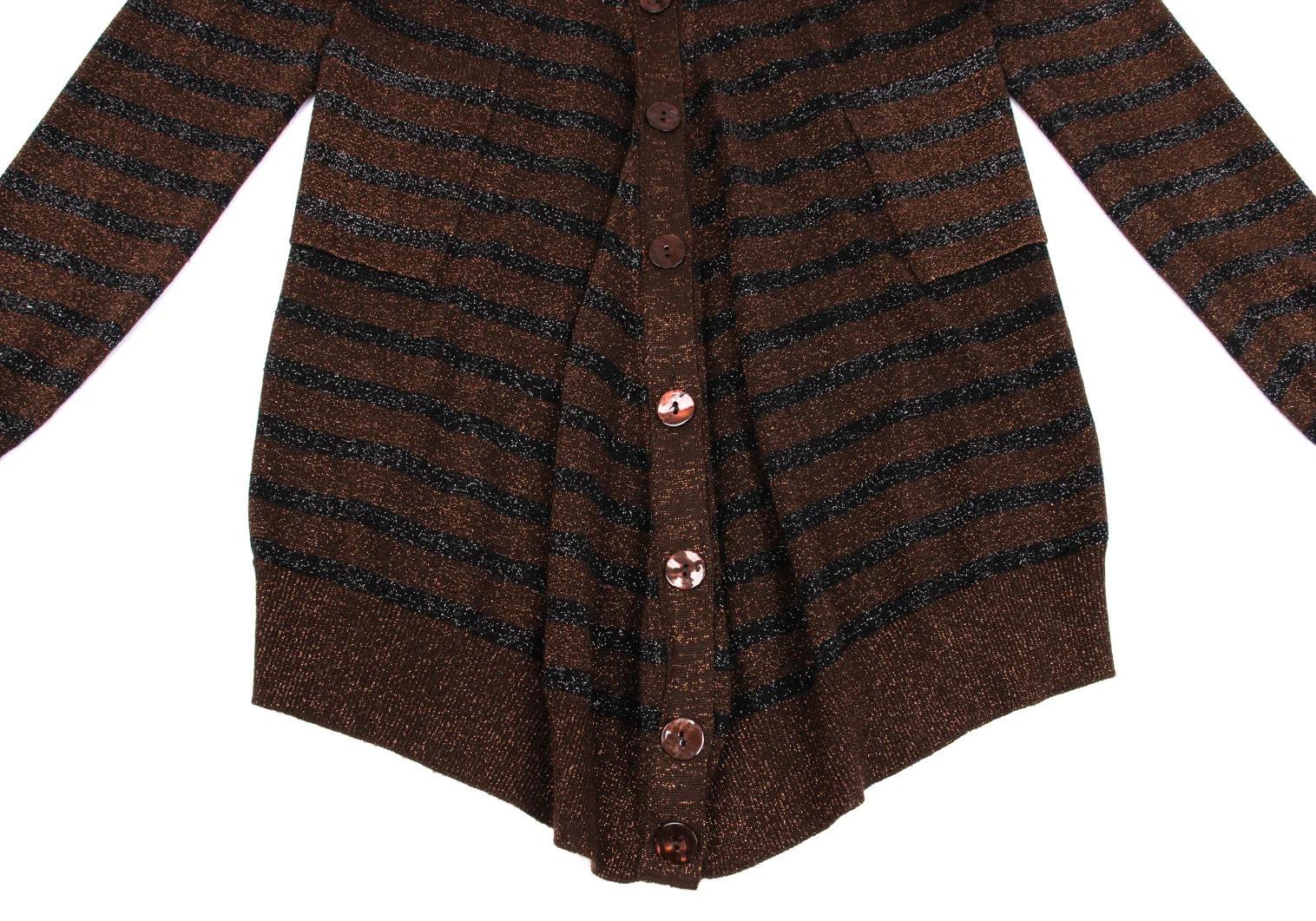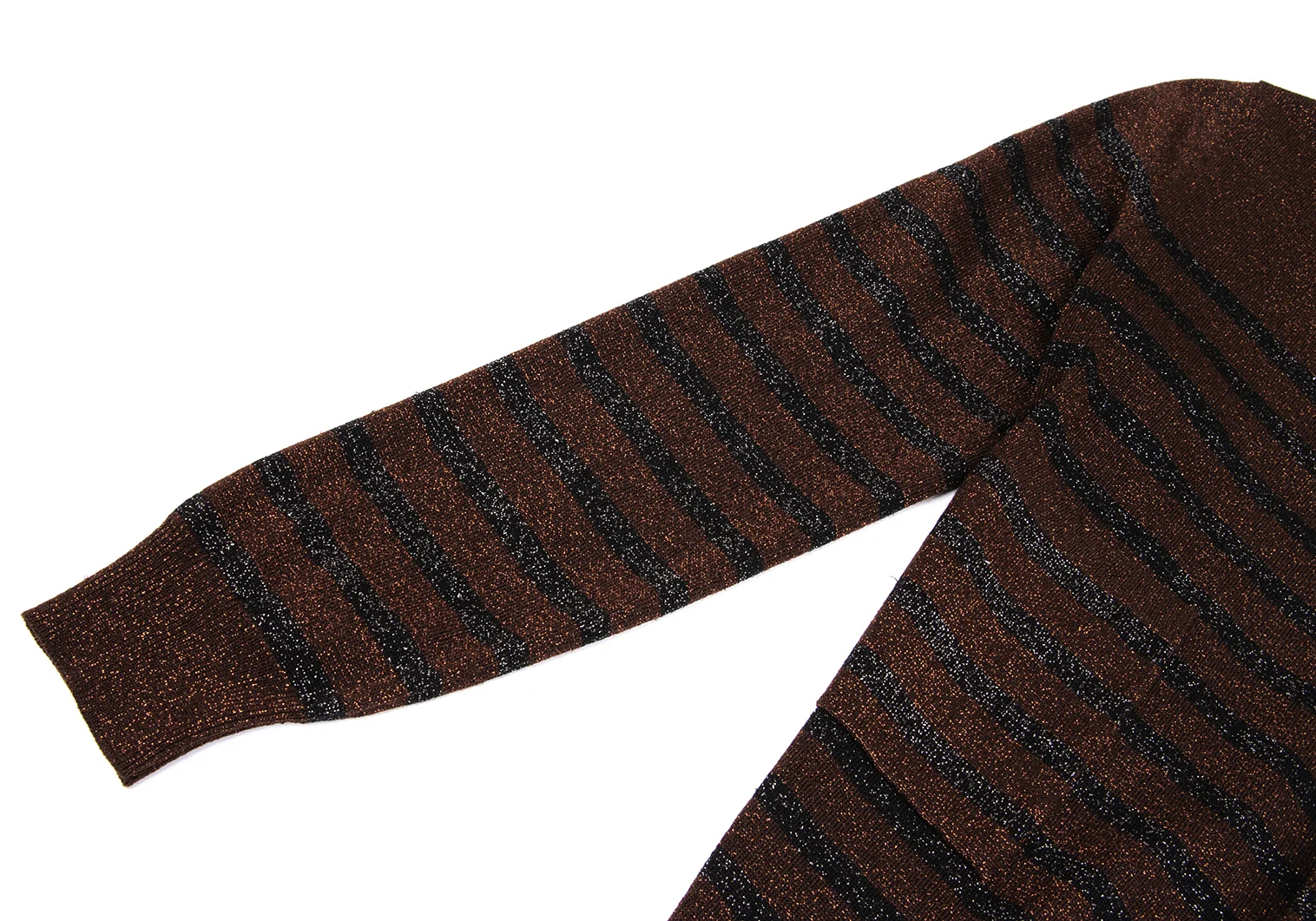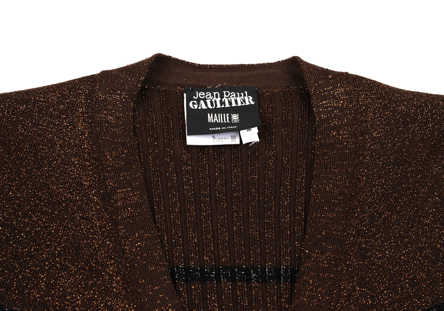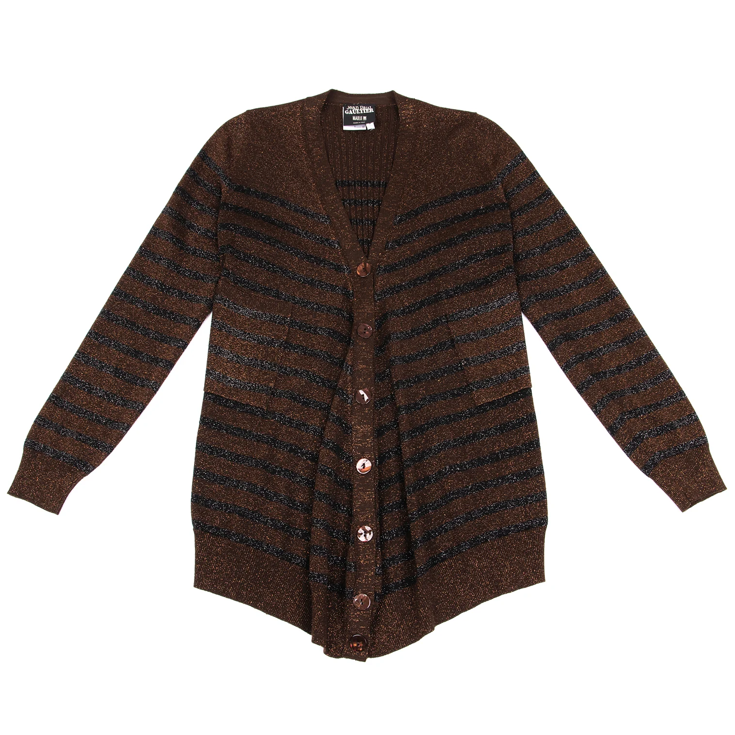 Jean Paul GAULTIER MAILLE FEMME Wool Blend Glitter Striped Knit Cardigan Brown,Black S