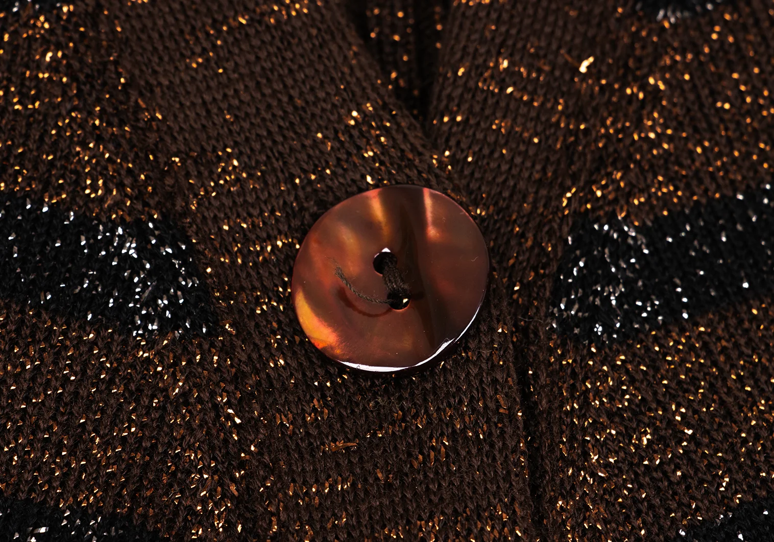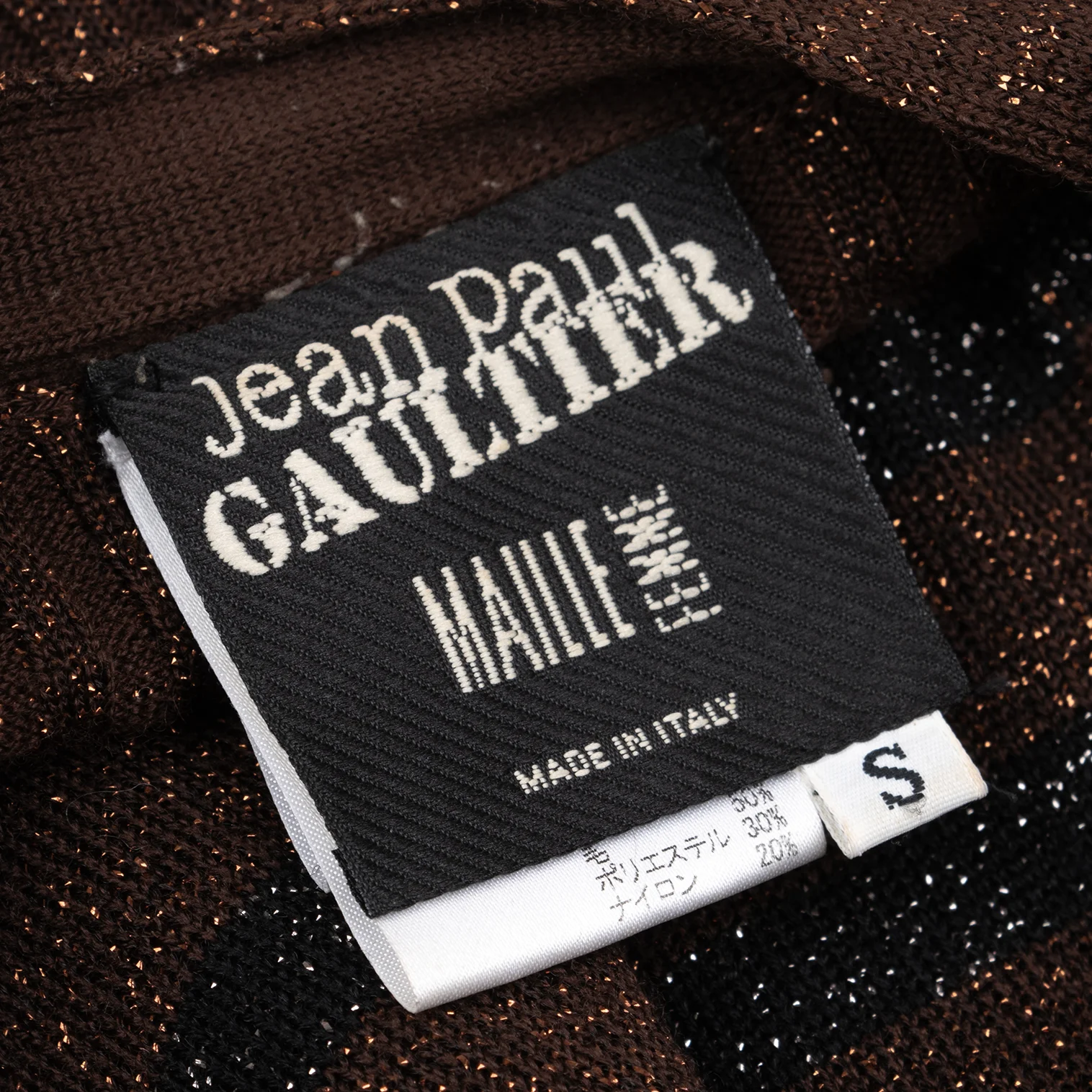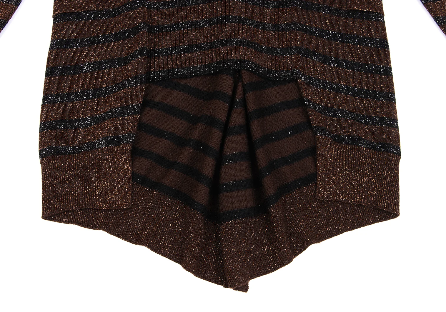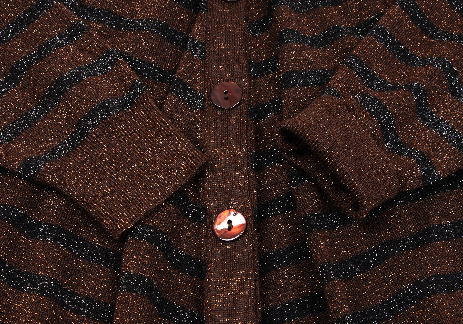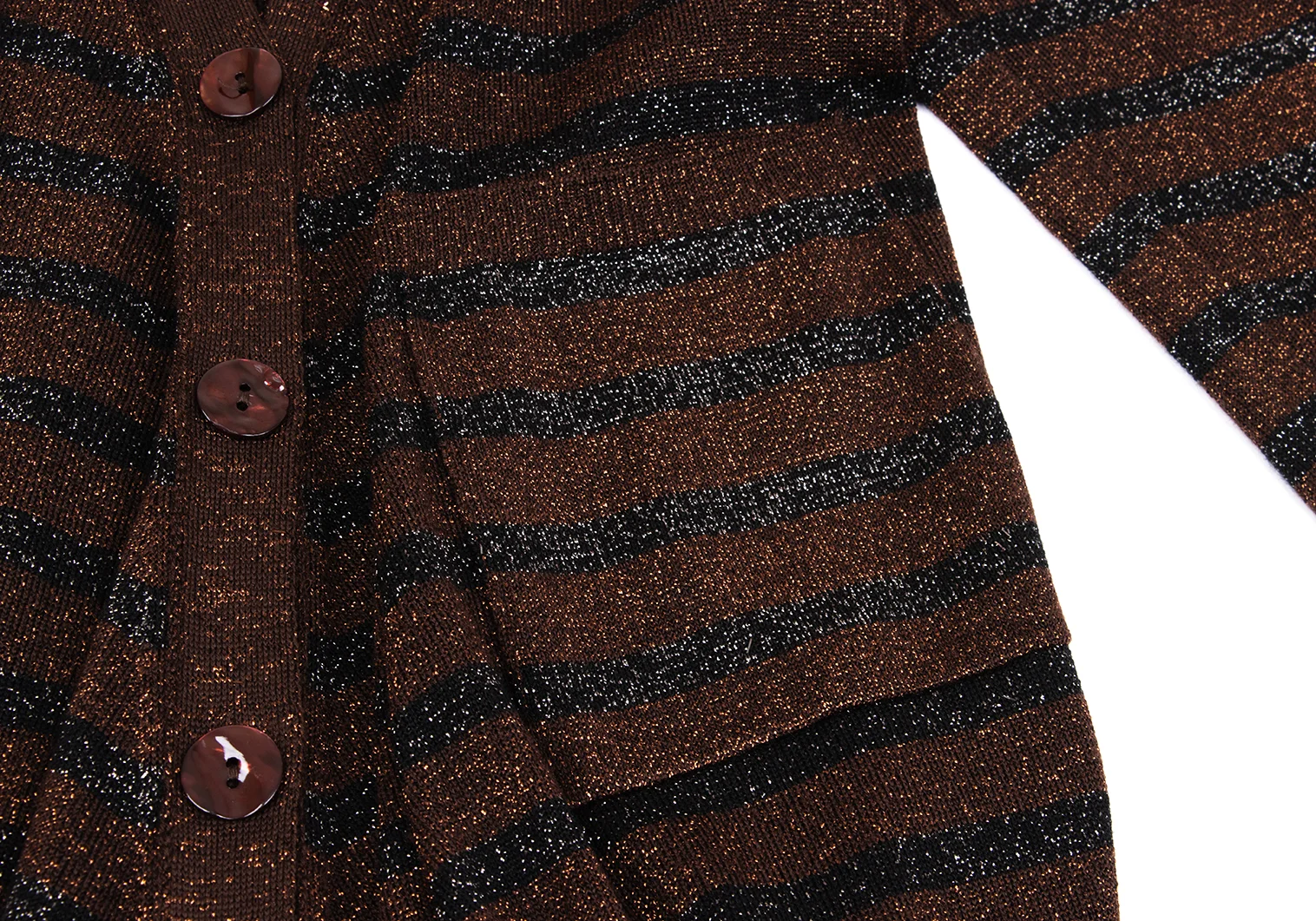 Jean Paul GAULTIER MAILLE FEMME Wool Blend Glitter Striped Knit Cardigan Brown,Black S