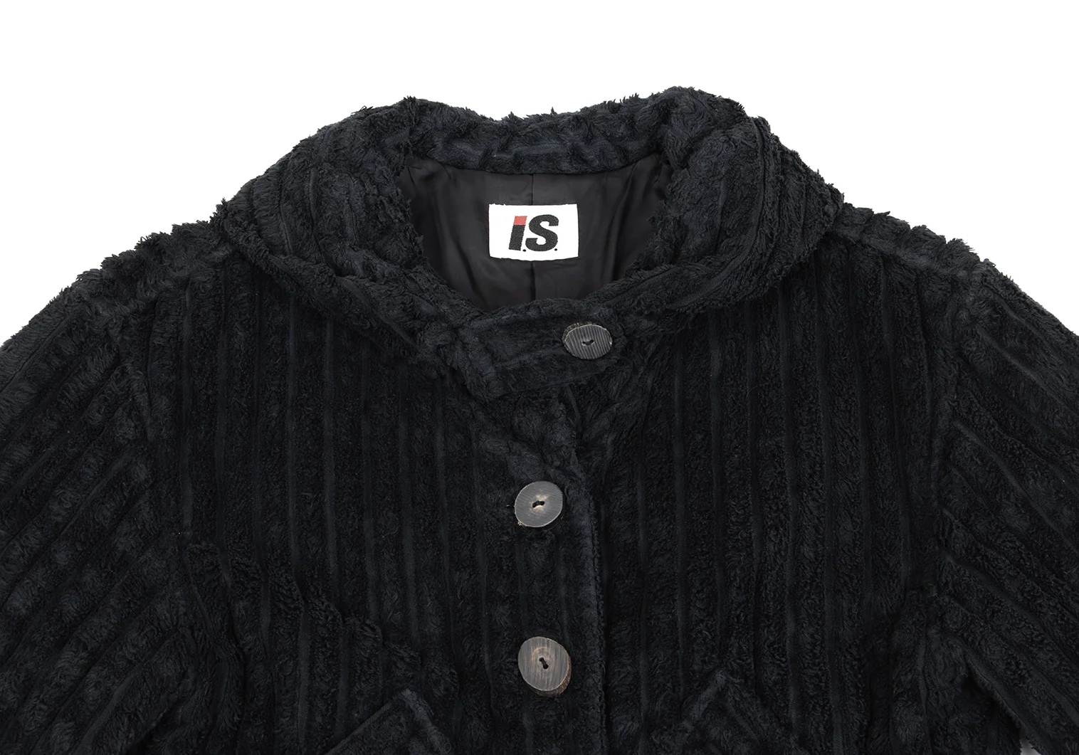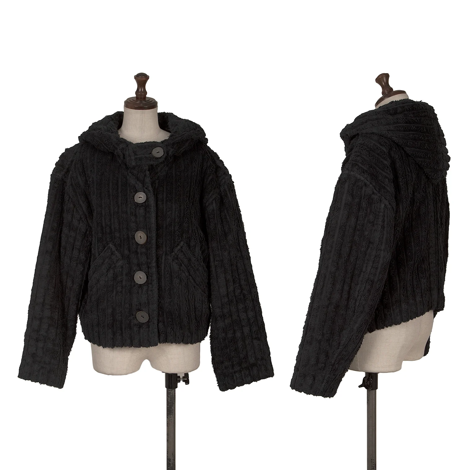 ISSEY MIYAKE I.S. Cotton Stripe Pile Hooded Jacket Black M