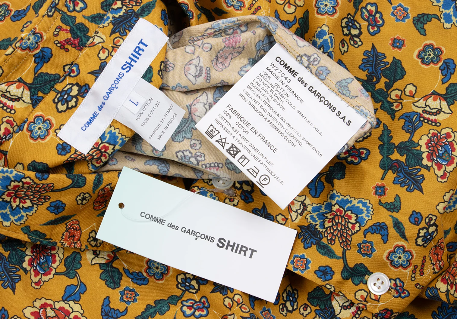 COMME des GARCONS SHIRT Botanical Printed Long Sleeve Shirt Mustard,Multi-Color L