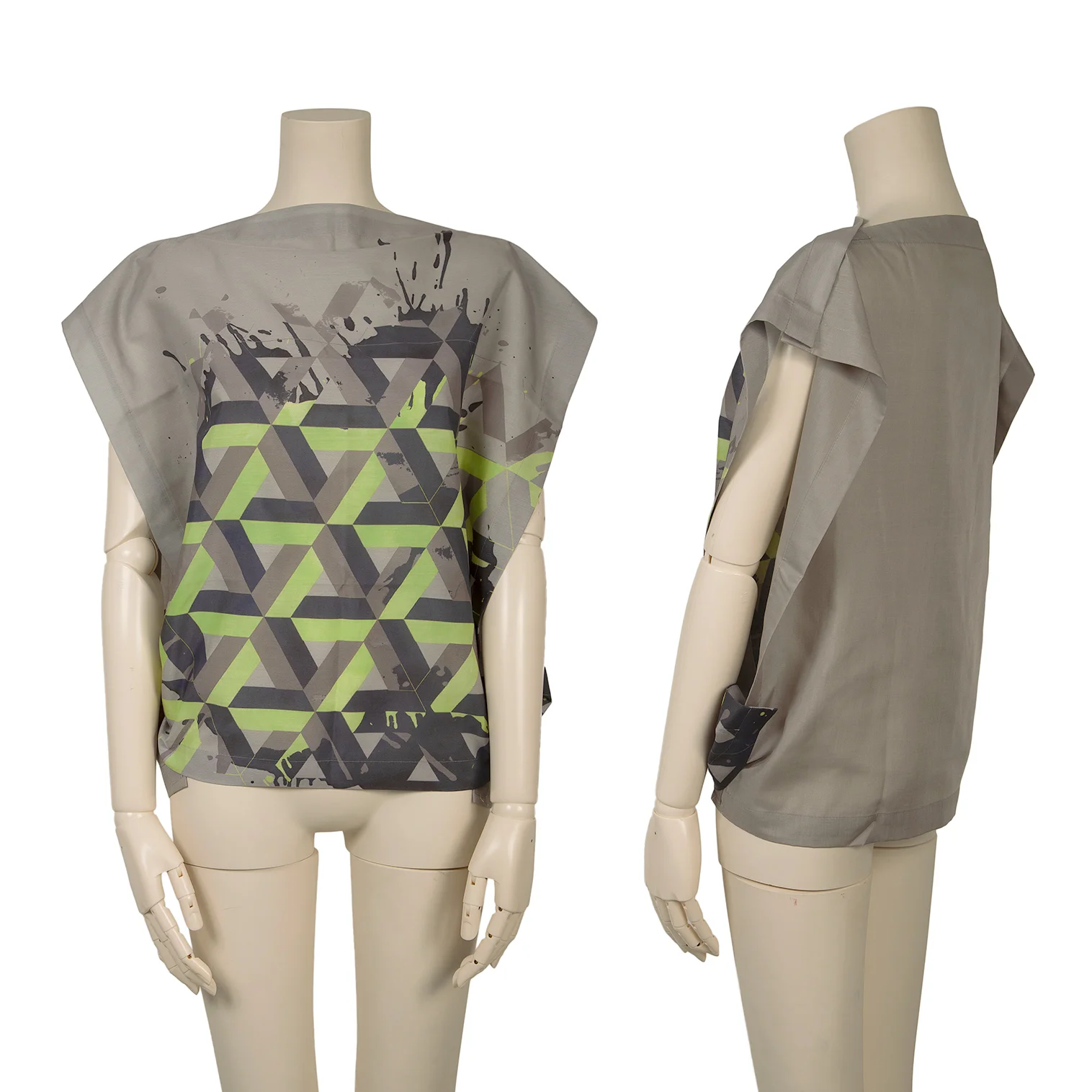 ISSEY MIYAKE 132 5. Splash Geometric Print Square Top Grey,Light Green 2