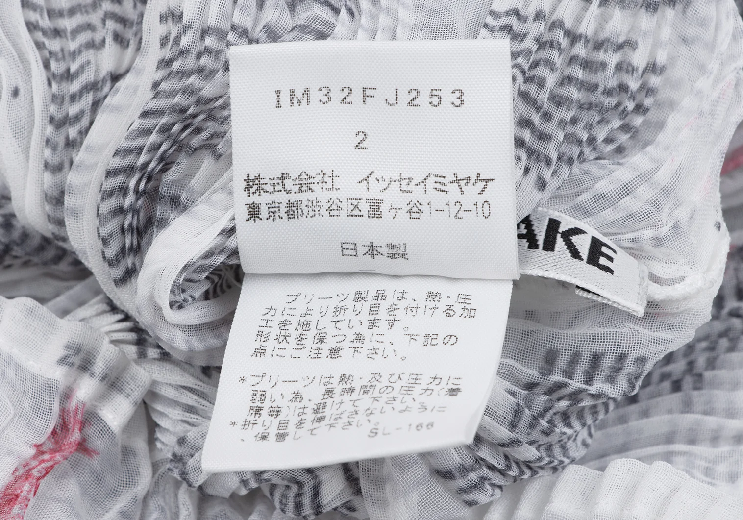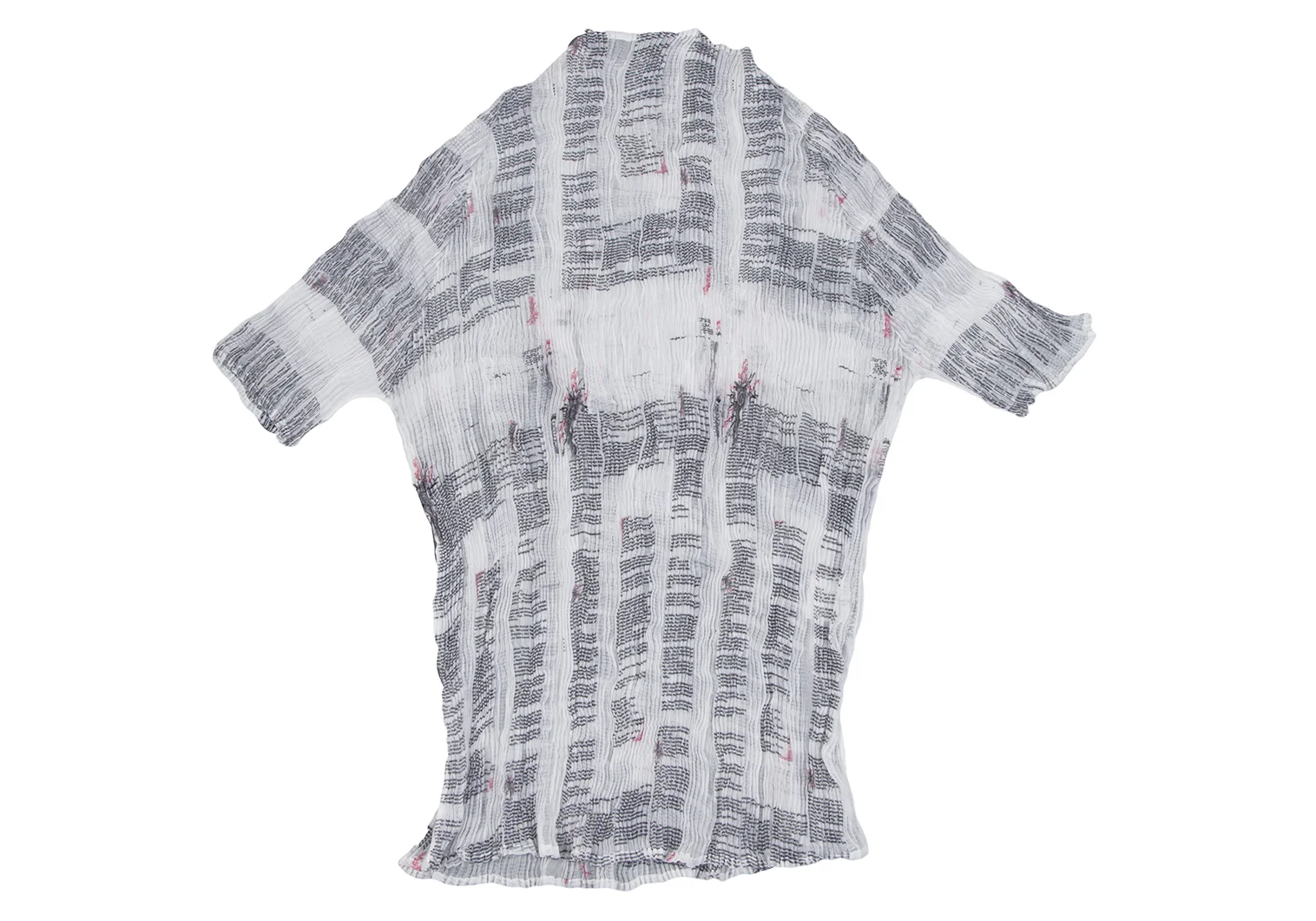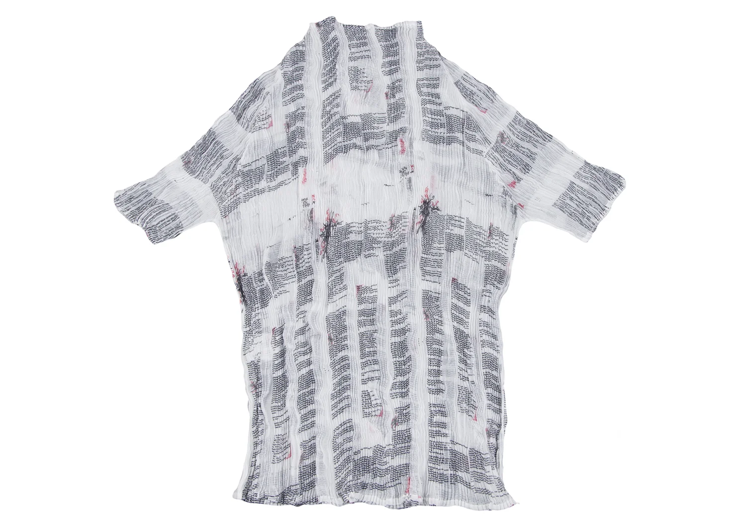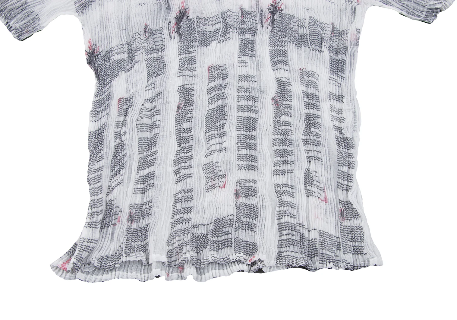 ISSEY MIYAKE WHITE LABEL Transfer Print Sheer Loop Pleated Mock Neck T-Shirt White,Black 2