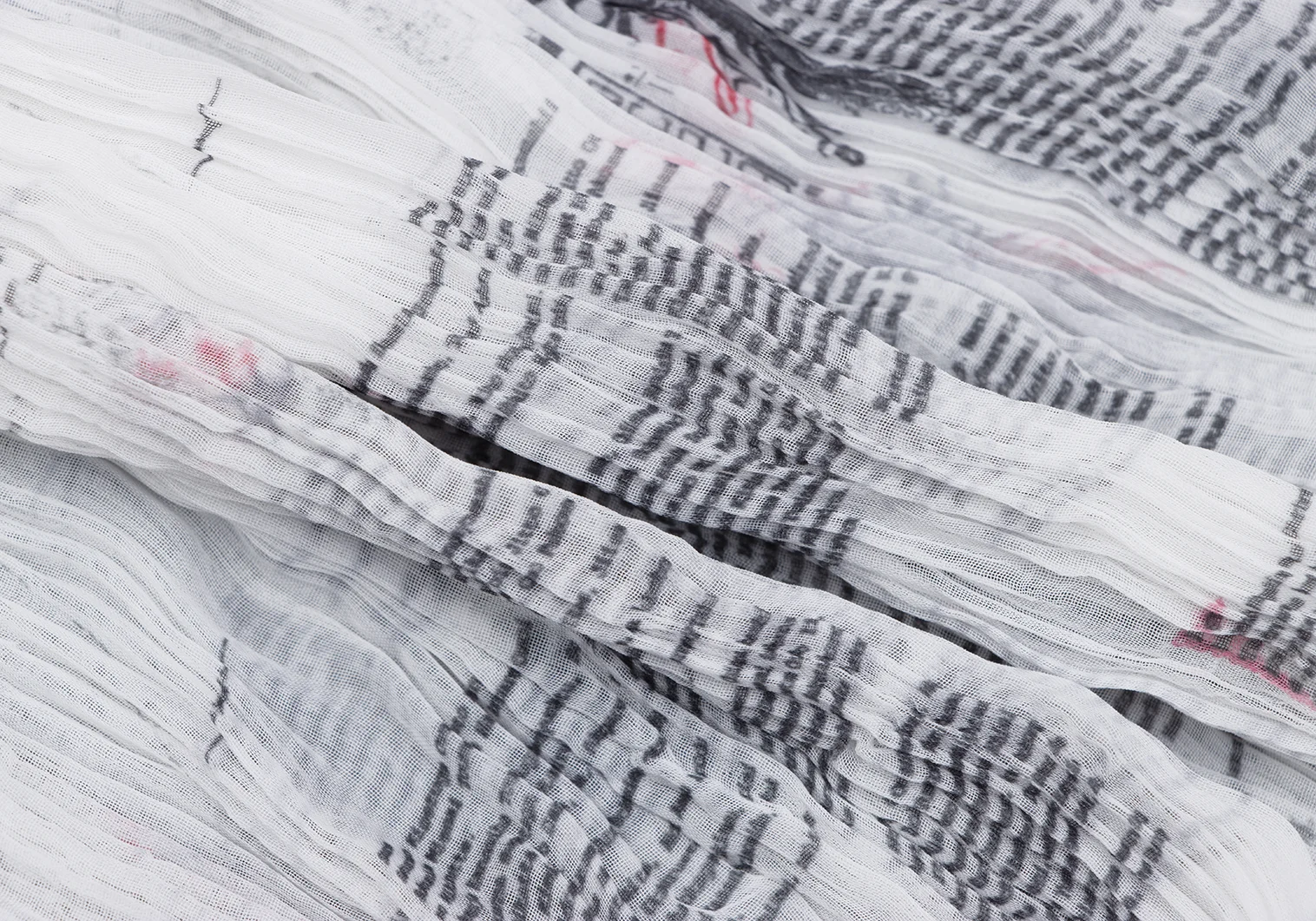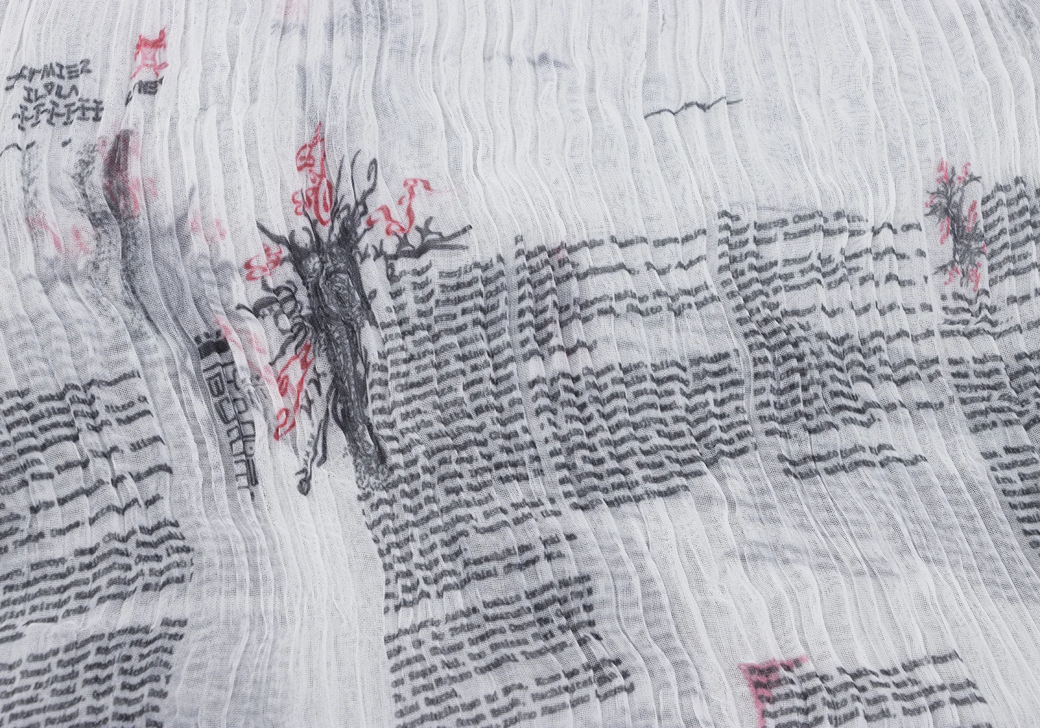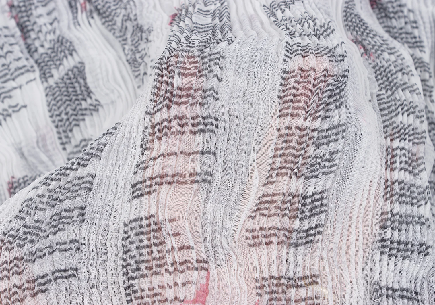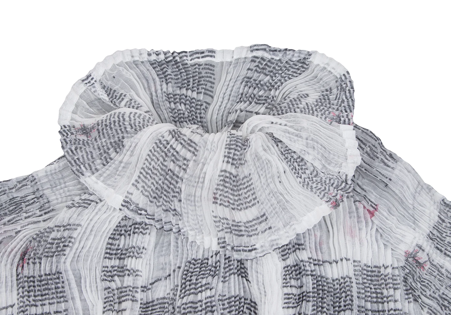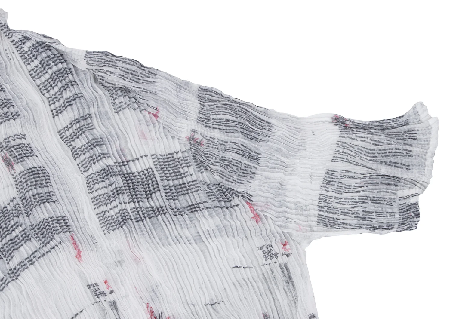 ISSEY MIYAKE WHITE LABEL Transfer Print Sheer Loop Pleated Mock Neck T-Shirt White,Black 2