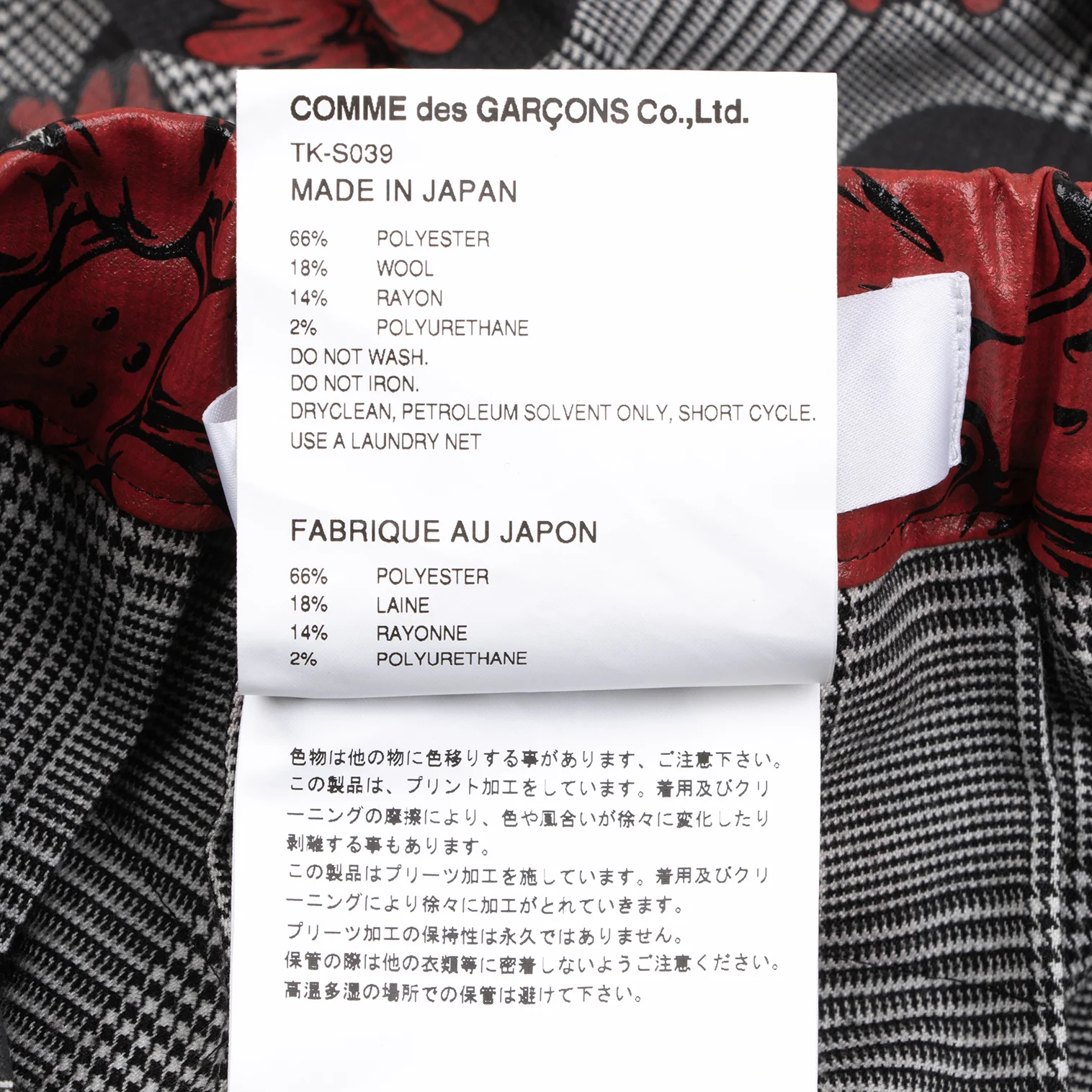 66% Polyester 18% Wool 14% Rayon 2% Polyurethane |