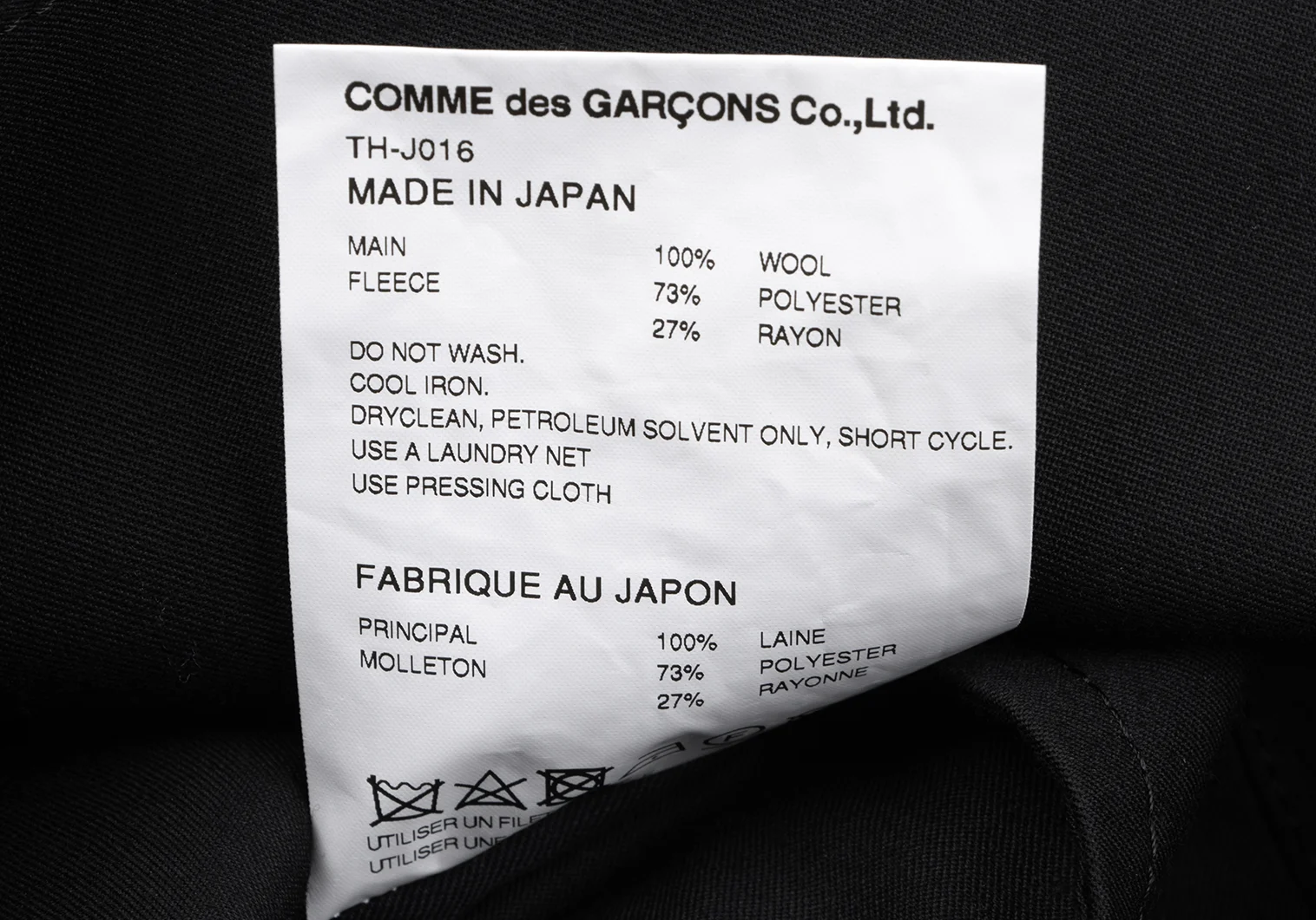 | S | Black | 100% Wool Fleece 73% Polyester 27% Rayon | 740g |