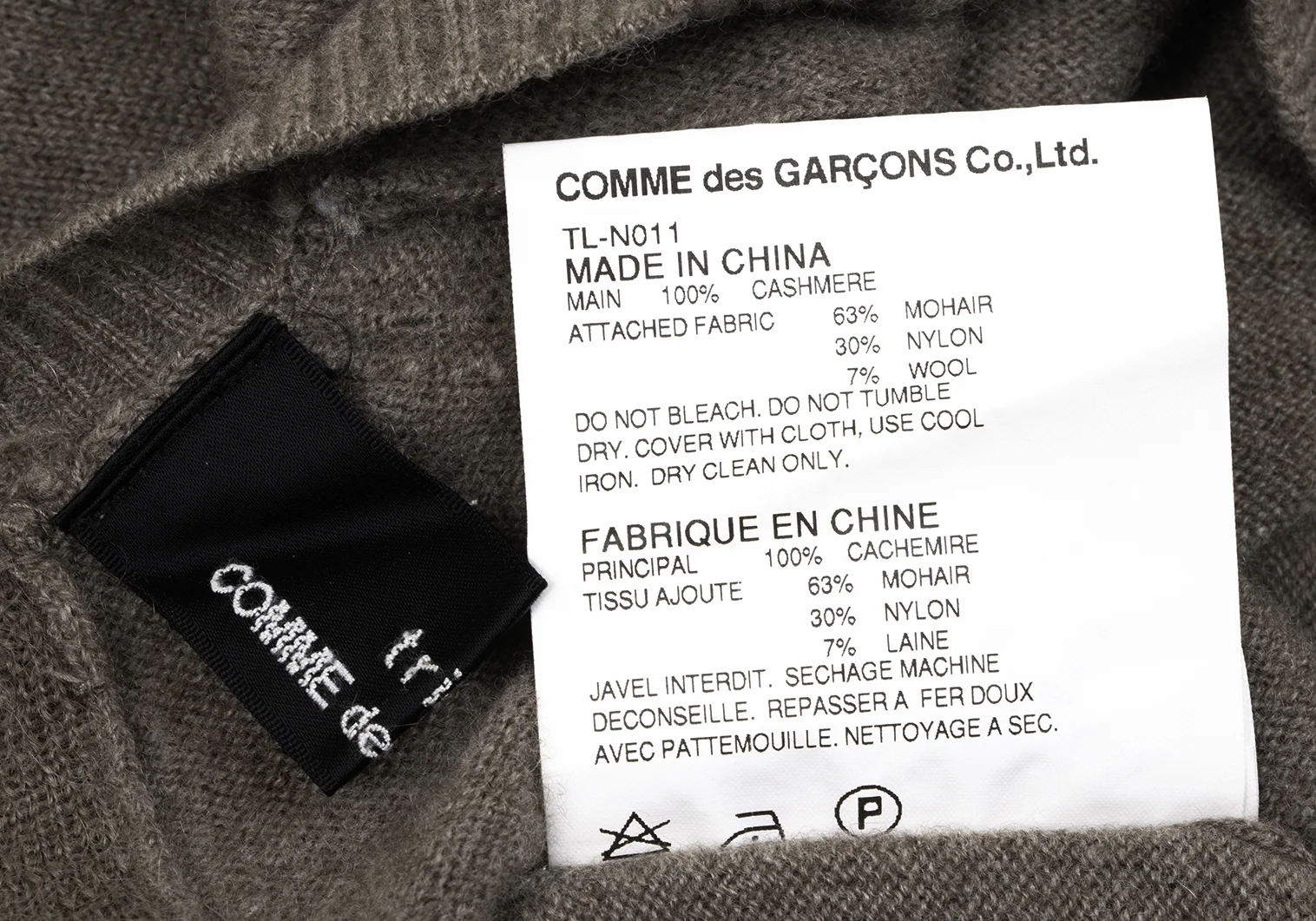 100% Cashmere Another 63% Mohair 30% Nylon 7% Wool |