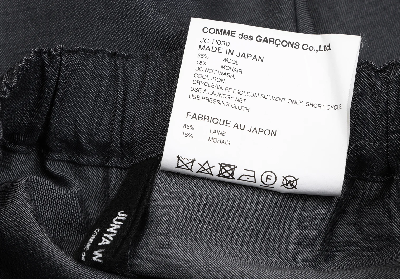 JUNYA WATANABE COMME des GARCONS Mohair Blend Wool Dropped Crotch Pants Charcoal XS