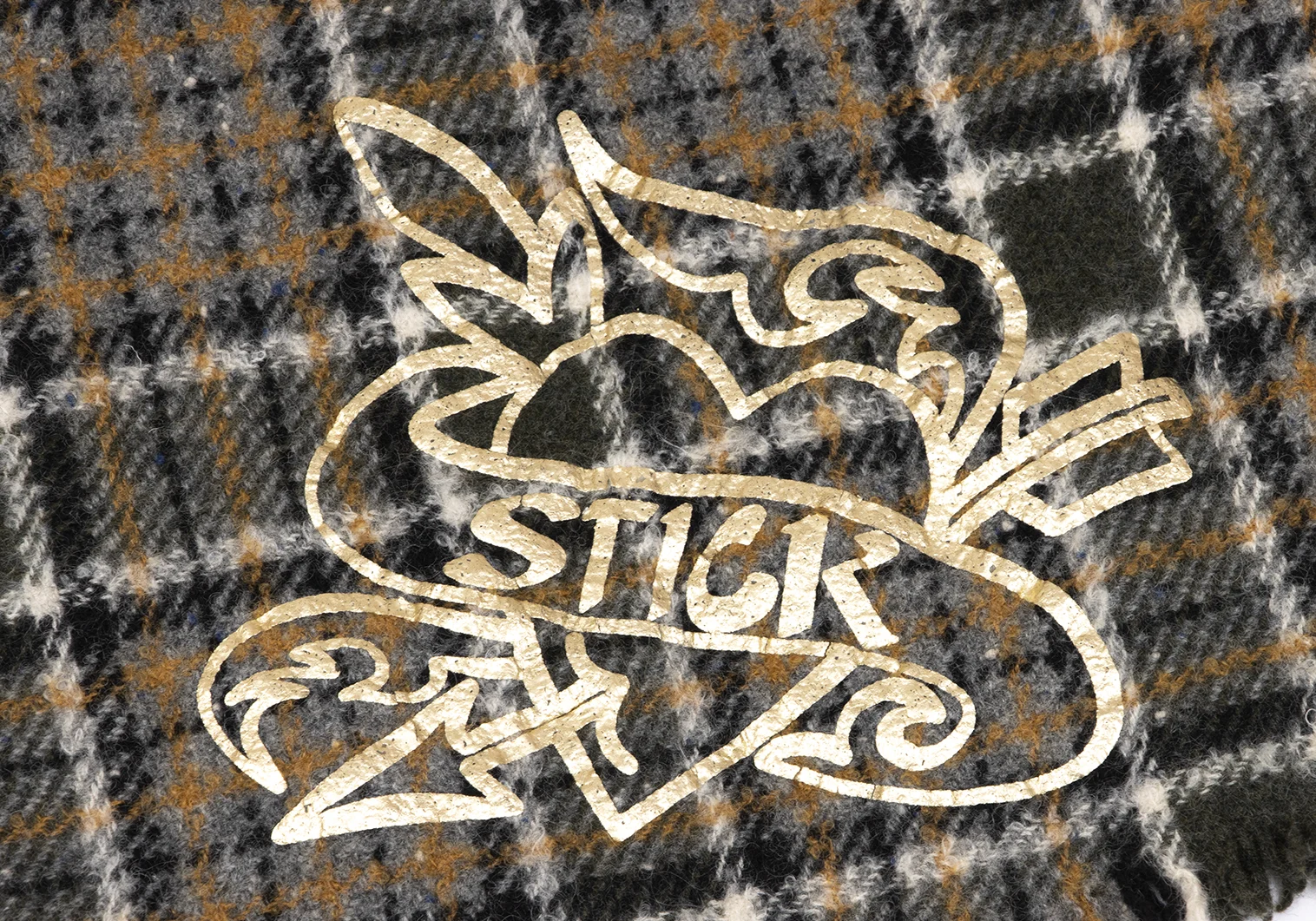 JUNYA WATANABE COMME des GARCONS Tattoo Printed Check Fringe Scarf Grey,Khaki Free