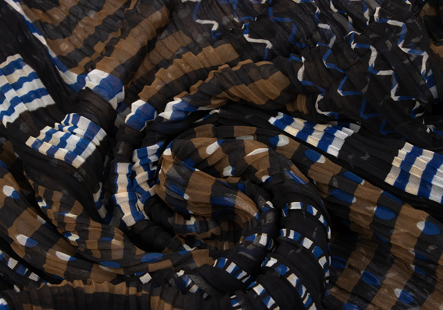 Unbranded Geometric Printed Sheer Diamond Pleated Large Stole Black,Brown,Blue Free