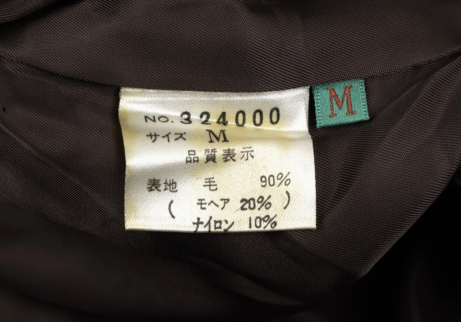 90% Wool (20% mohair) 10% Nylon Lining 100% Cupra