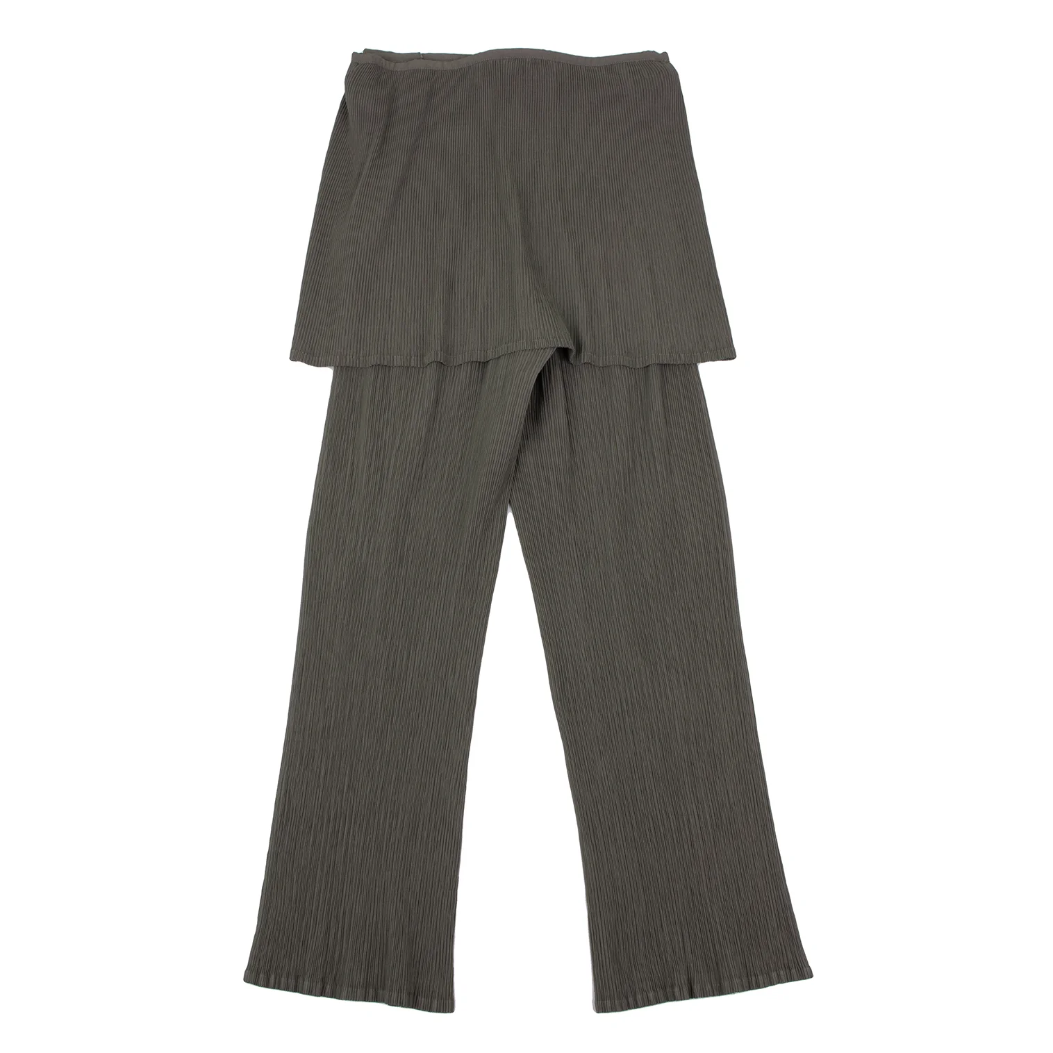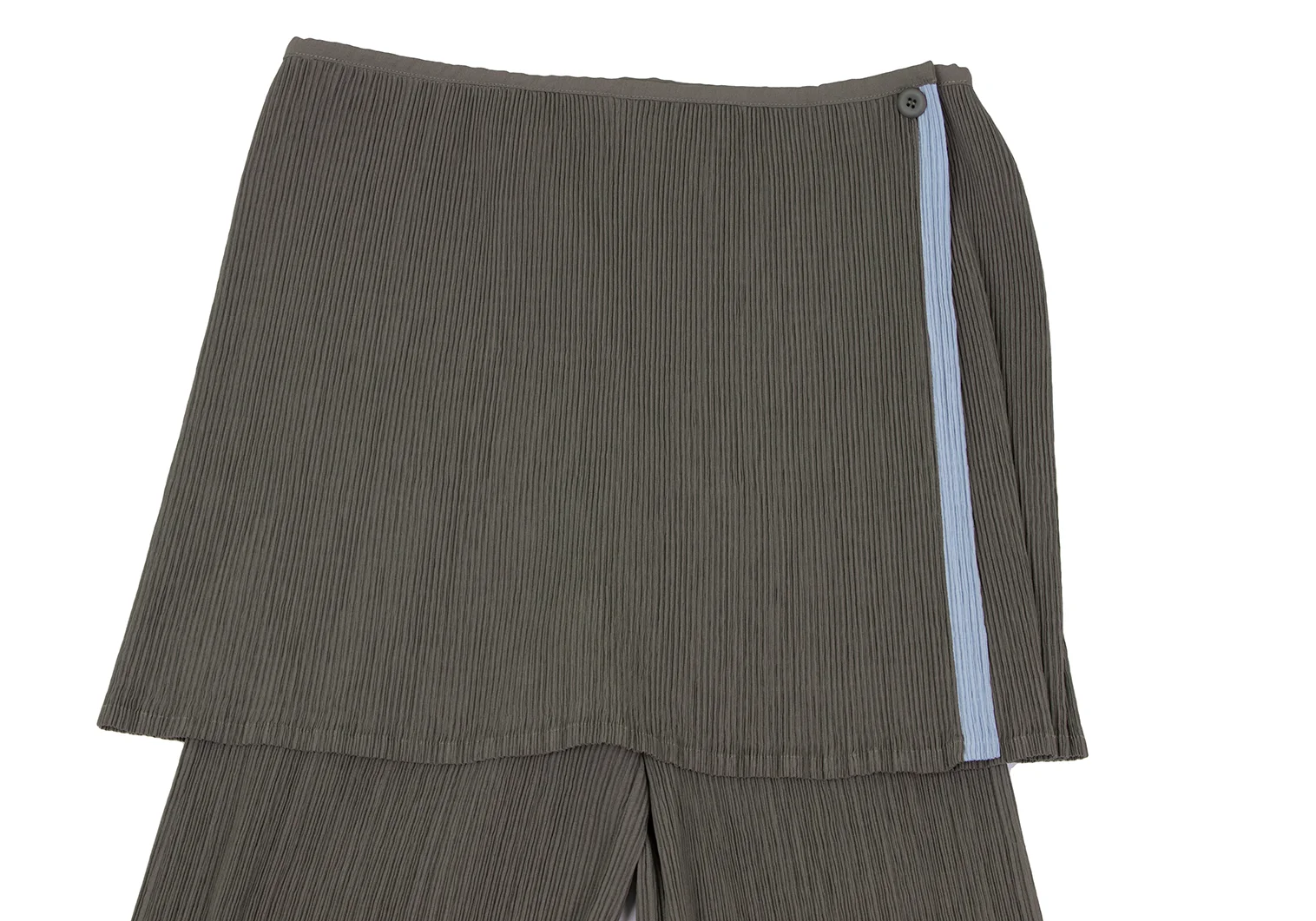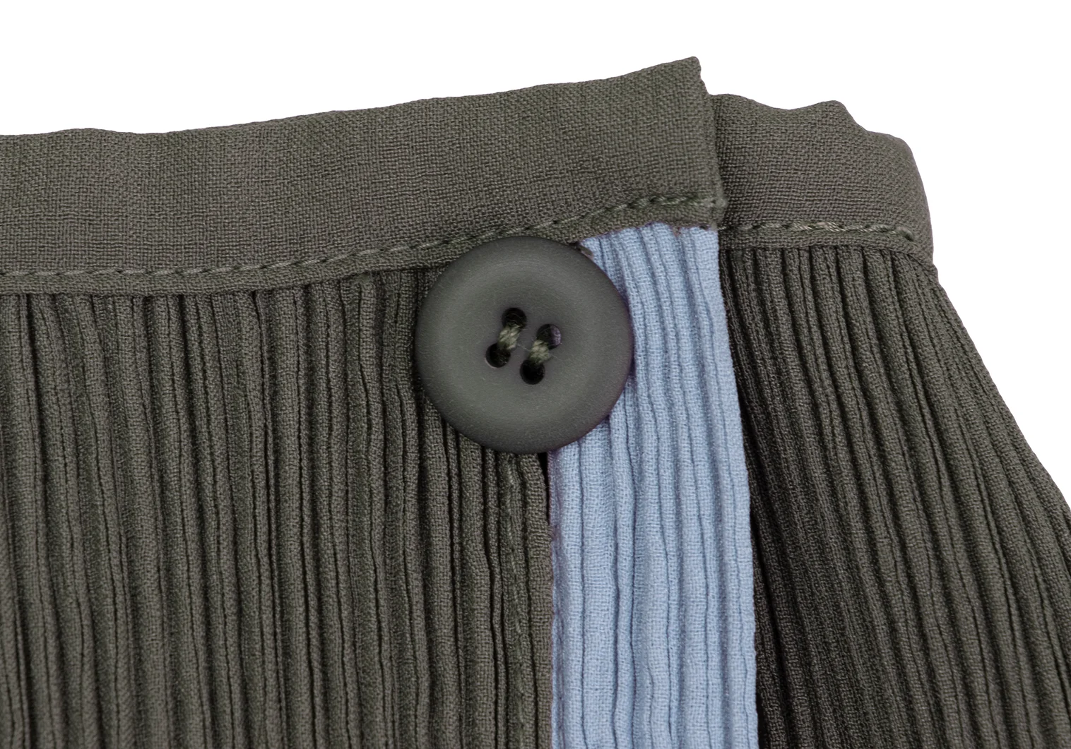 ISSEY MIYAKE WHITE LABEL Crepe Pleated Bicolor Trim Wrap Skirt Pants Grey,Sky blue 1
