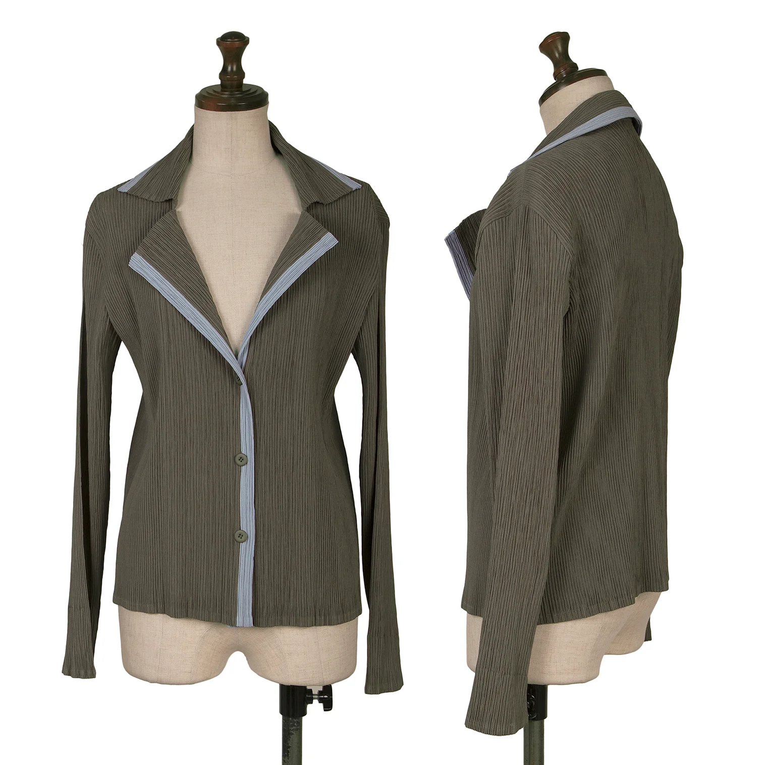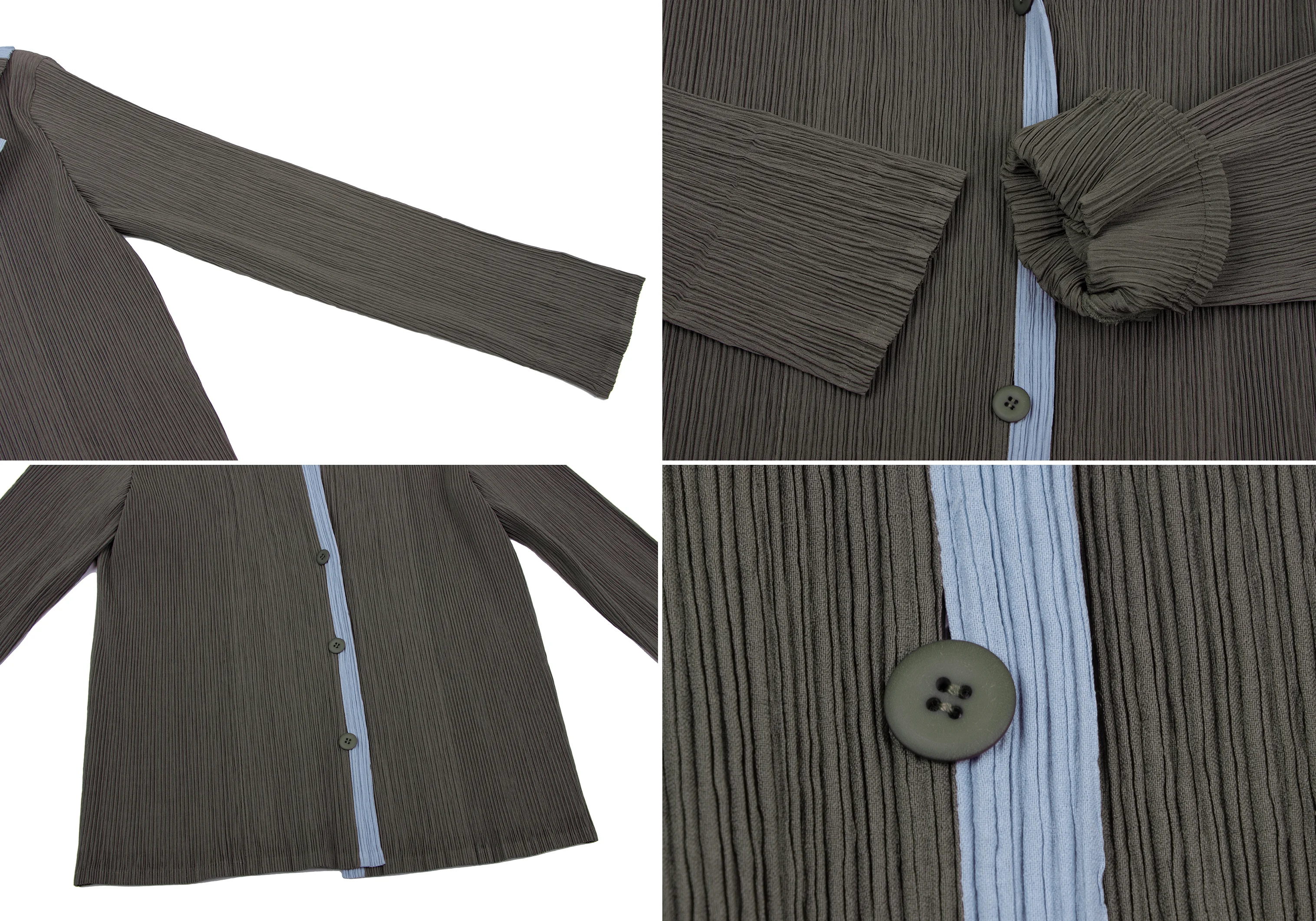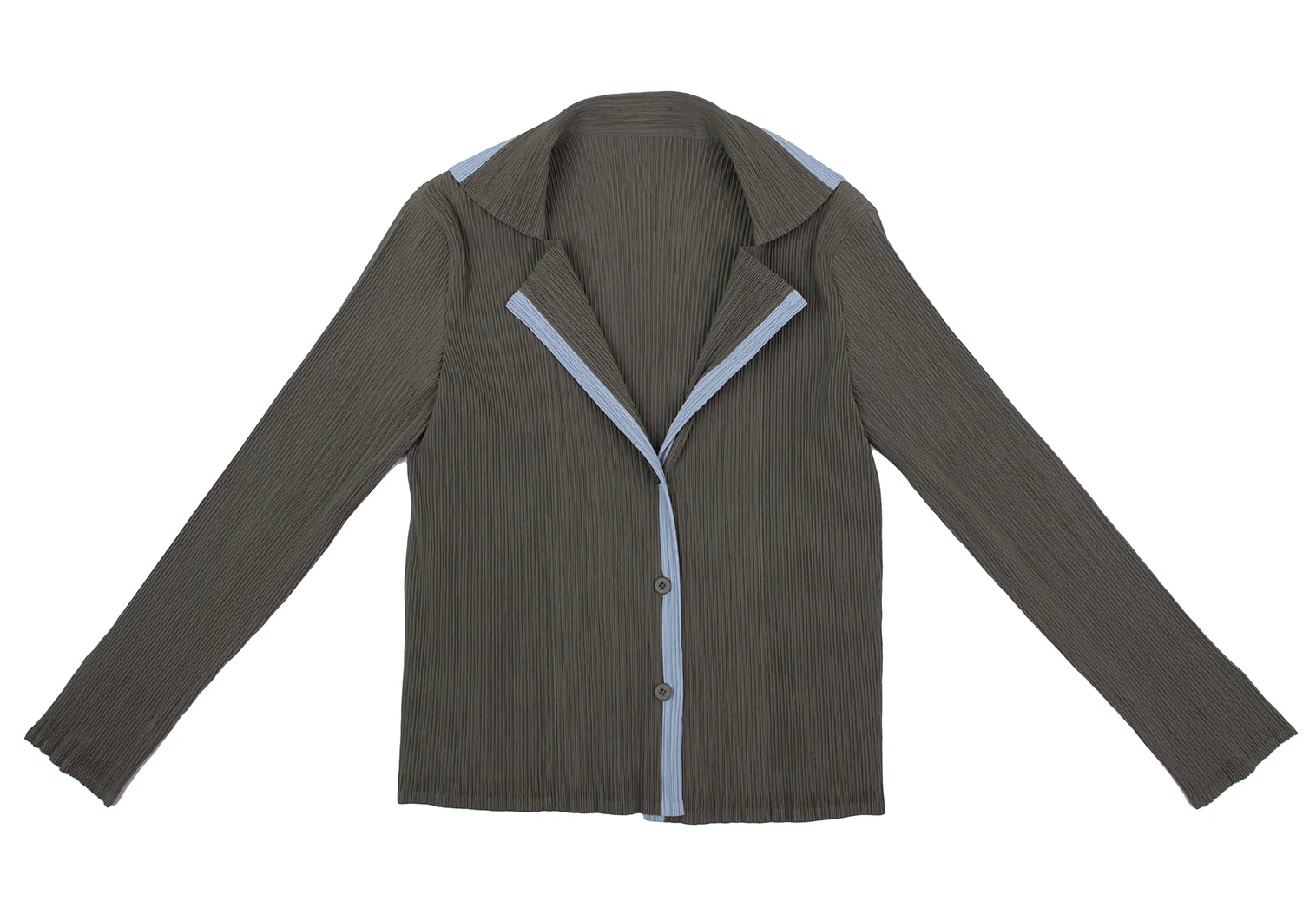 ISSEY MIYAKE WHITE LABEL Crepe Pleated Bicolor Trim Jacket & Pants Charcoal,Sky blue 2 1