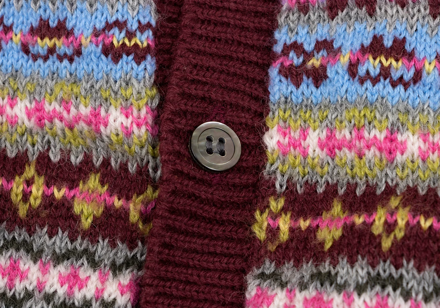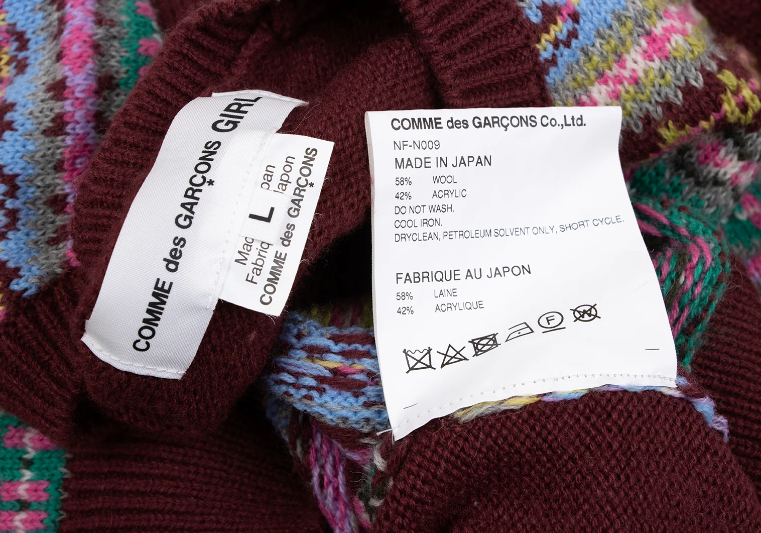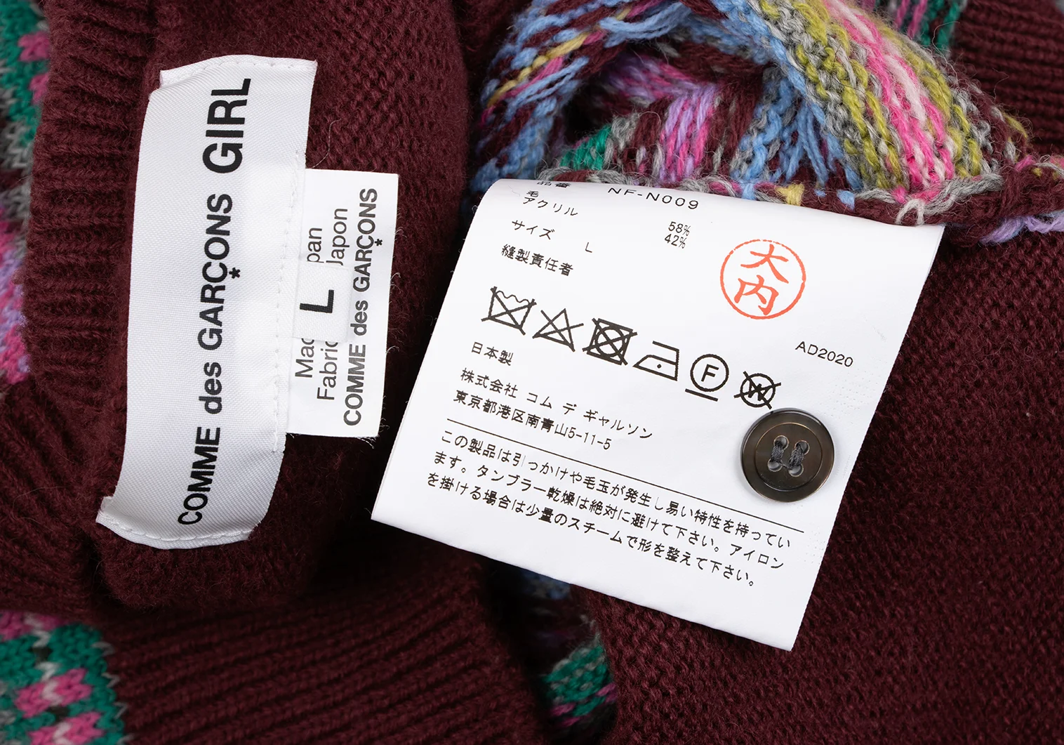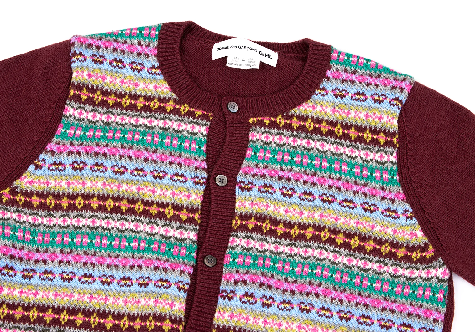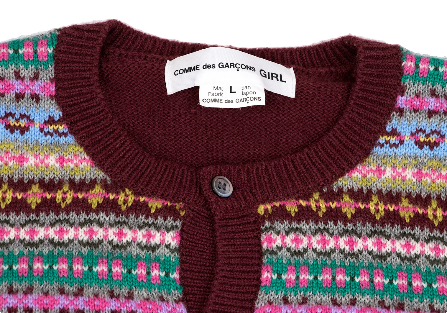 COMME des GARCONS GIRL Wool Acrylic Fair Isle Knit Cardigan Bordeaux,Multi-Color L