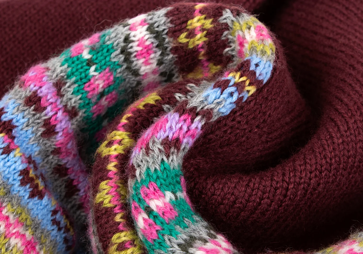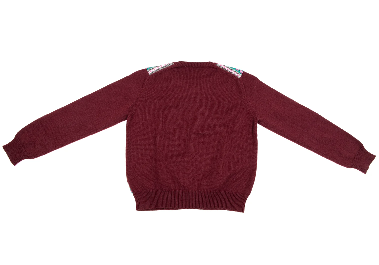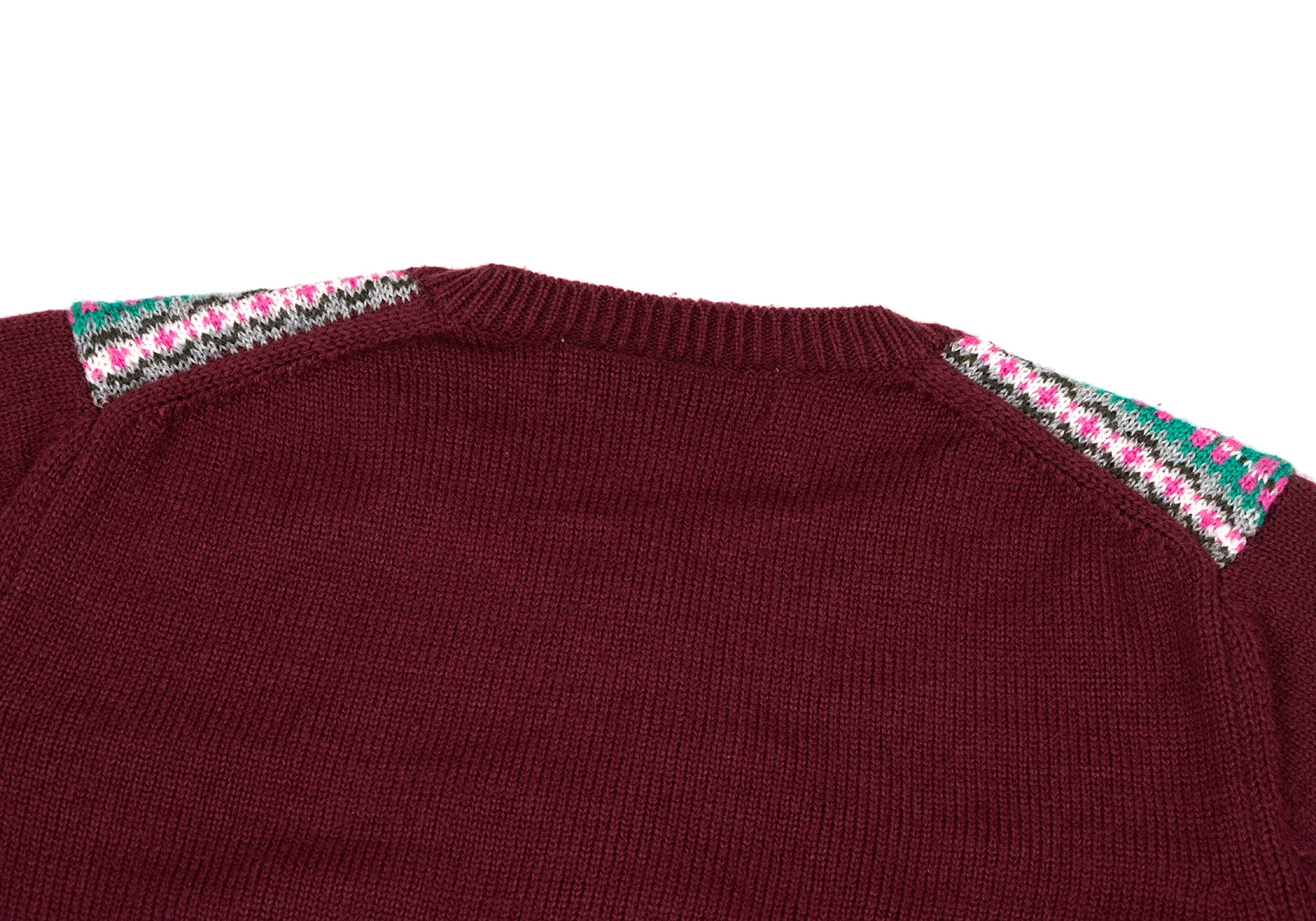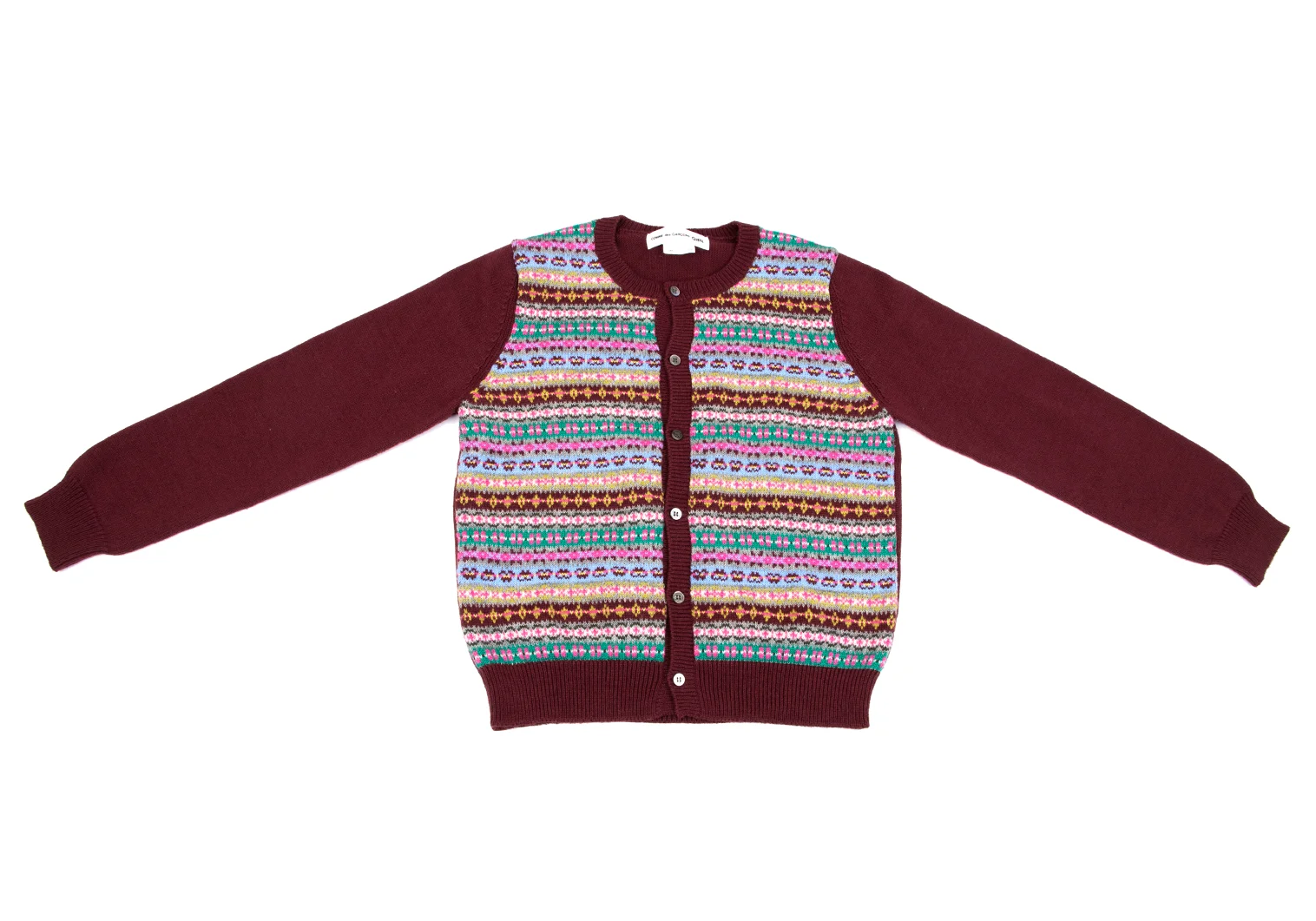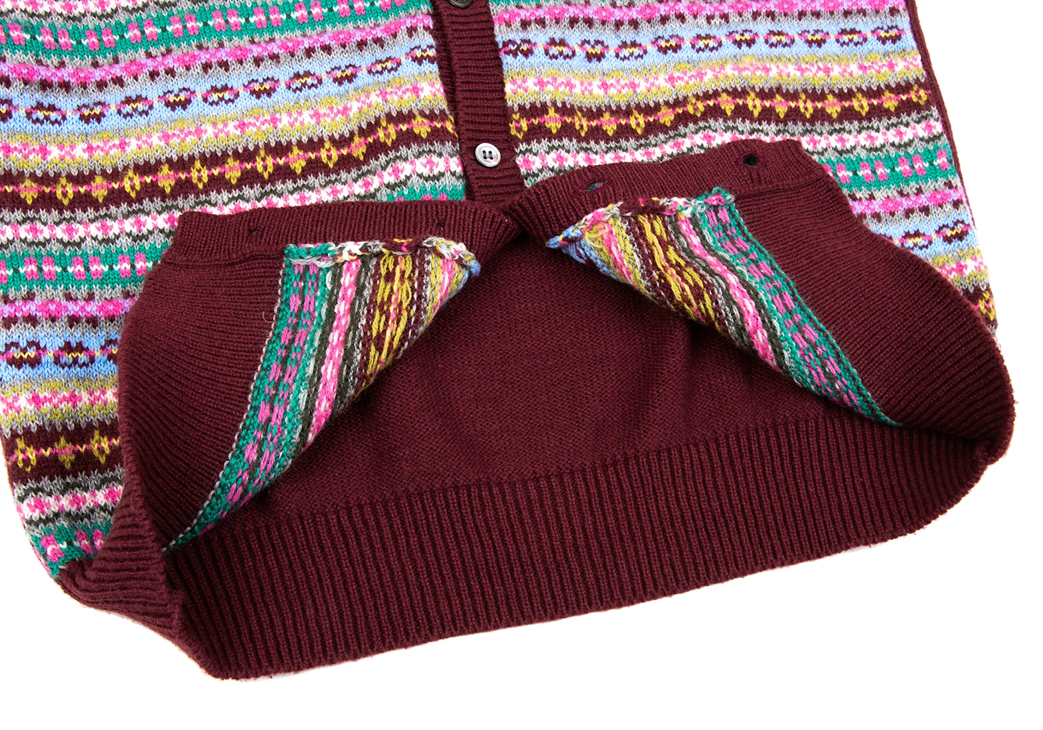 COMME des GARCONS GIRL Wool Acrylic Fair Isle Knit Cardigan Bordeaux,Multi-Color L