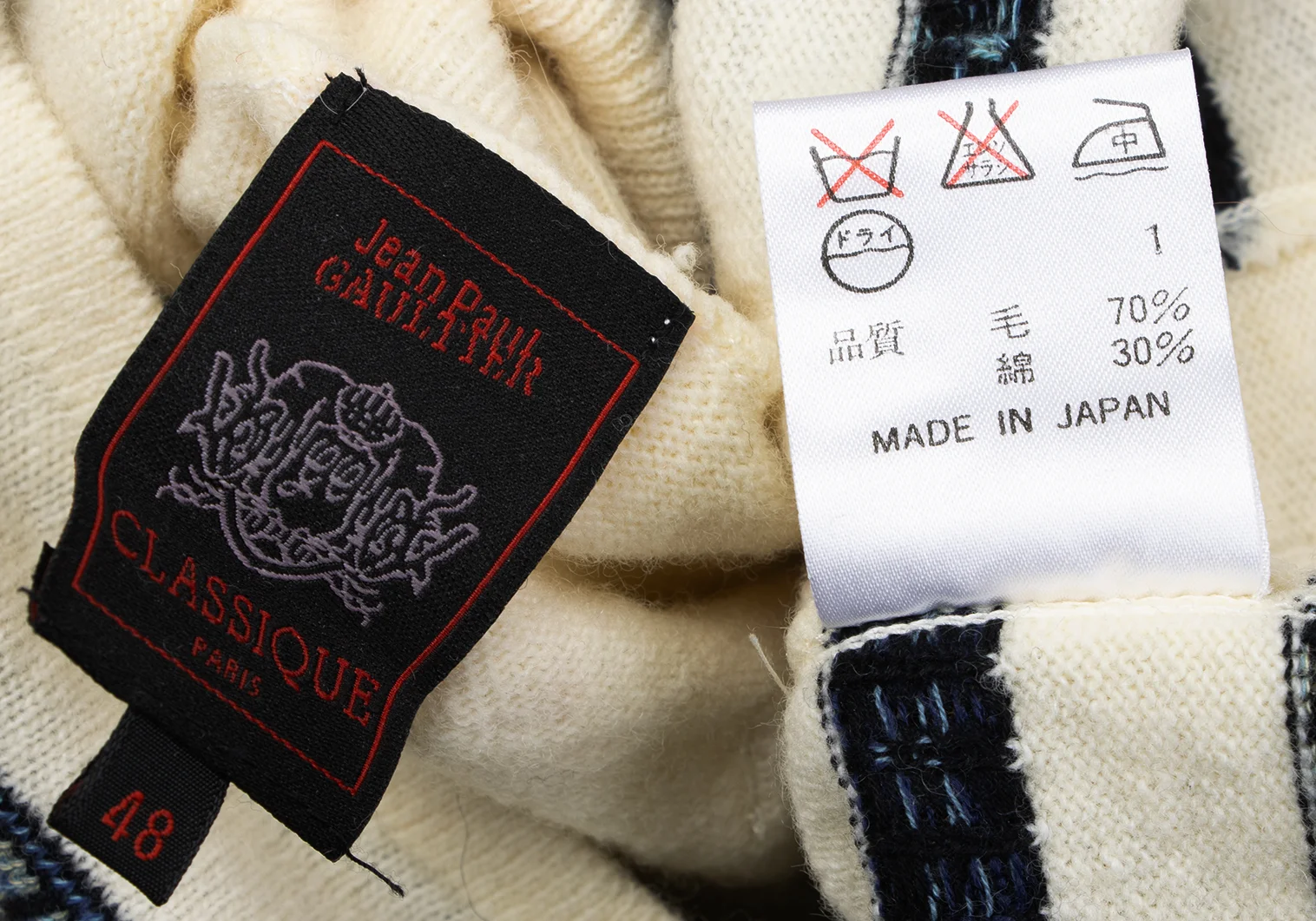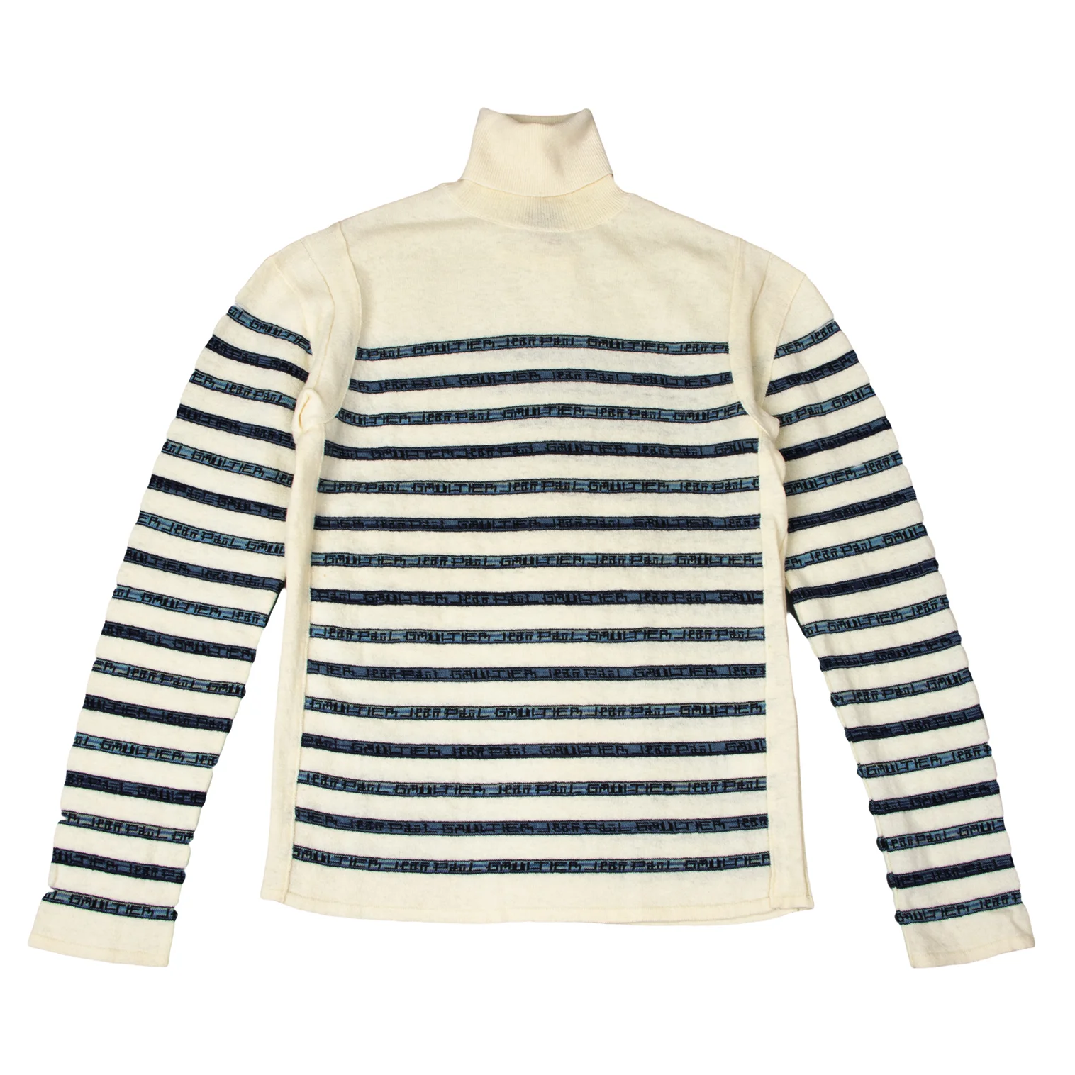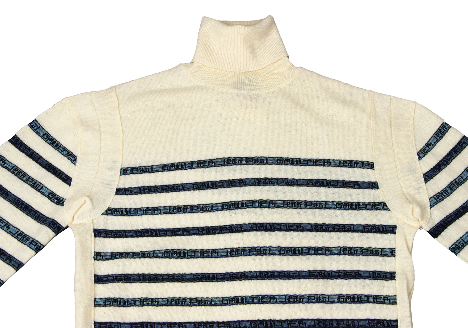 Jean Paul GAULTIER CLASSIQUE Wool Cotton Logo Stripe Turtleneck Knit Cream,Navy 48