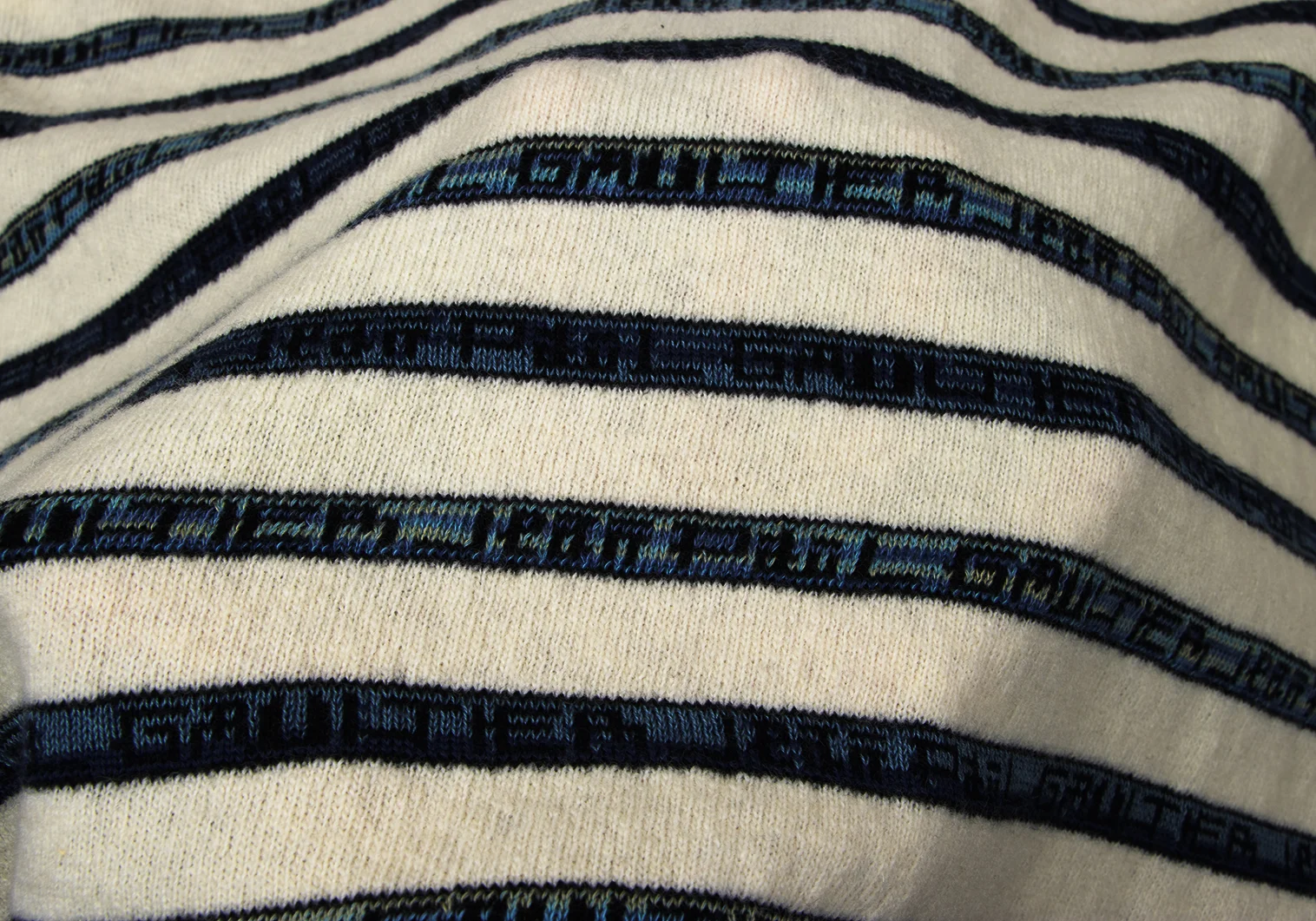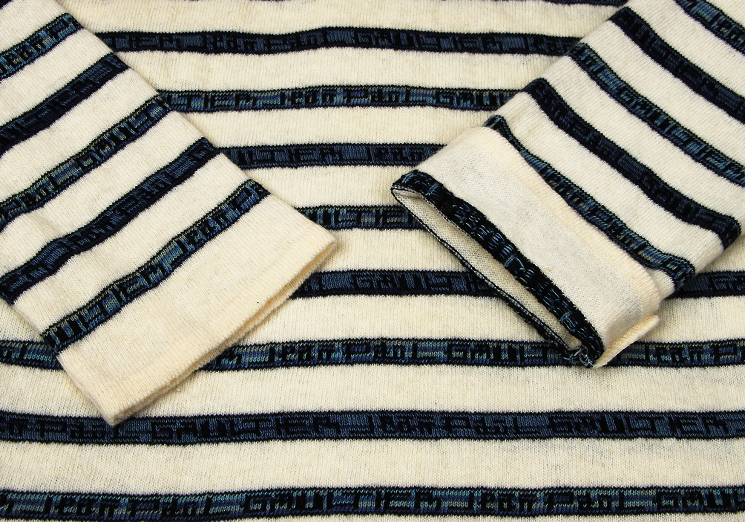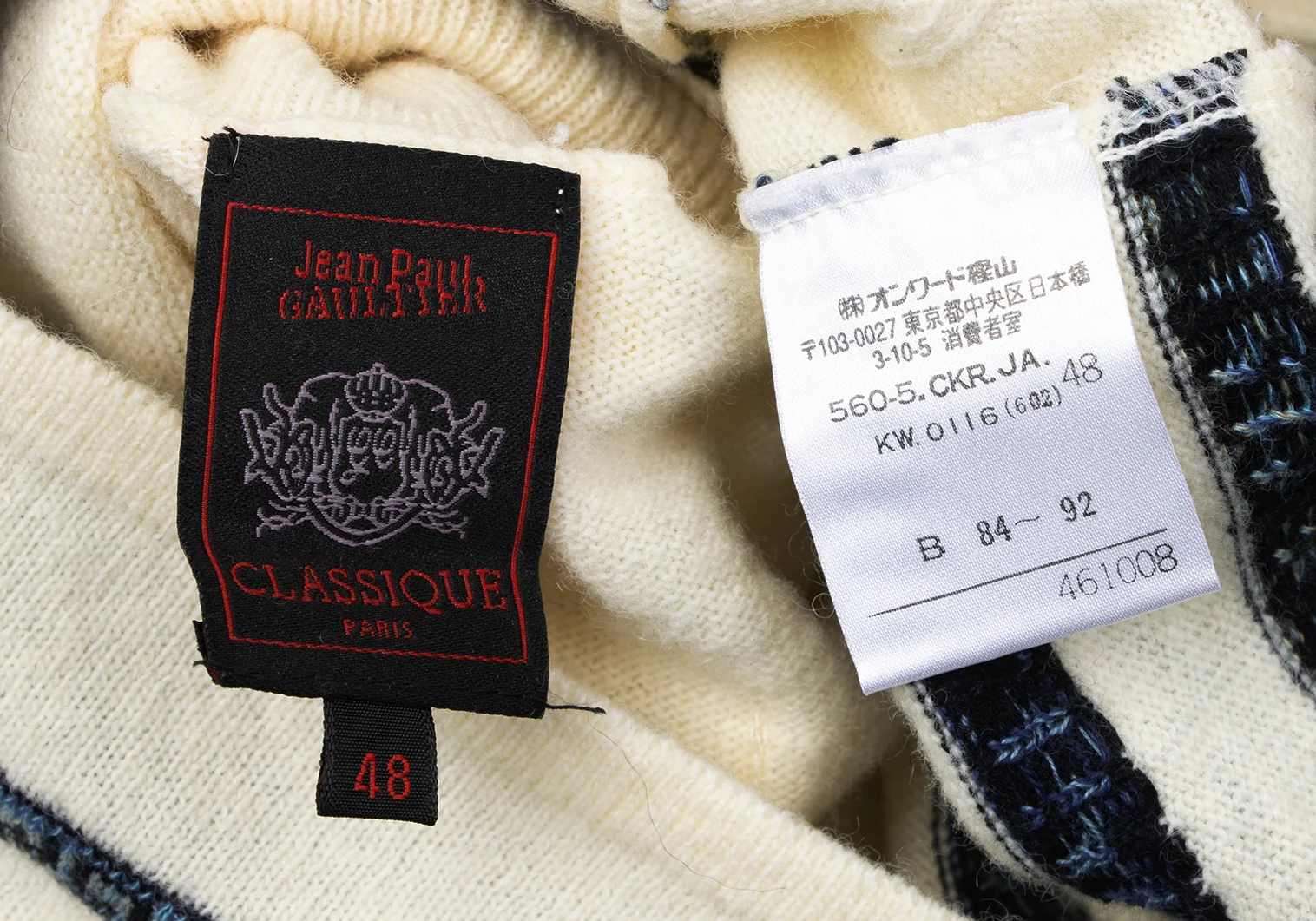 Jean Paul GAULTIER CLASSIQUE Wool Cotton Logo Stripe Turtleneck Knit Cream,Navy 48