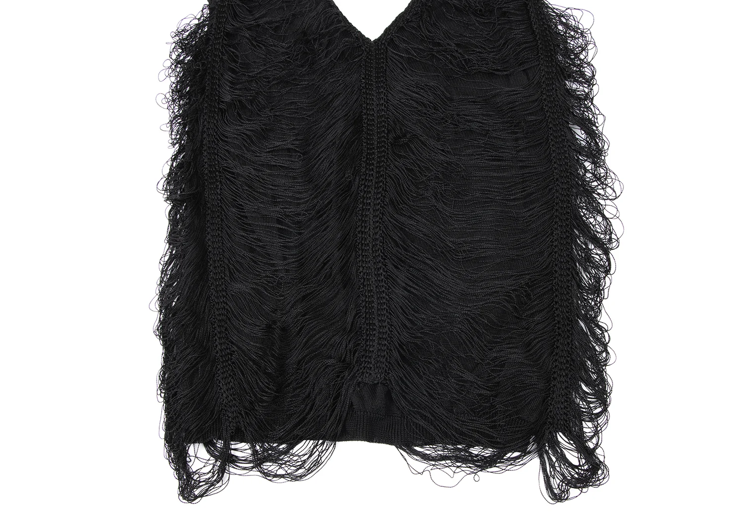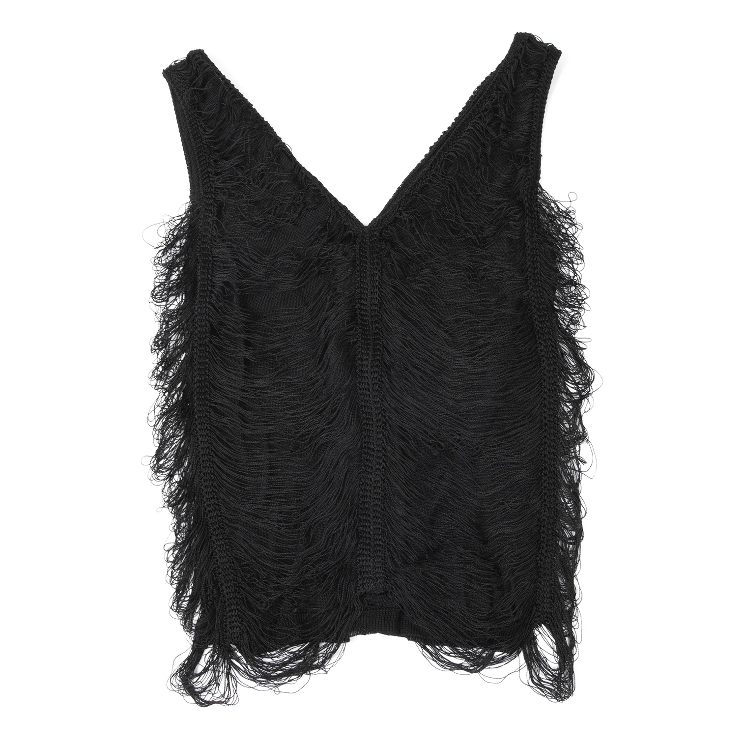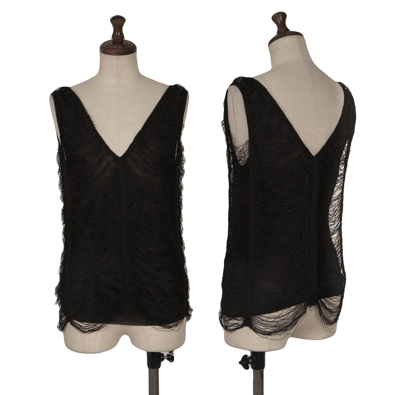 Jean Paul GAULTIER MAILLE FEMME Rayon Fringe Design V-neck Sleeveless Top Black S