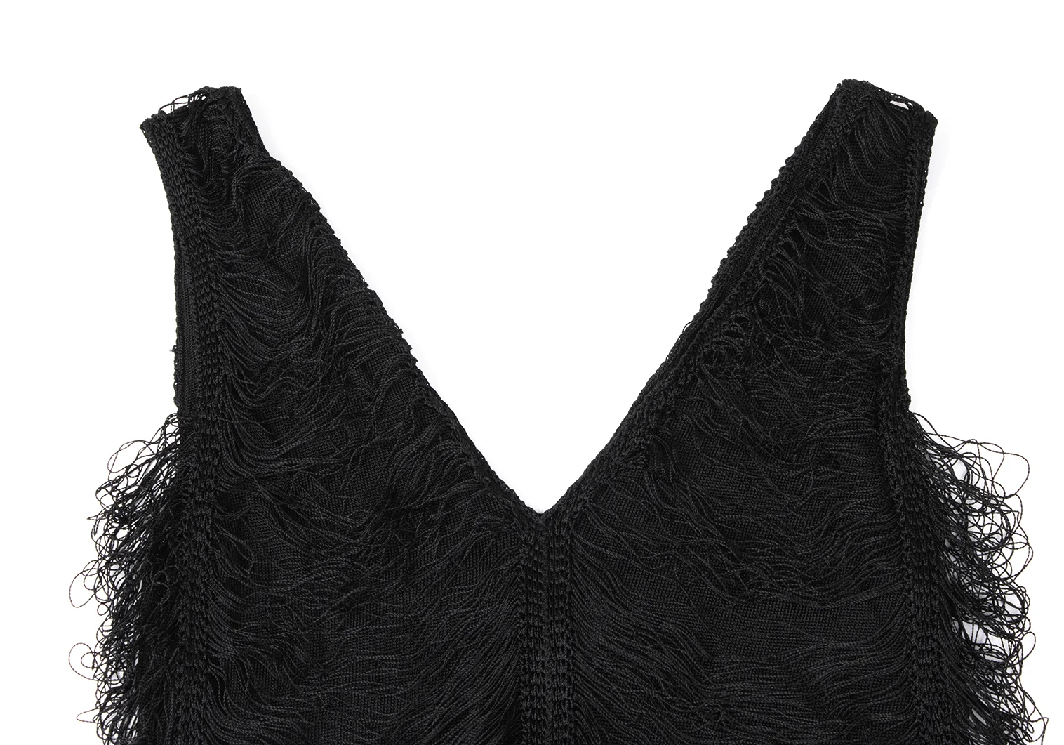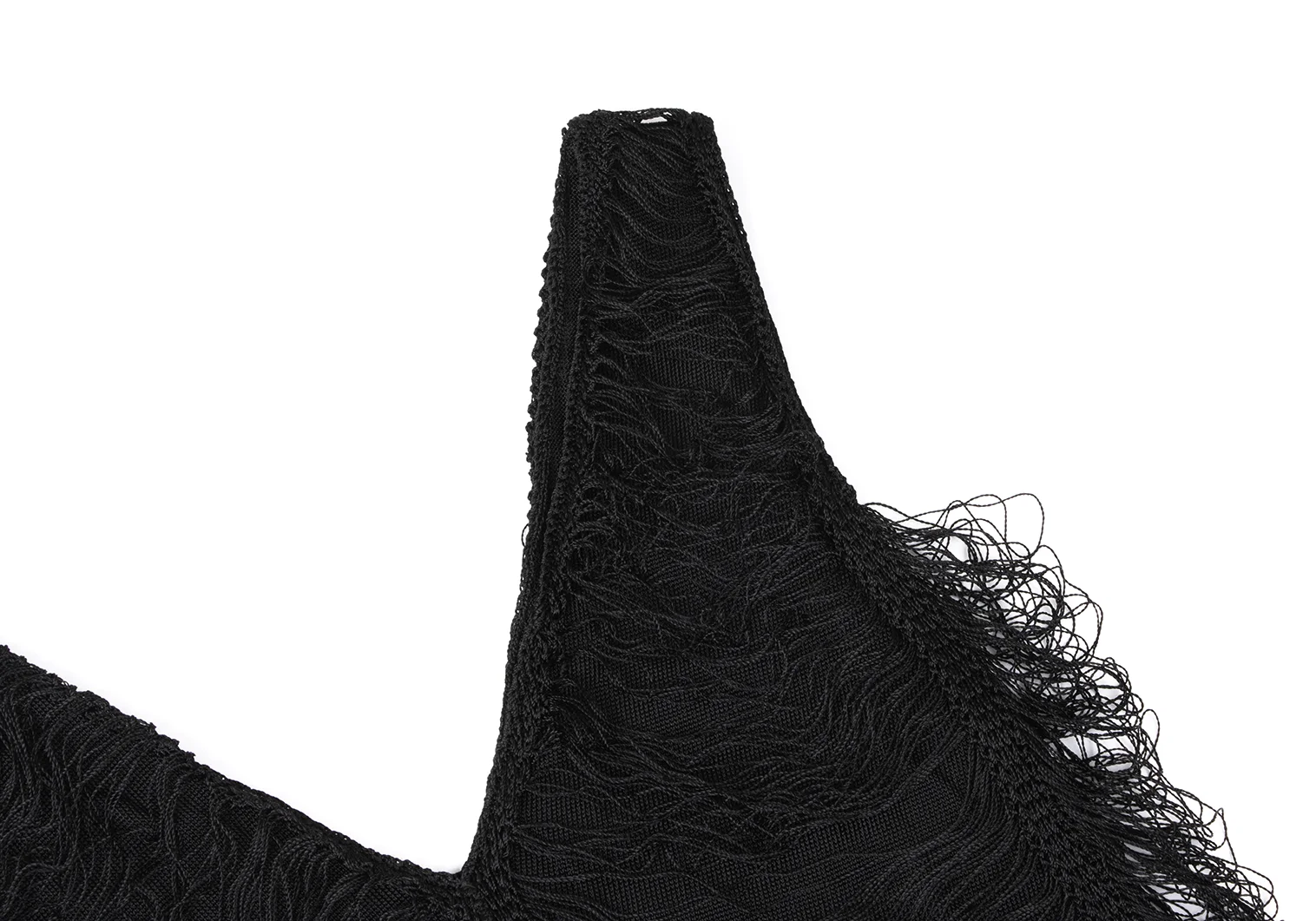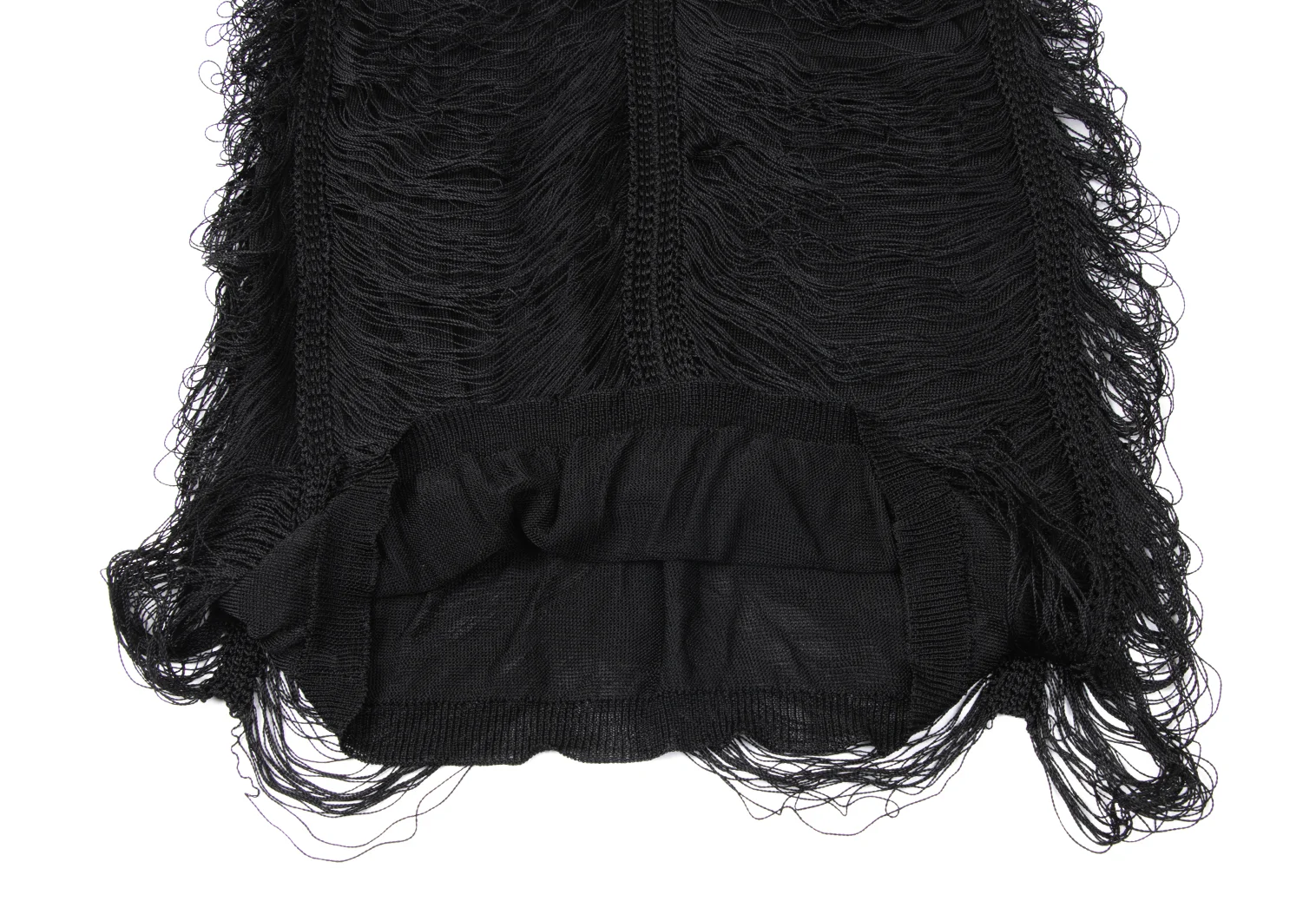 Jean Paul GAULTIER MAILLE FEMME Rayon Fringe Design V-neck Sleeveless Top Black S