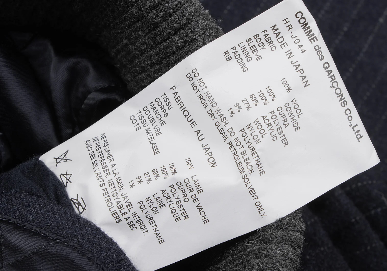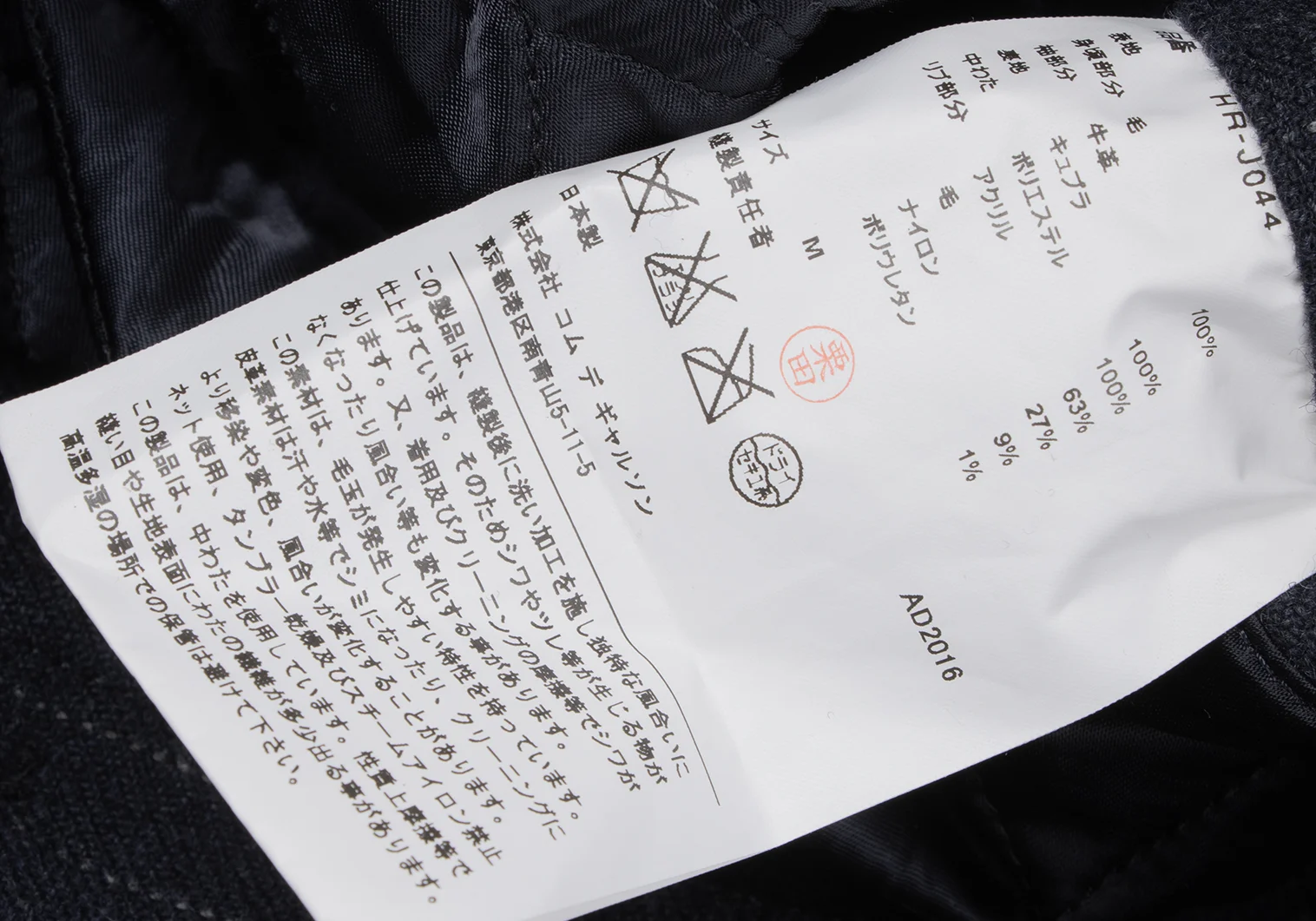 100% Wool Sleeve Cowhide Lining Cupra Padding 100% Polyester |