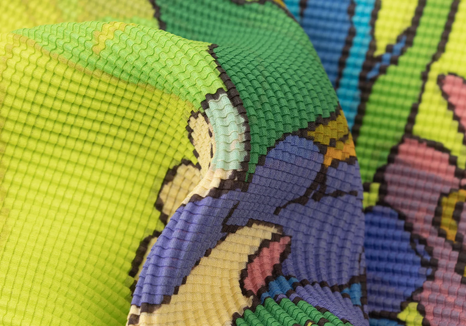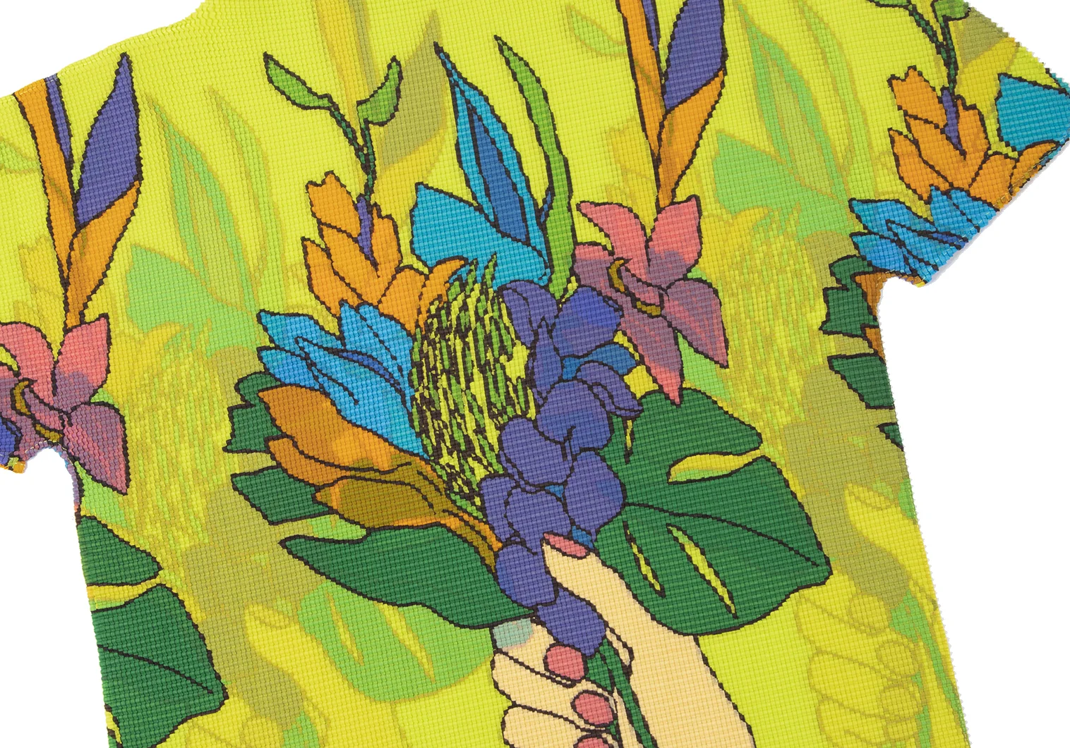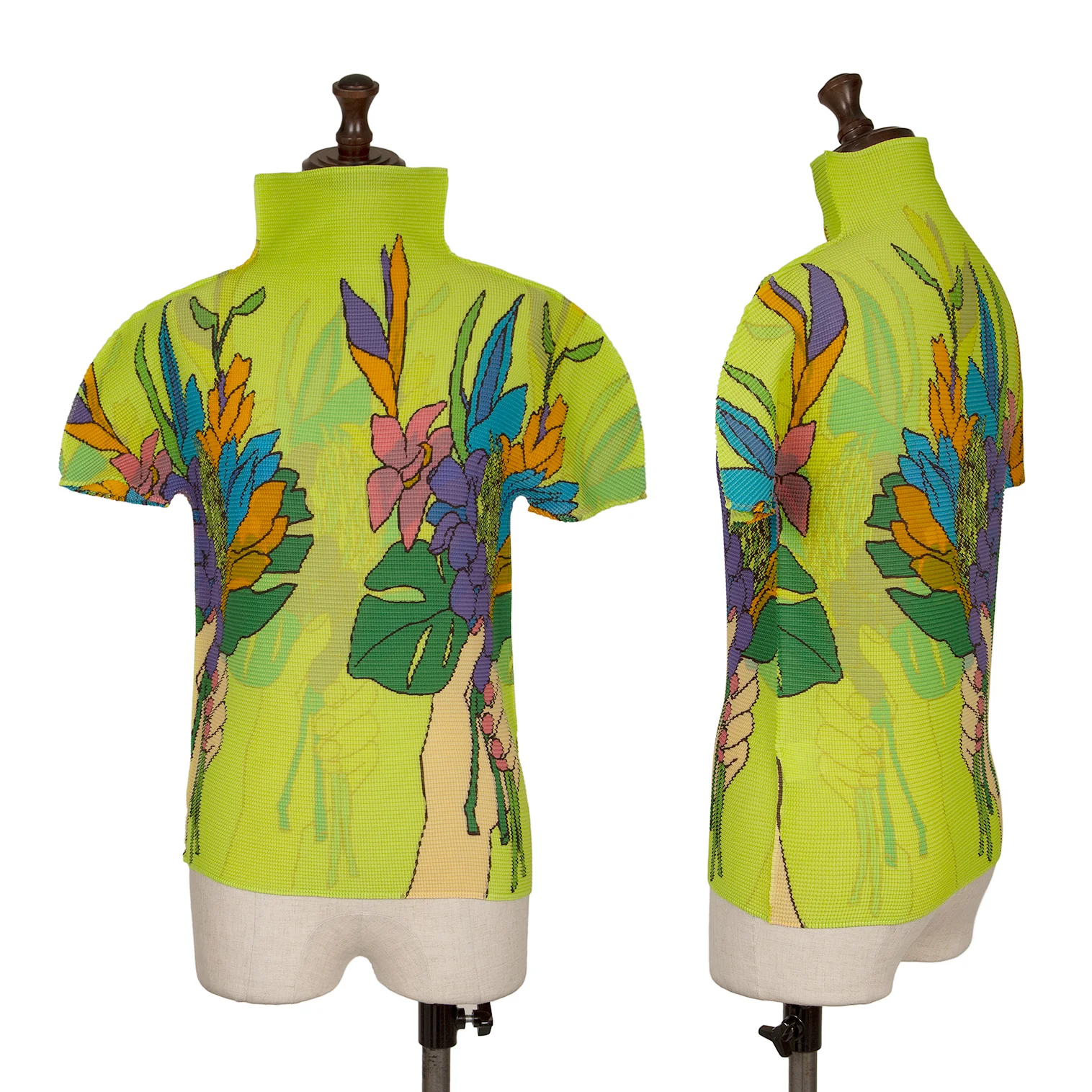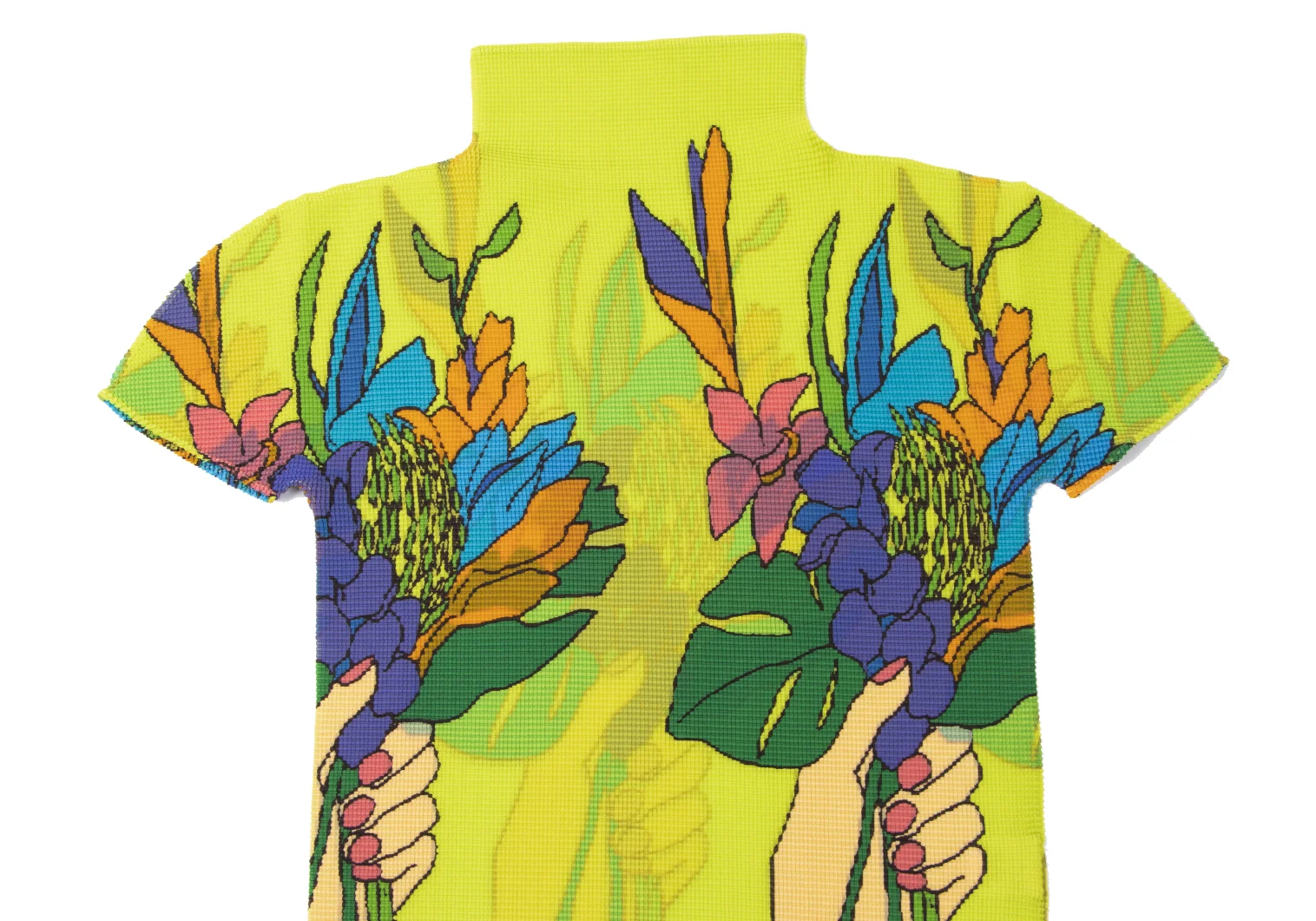 ISSEY MIYAKE me Colorful Floral Stretch Pleated T Shirt Light Green,Multi-Color Free