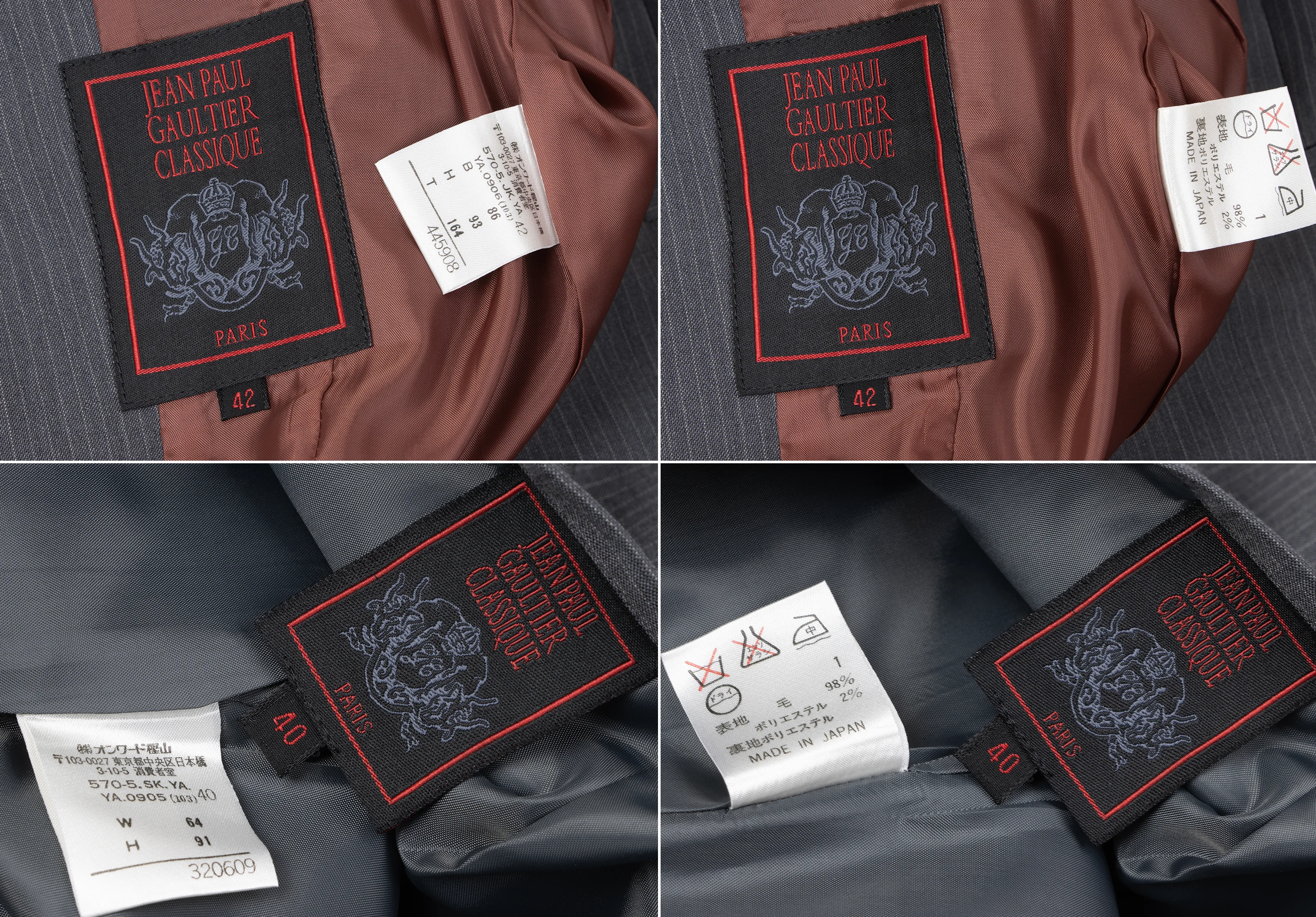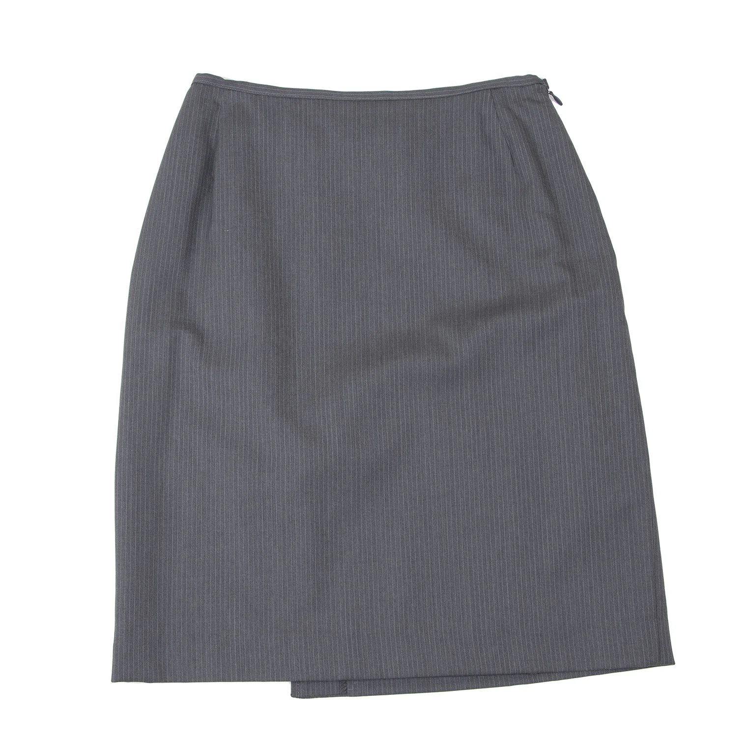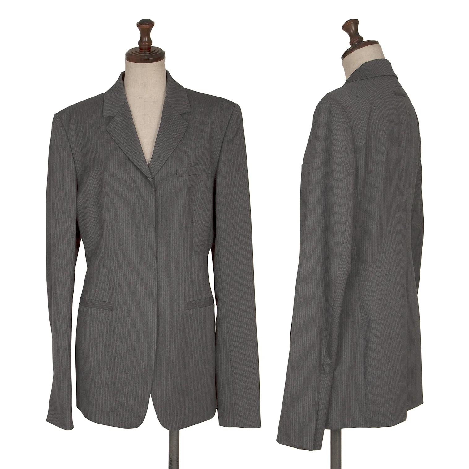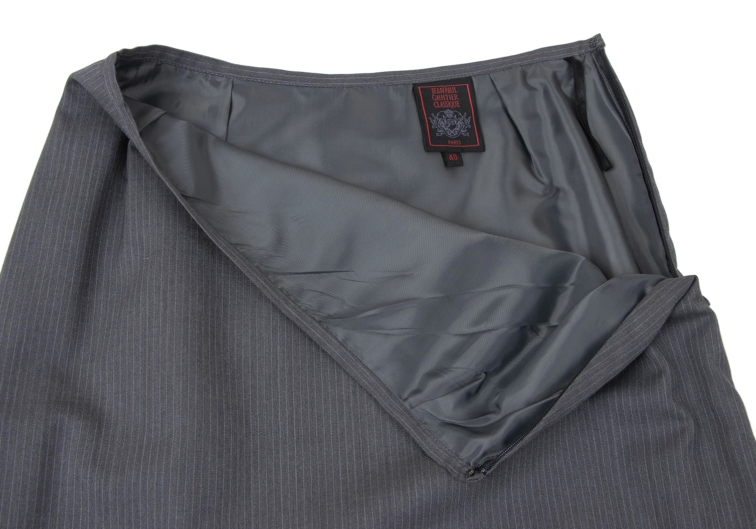 Jean Paul GAULTIER CLASSIQUE Wool Pinstripe Snap Button Jacket & Skirt Grey 42 40