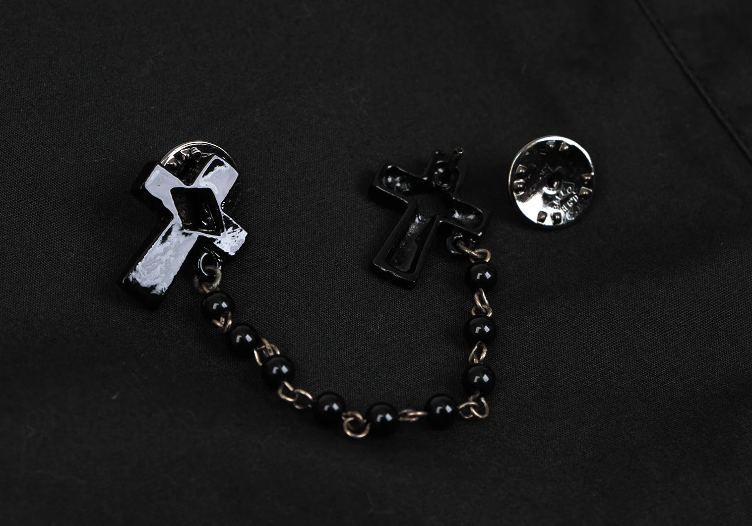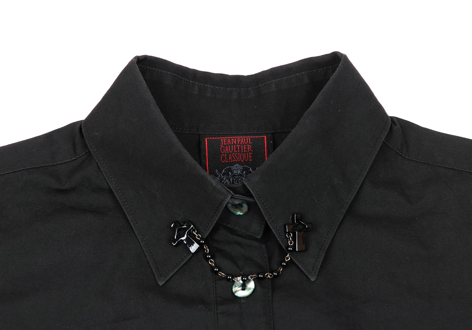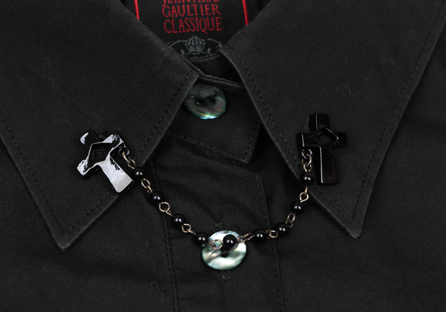 Jean Paul GAULTIER CLASSIQUE Cross Chain Embellished Collar Long Sleeve Shirt Black 40