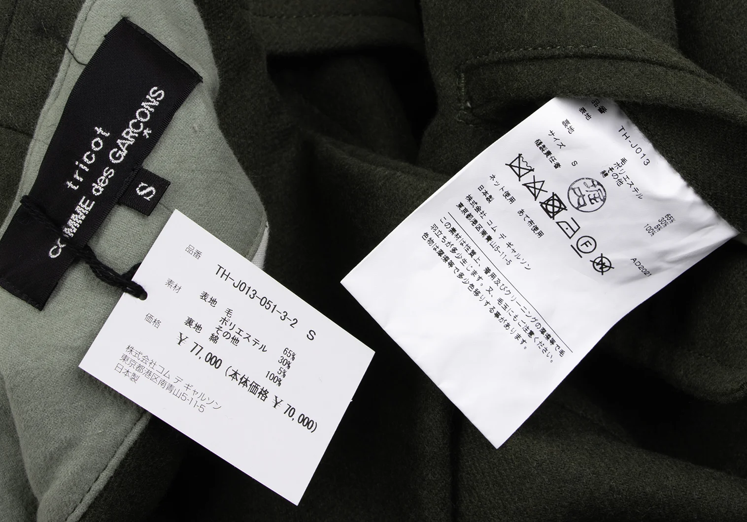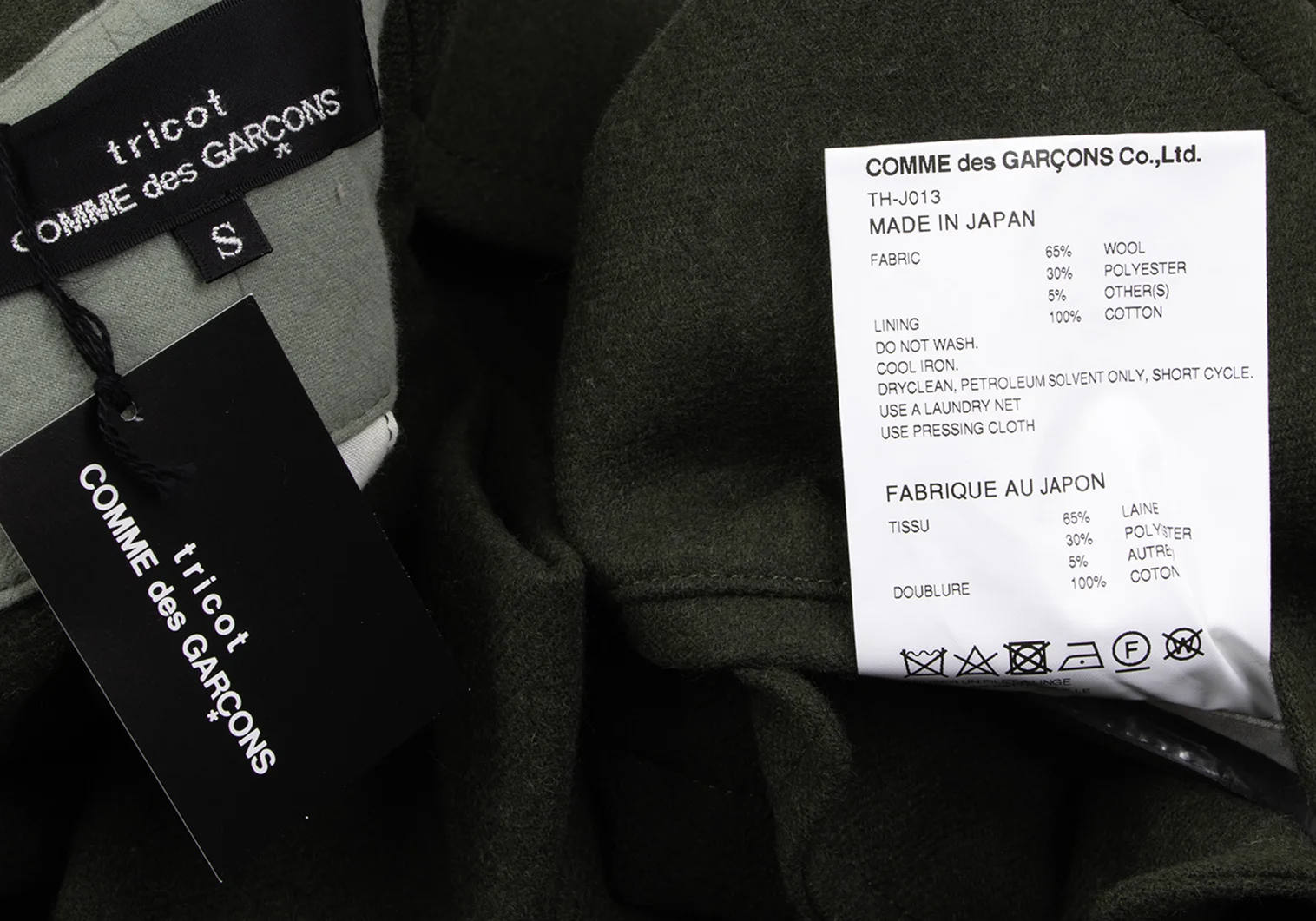 65% Wool 30% Polyester 5% Other Lining 100% Cotton |