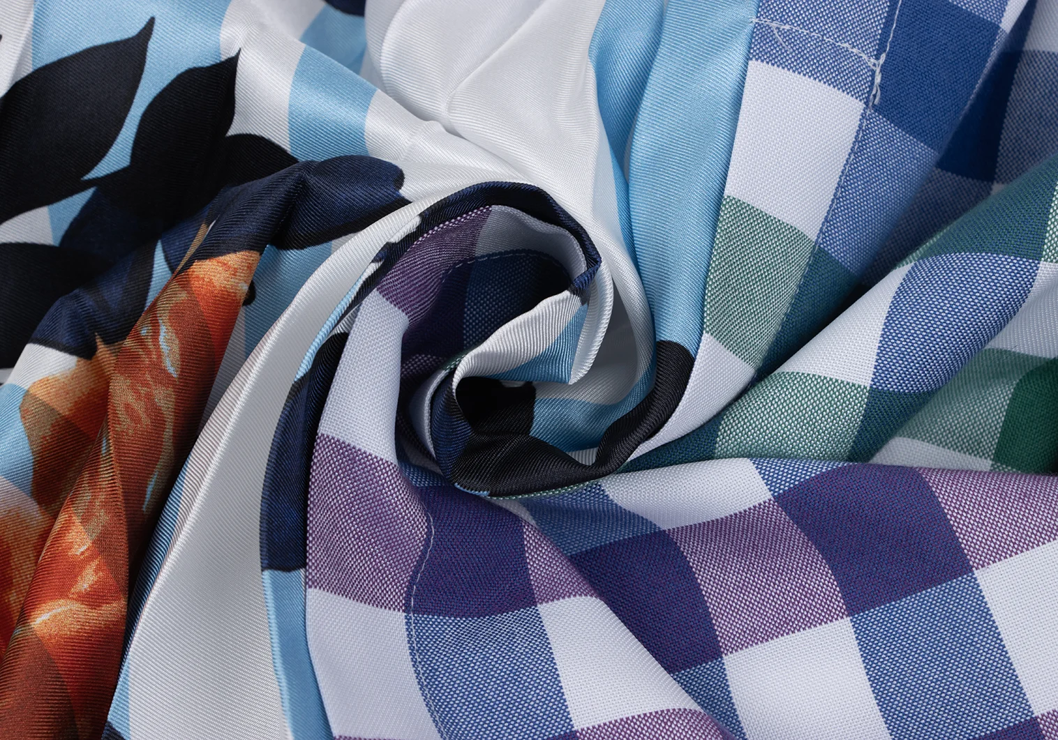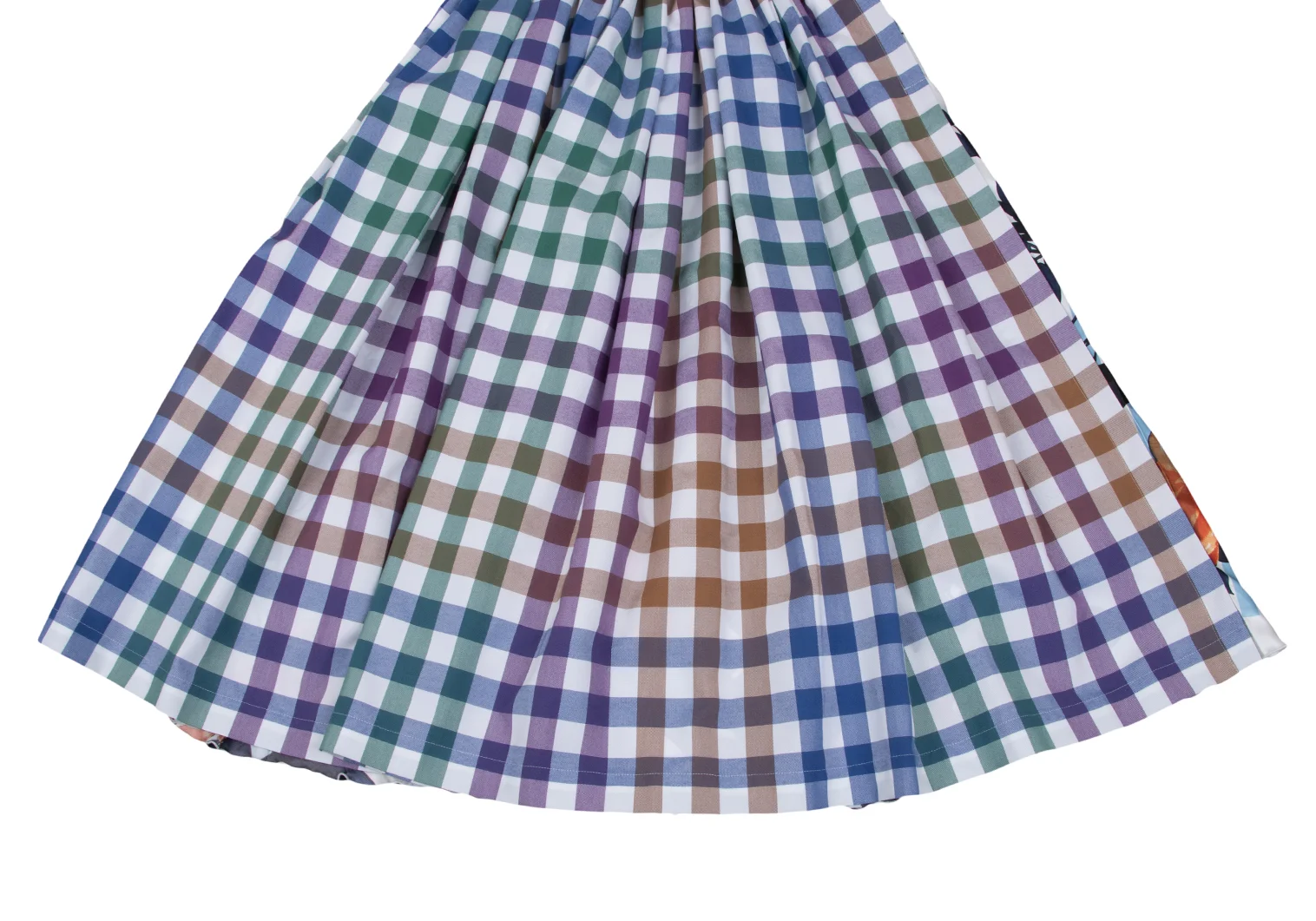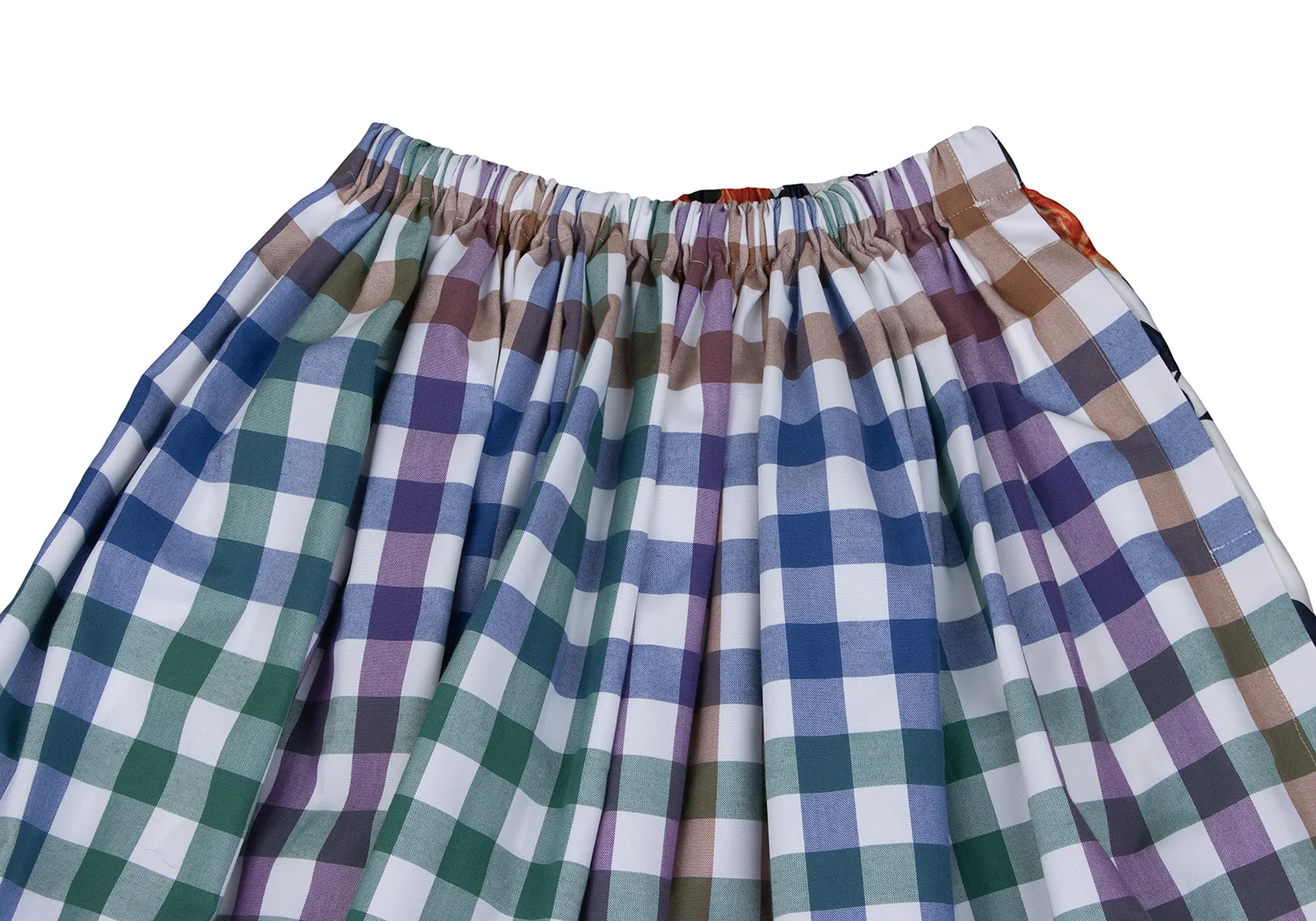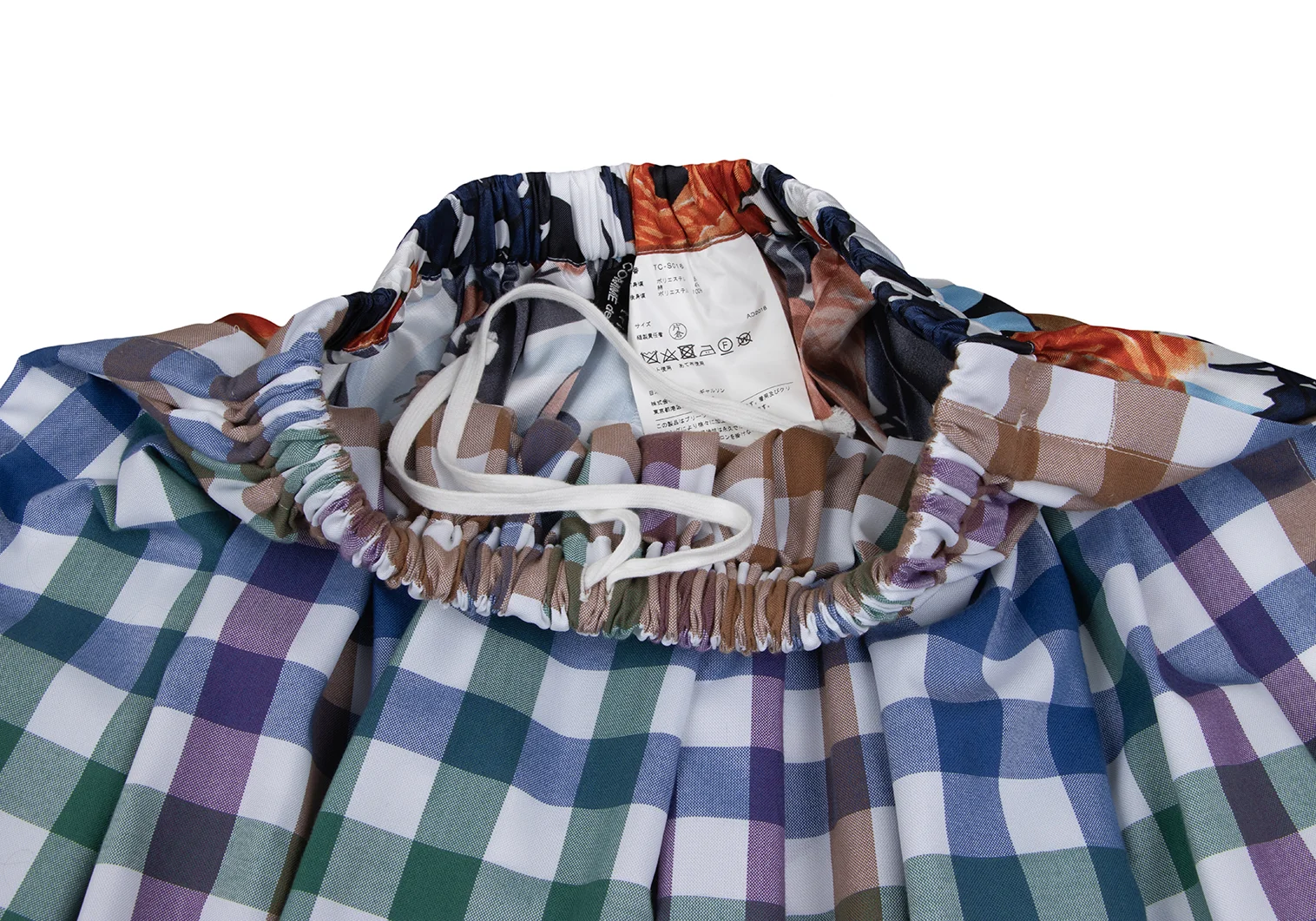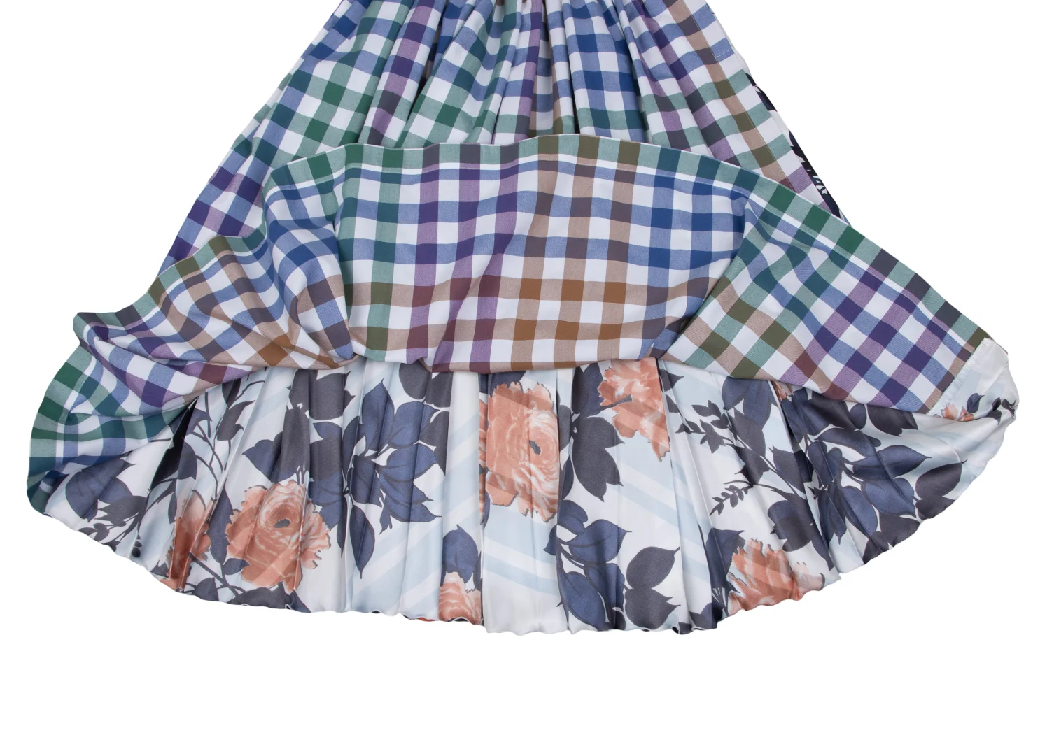 tricot COMME des GARCONS Pleated Floral Print Switching Check Skirt Multi-Color S-M
