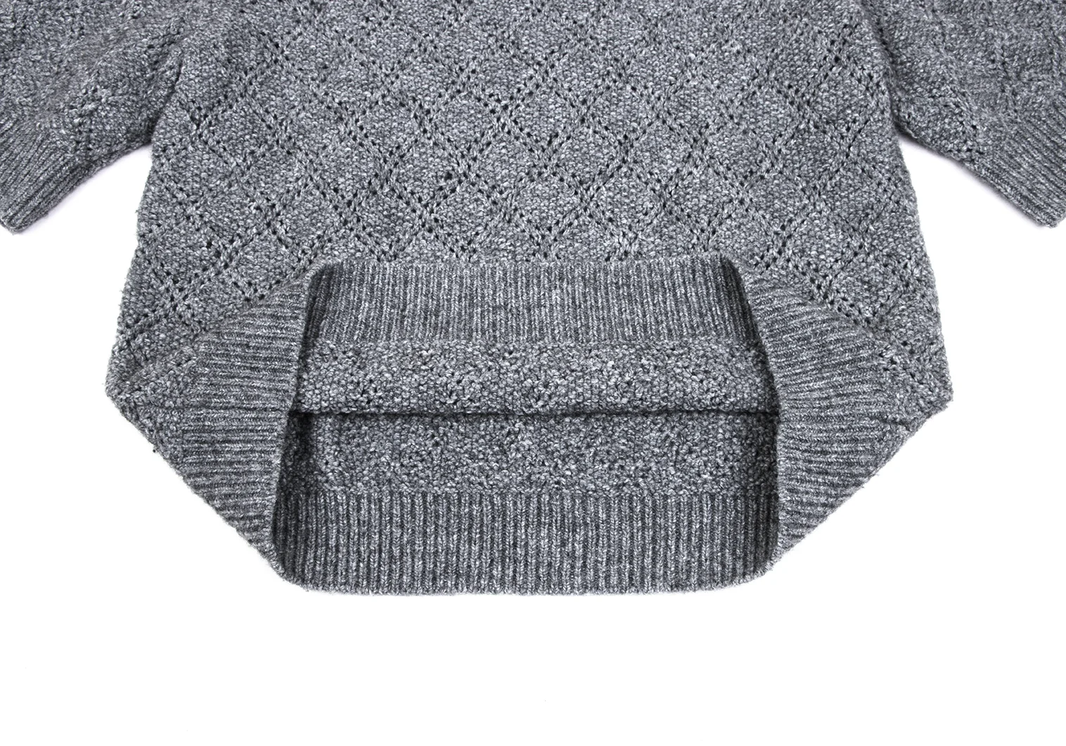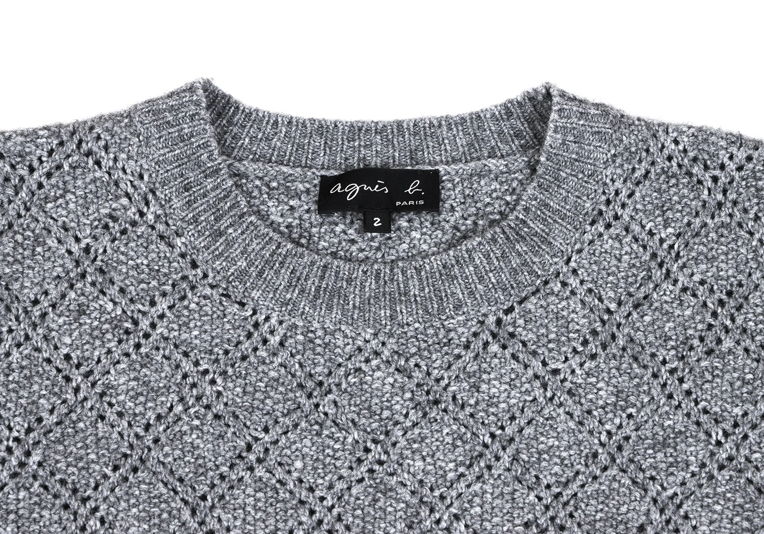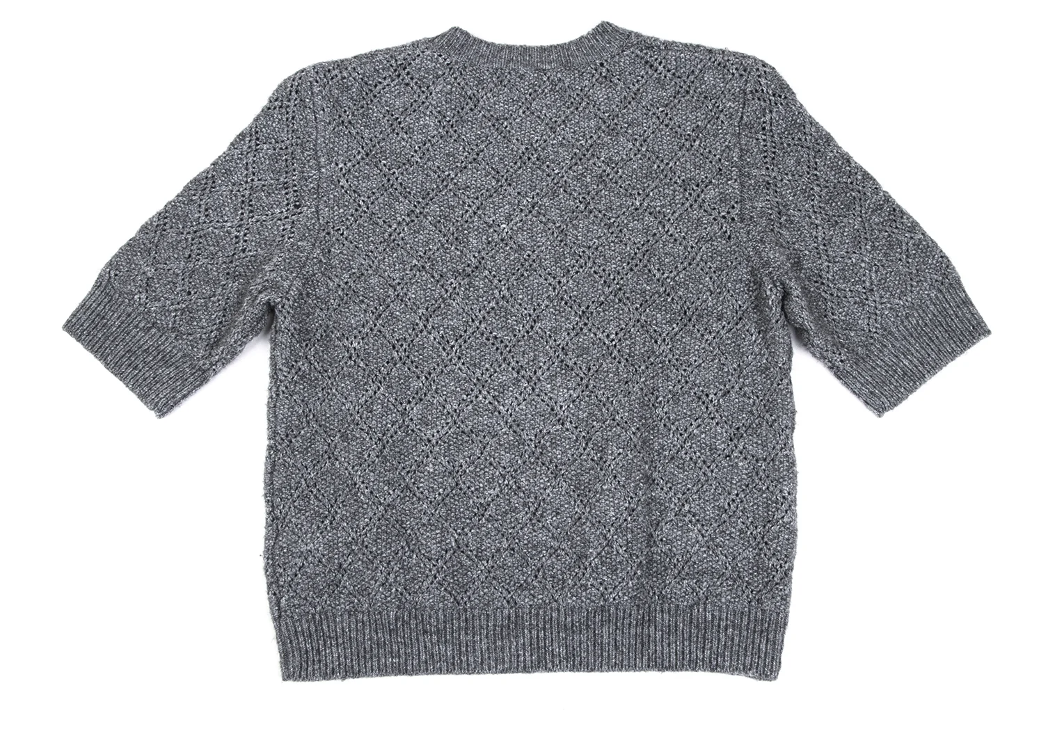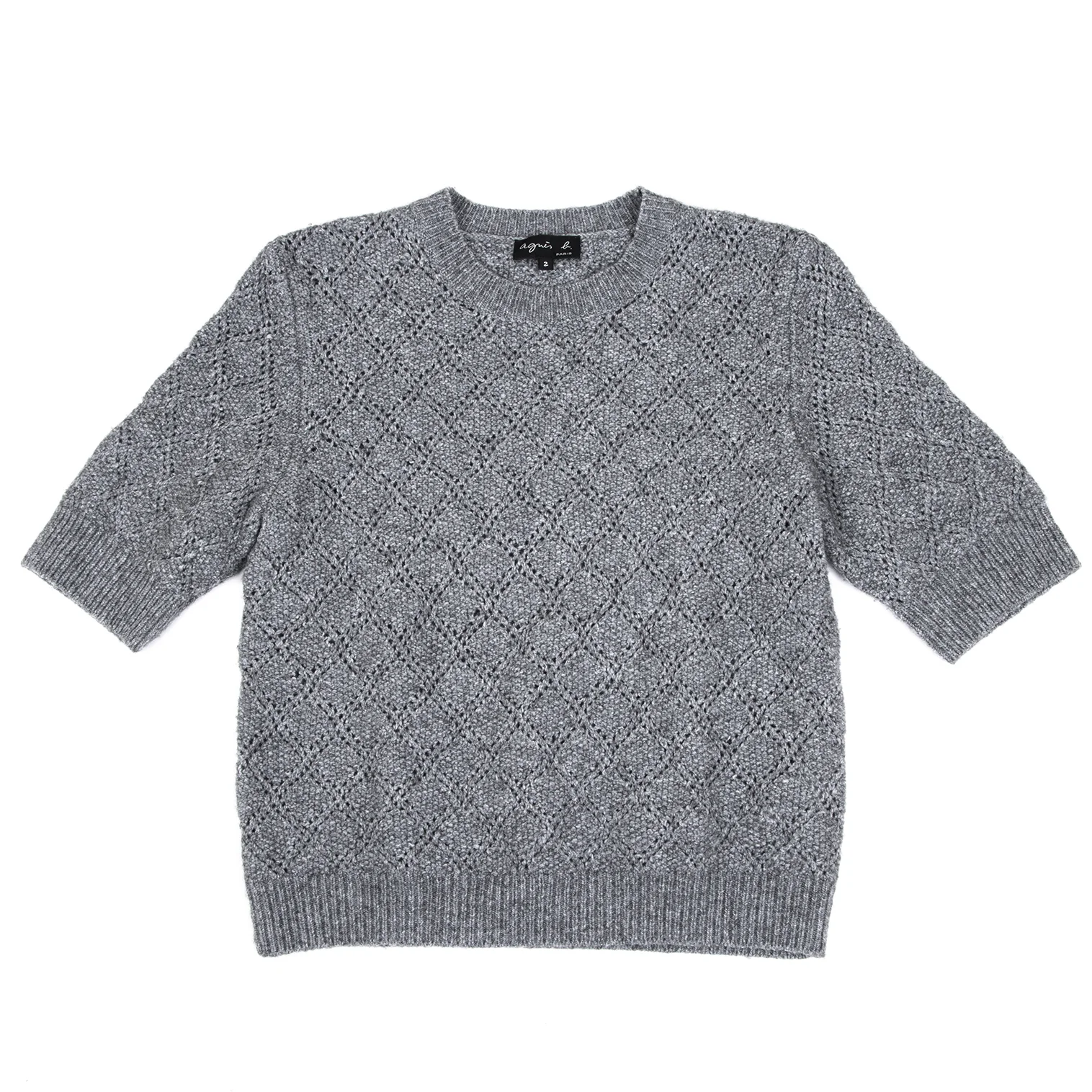 agnes b. Colette Wool Blend Diamond Openwork Short-sleeved Knit Grey 2
