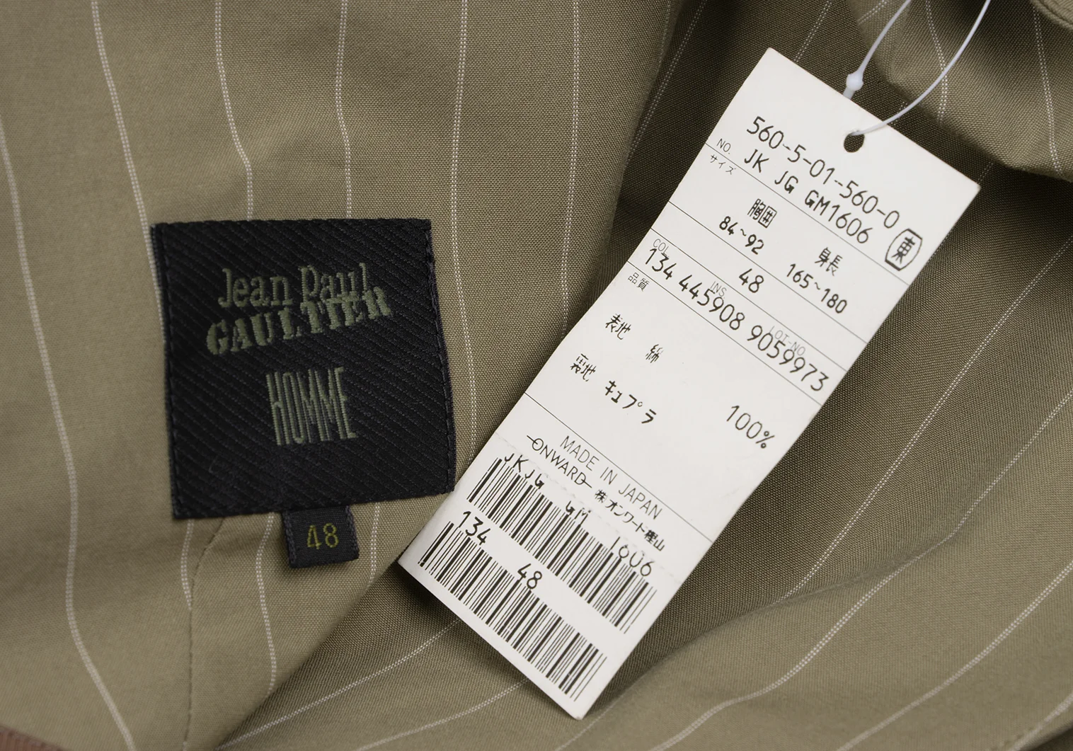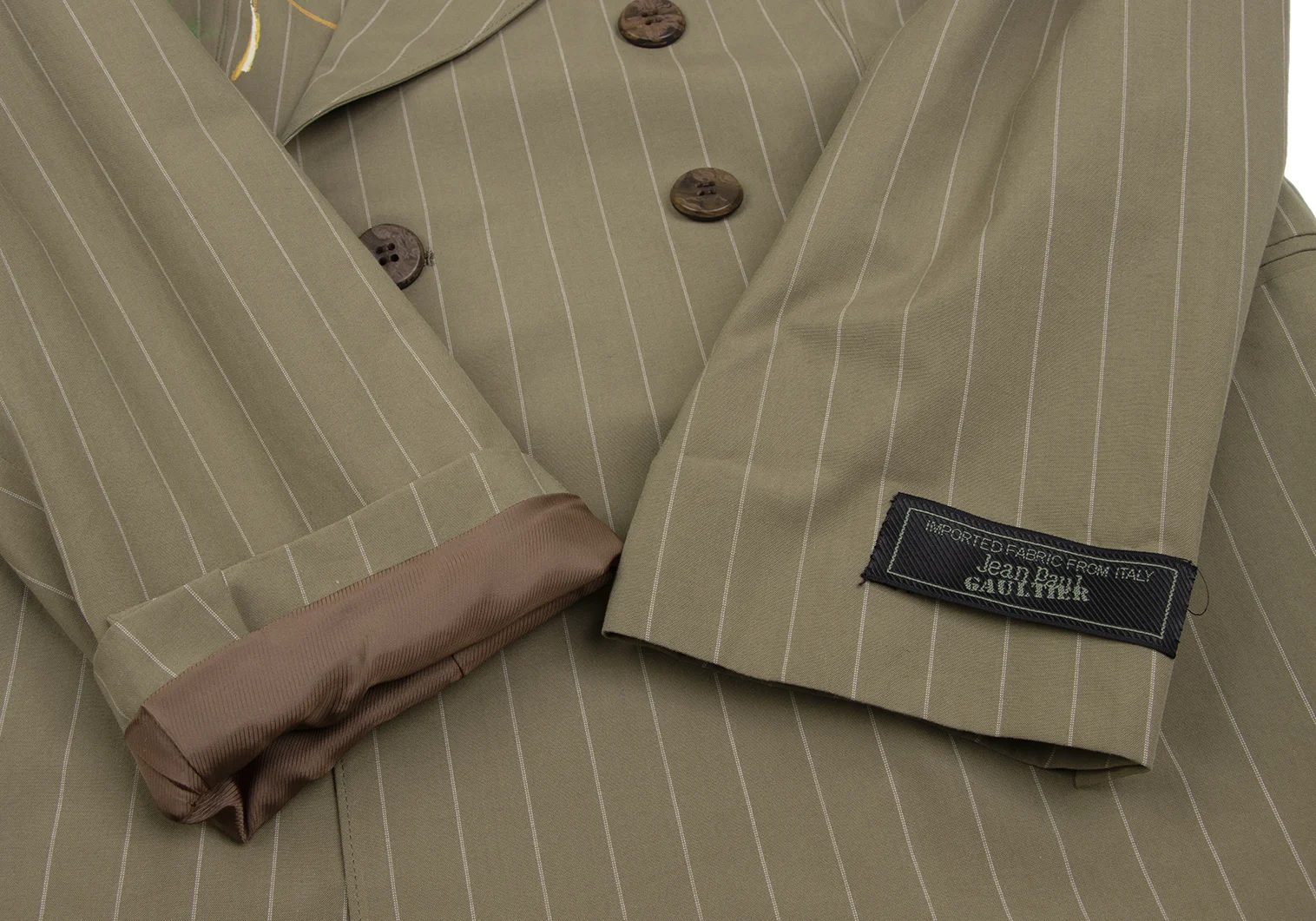 Jean Paul GAULTIER HOMME Floral Printed Cotton Stripe Double Breasted Jacket Beige 48