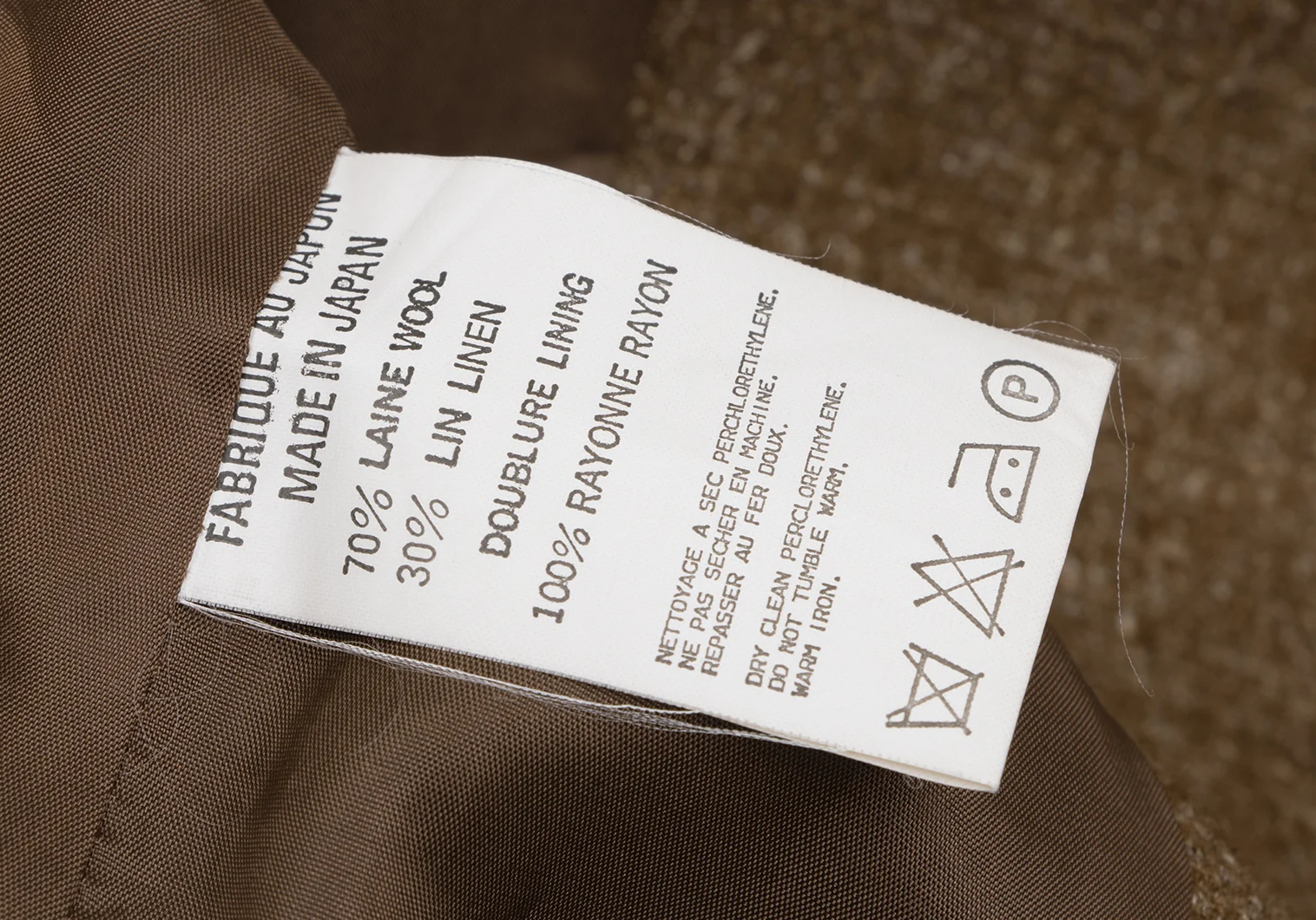 70% Wool 30% Linen Lining 100% Cupra |